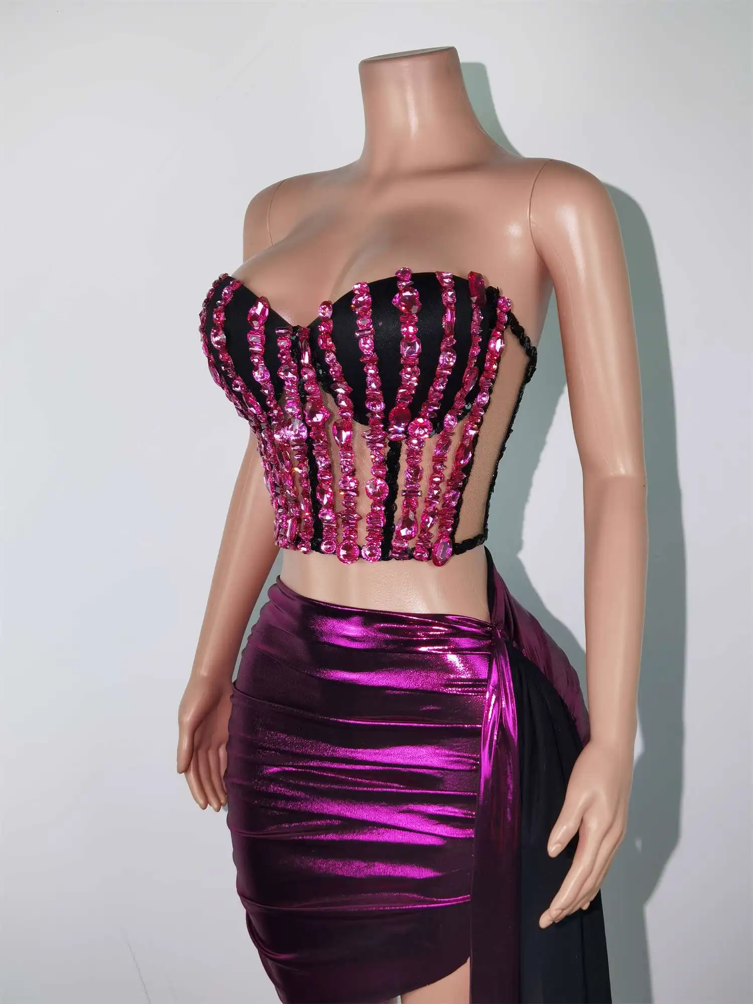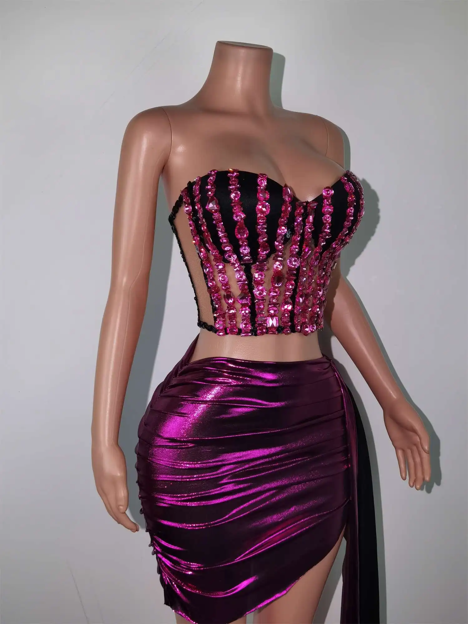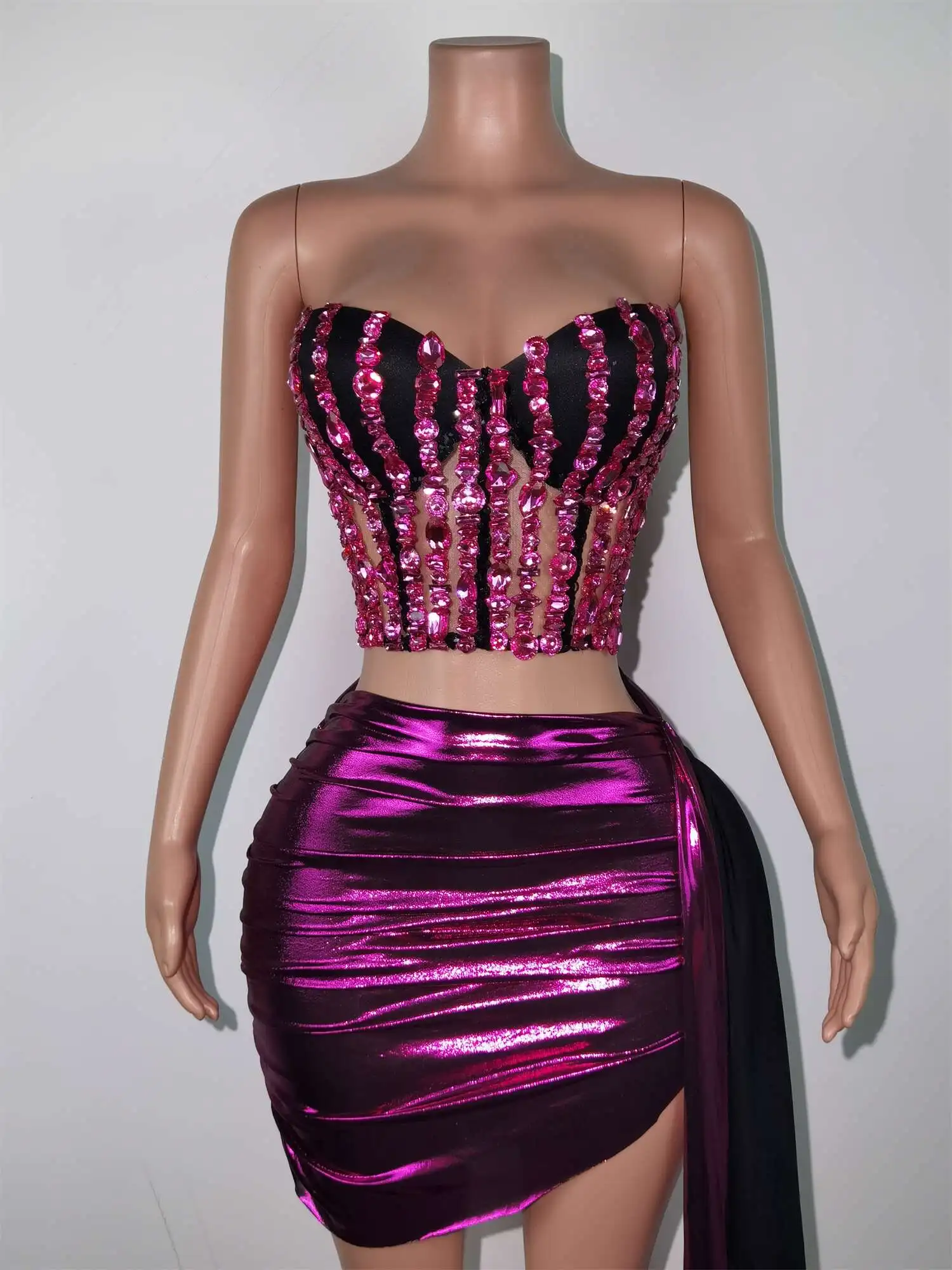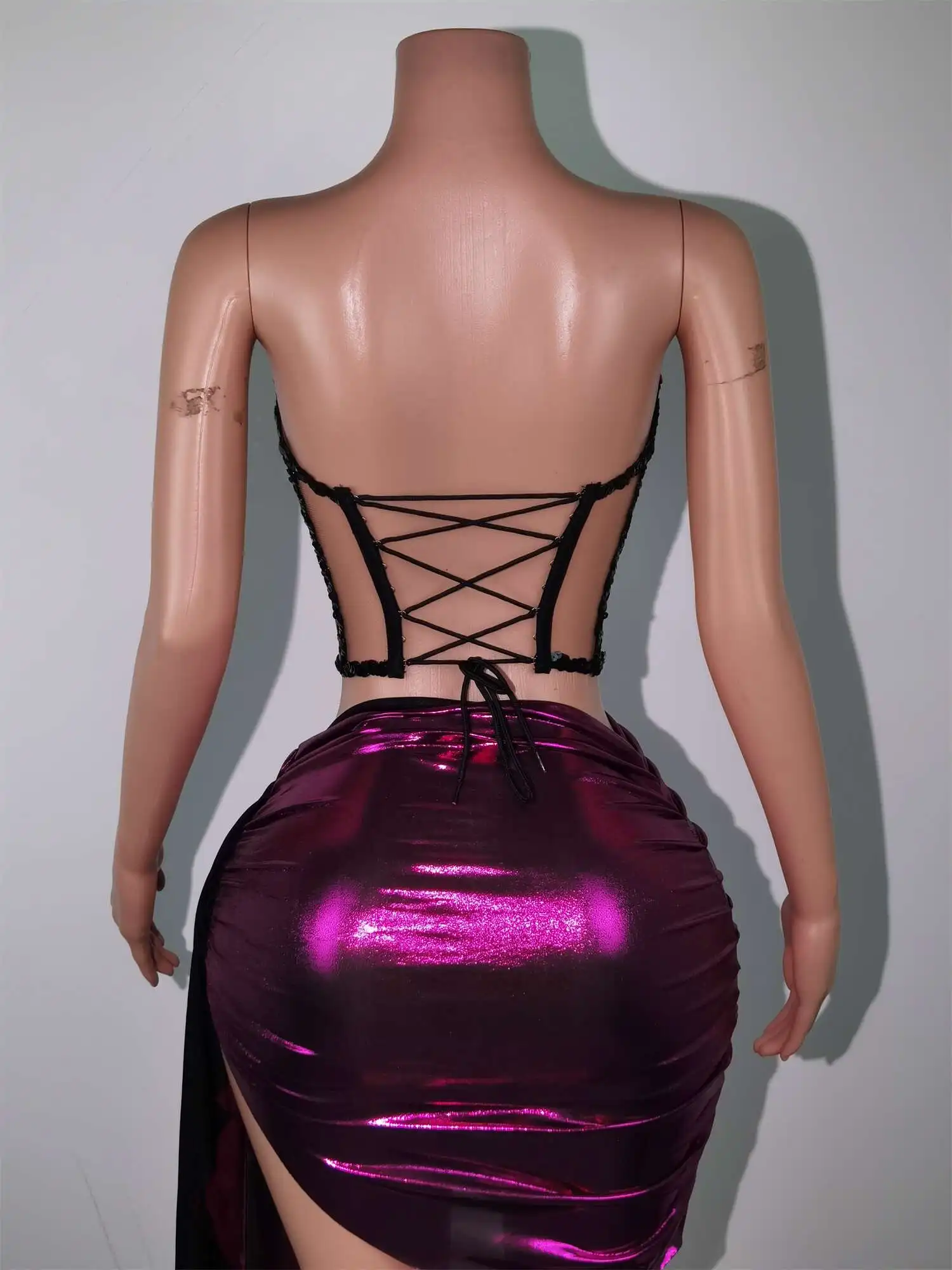 Fashion Dress Women Sequin Sexy Top and Skirt Set Birthday Party Club Pole Stage Wedding Performance Festival Outfits Guojiang