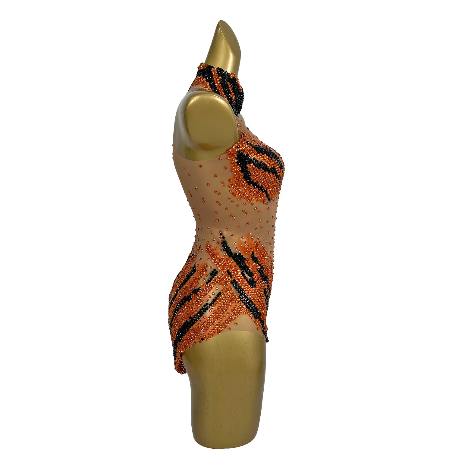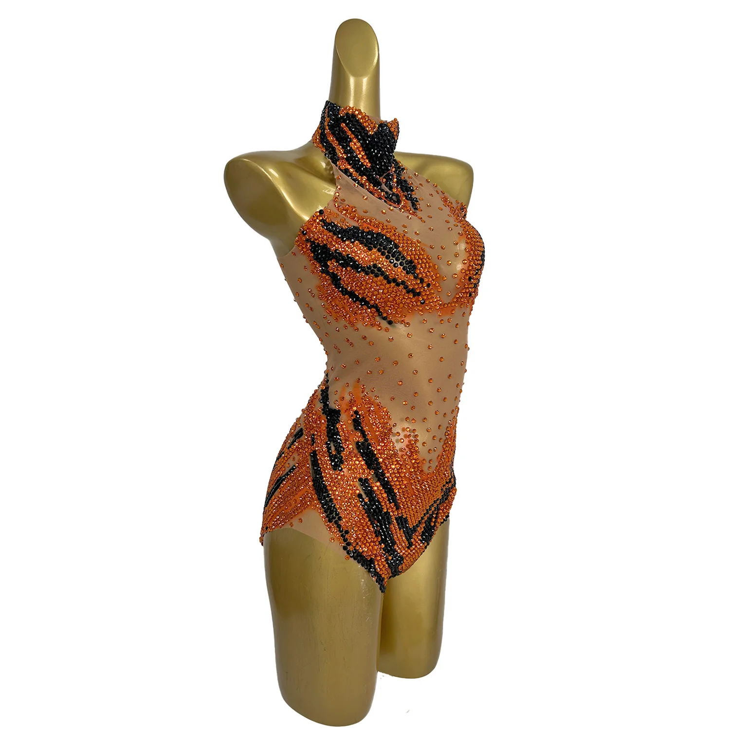 Fashion Elastic Tights Leotard Sexy Crystal Playsuit Women Club Pole Dance Rhinestone Bodysuit Performance Stage Costume Huniu