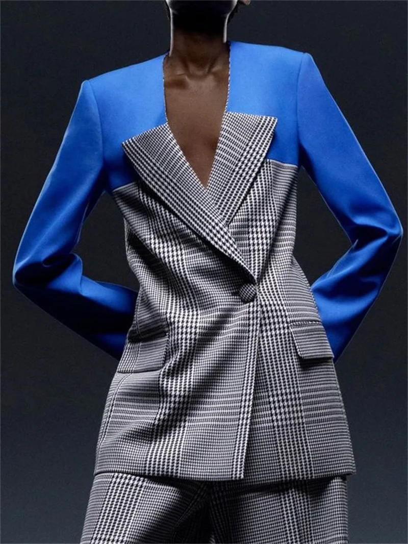 Houndstooth Women Suits Set 2 Pcs Custom Made Stitching Color Blazer+Pants Designer Party Prom Dress