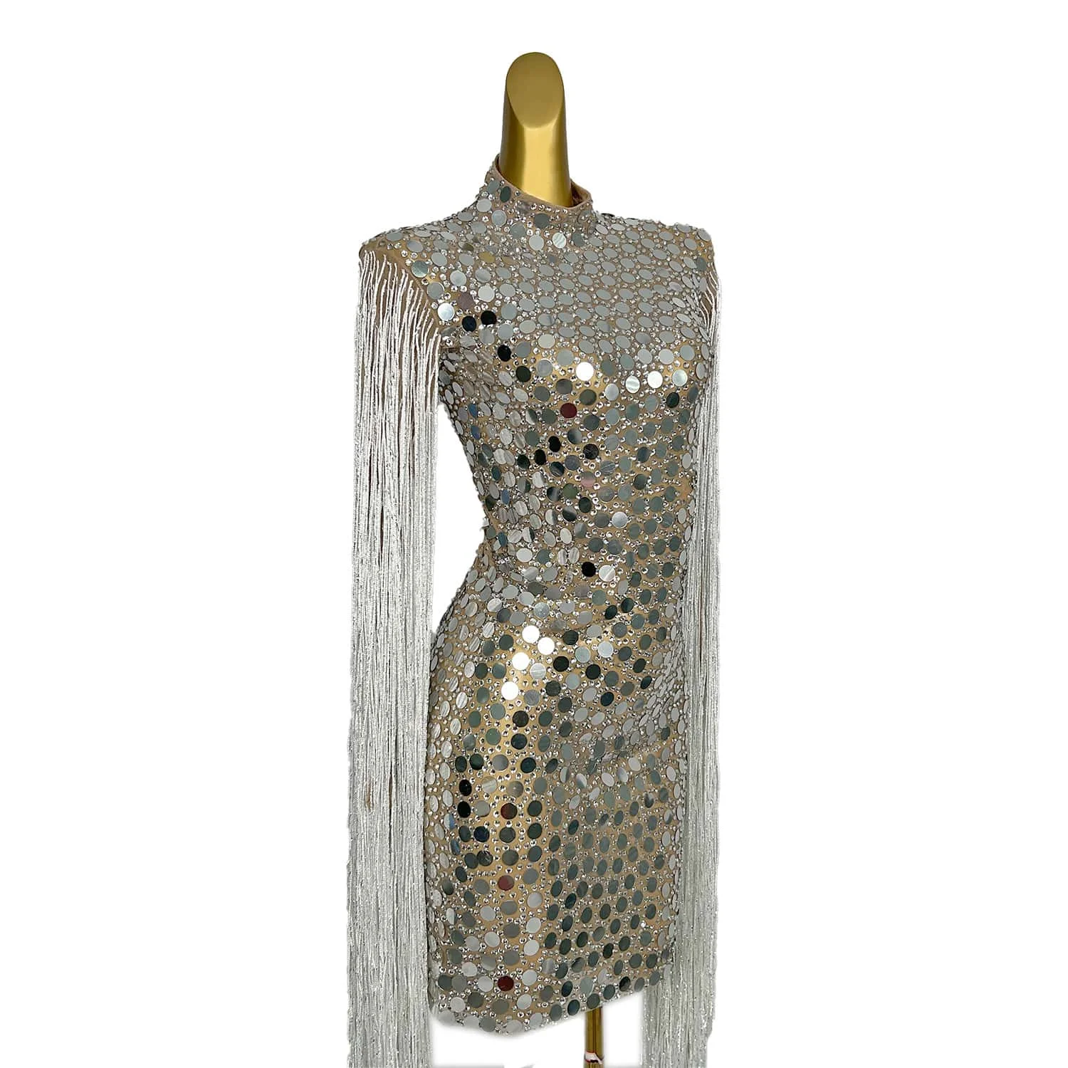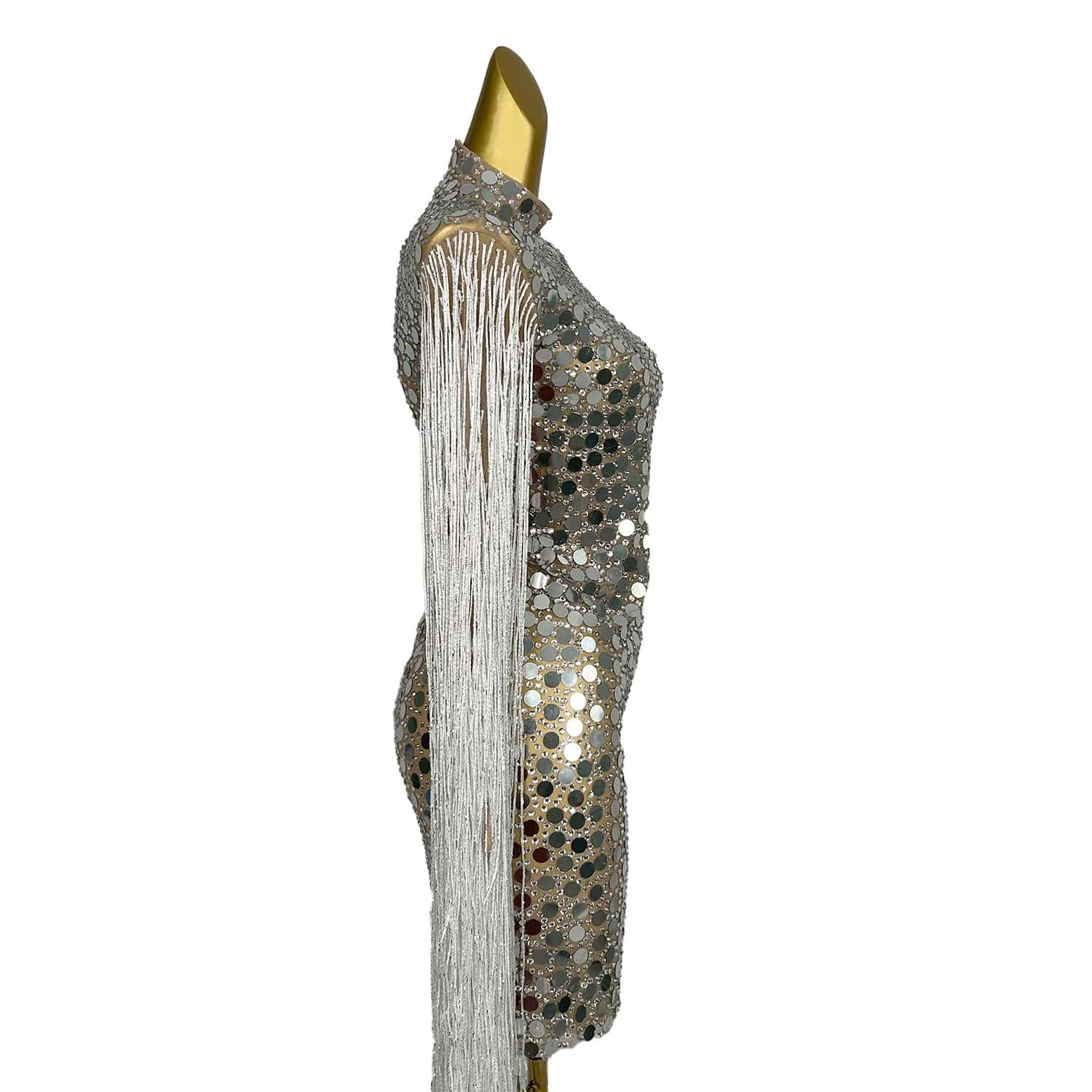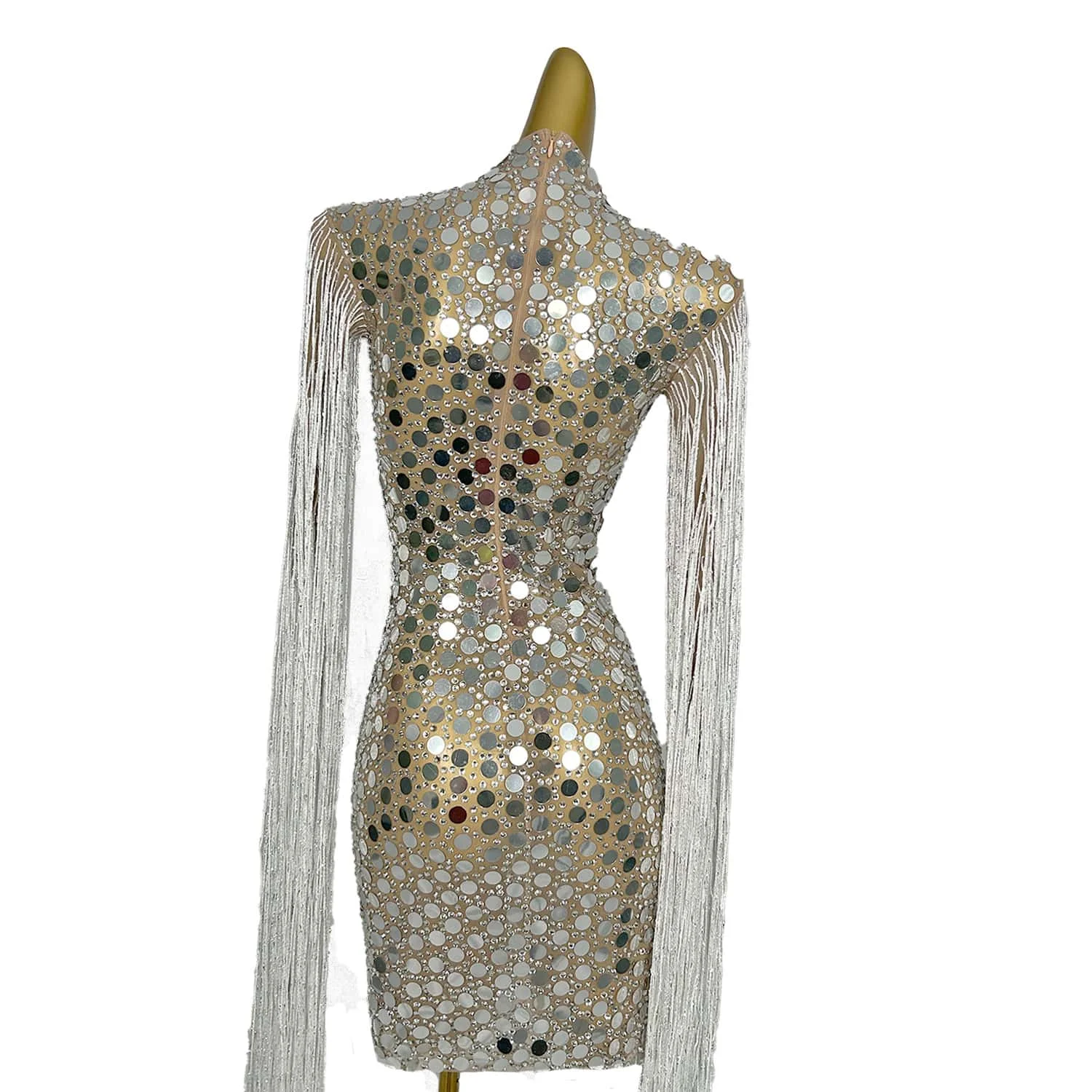 Fashion Long Sleeve Diamonds Dress Sexy Bodycon Mirror Party Dresses for Women Birthday Party Club Dresses Huadianliusu