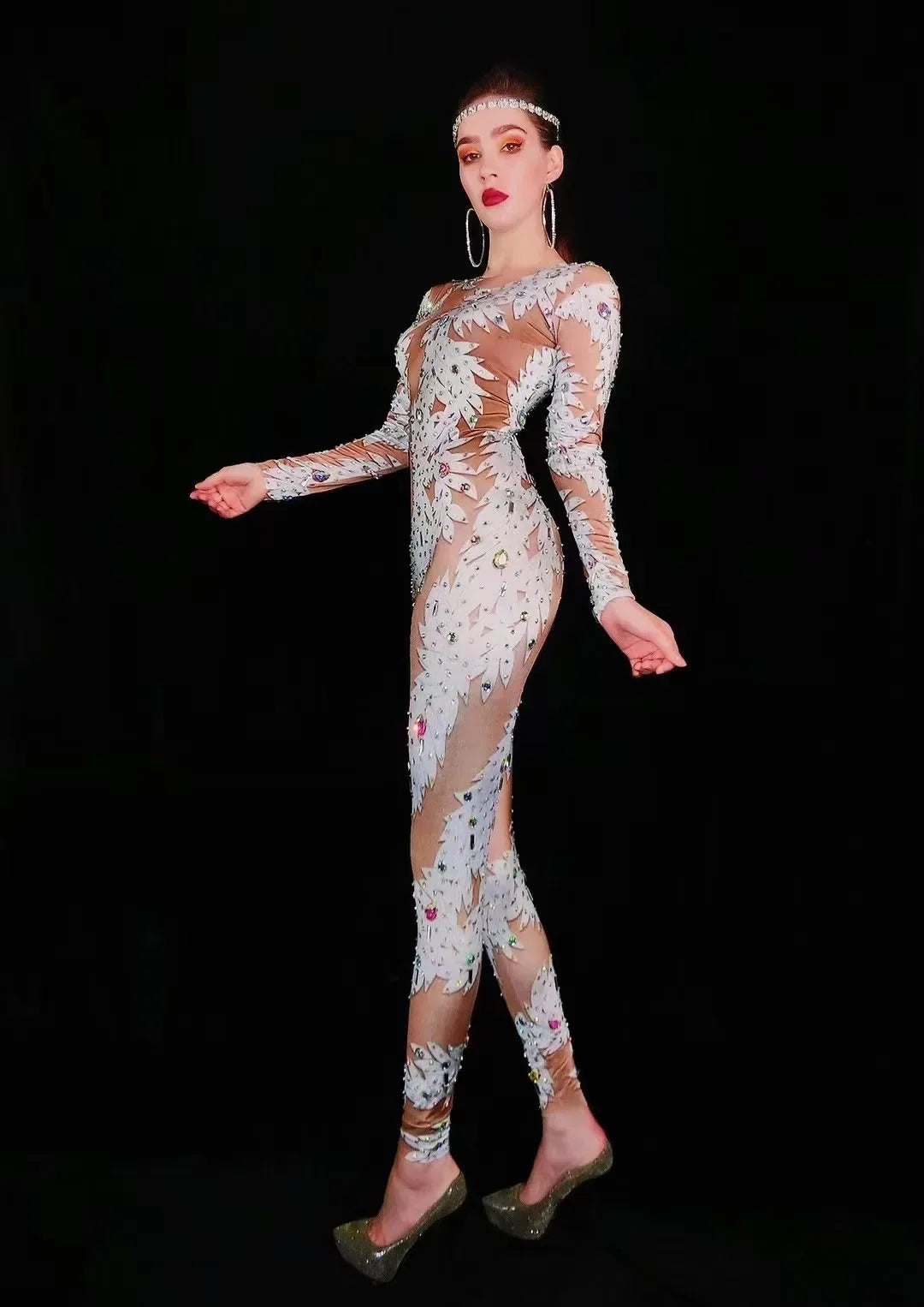 Elevate your nightlife style with this fashion rhinestones jumpsuit, designed for women who love to stand out. Featuring elastic leggings that ensure a perfect fit, this crystal romper is the ultimate sexy stage costume for nightclub parties. Ideal for singers and dancers, it sparkles with dazzling rhinestones that catch the light with every move. Make a bold statement and showcase your confidence in this stunning bodysuit that’s perfect for any performance!