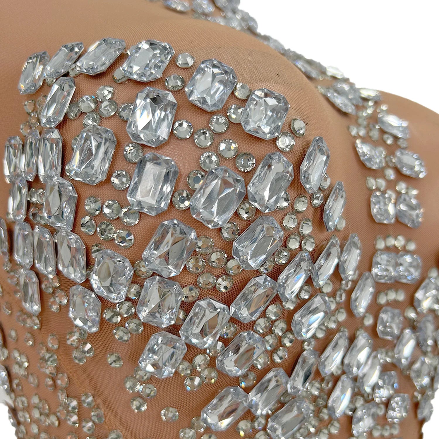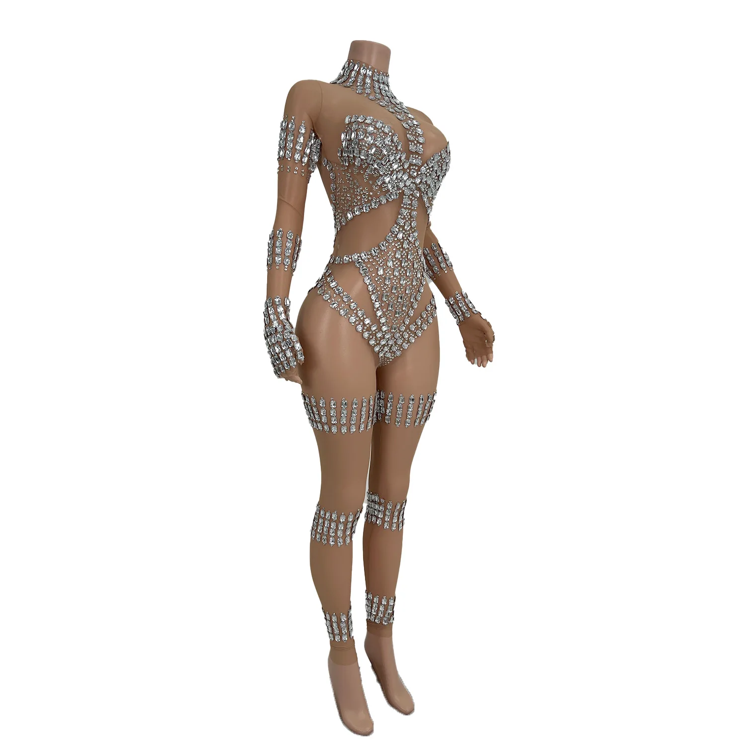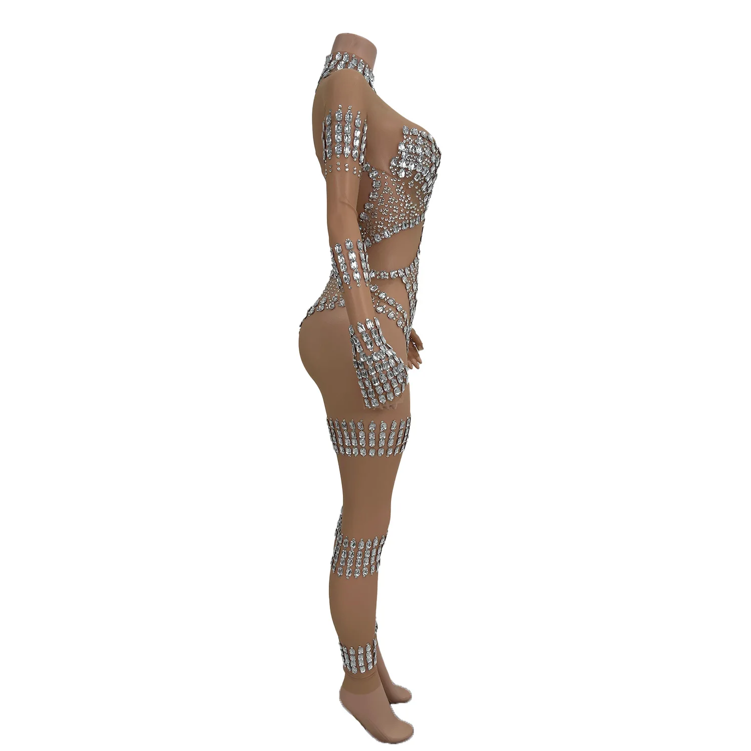 Fashion Sparkly Diamonds Skinny Jumpsuit Women Nightclub Prom Party Outfit Singer Dancer Performance Costume Stage Wear Dunpai