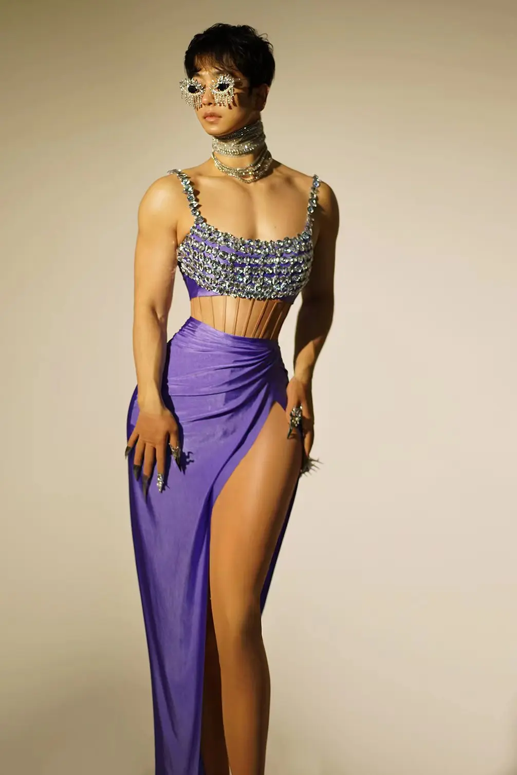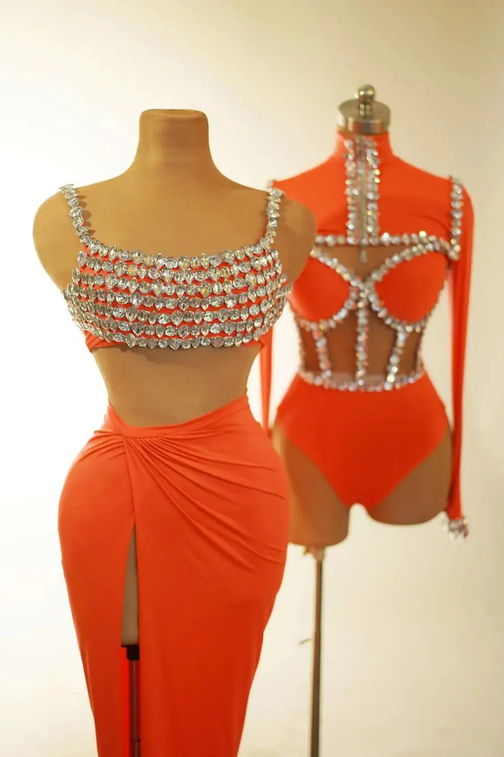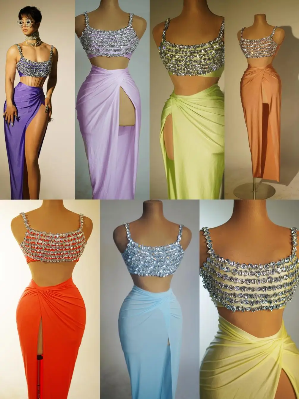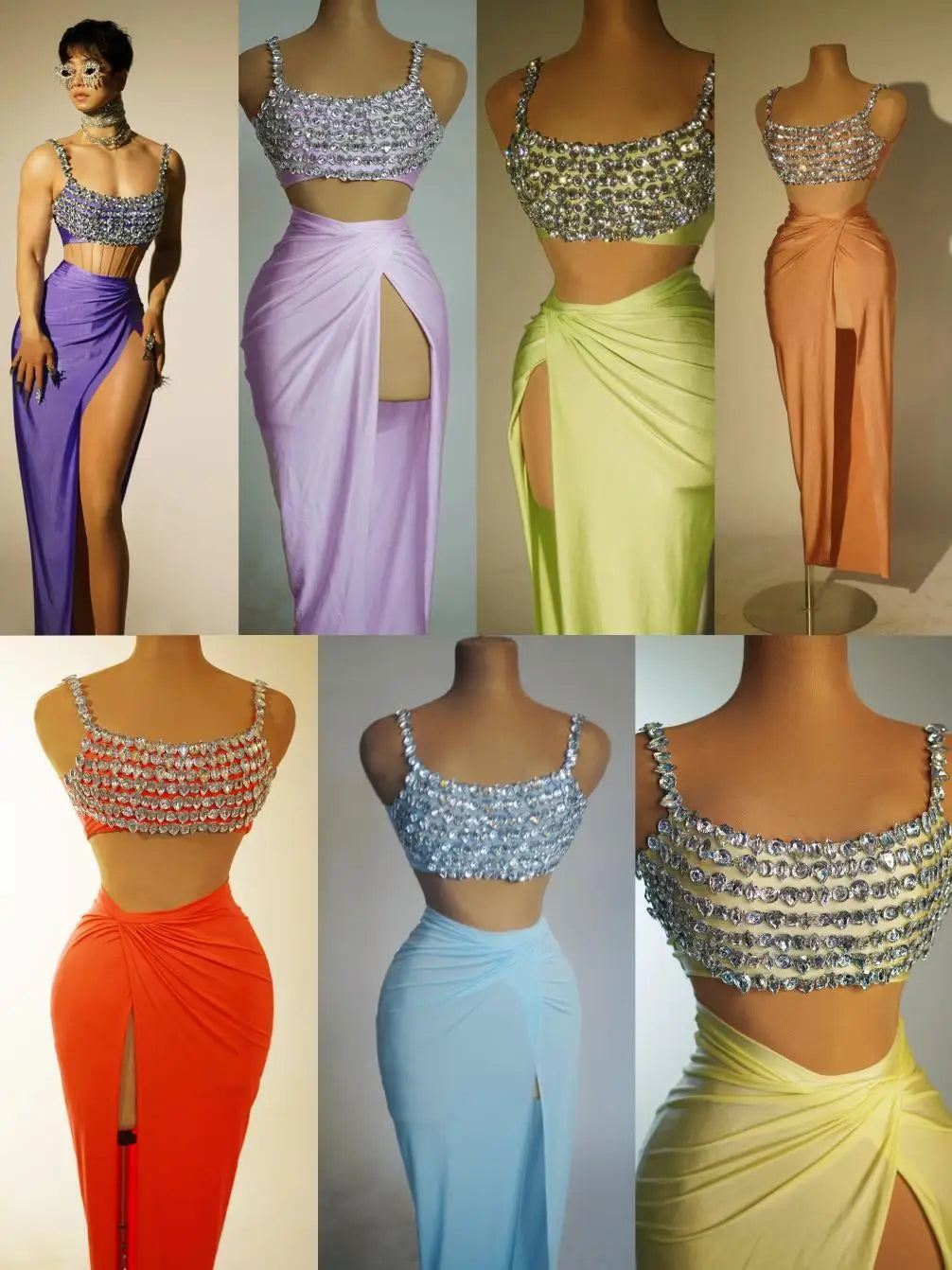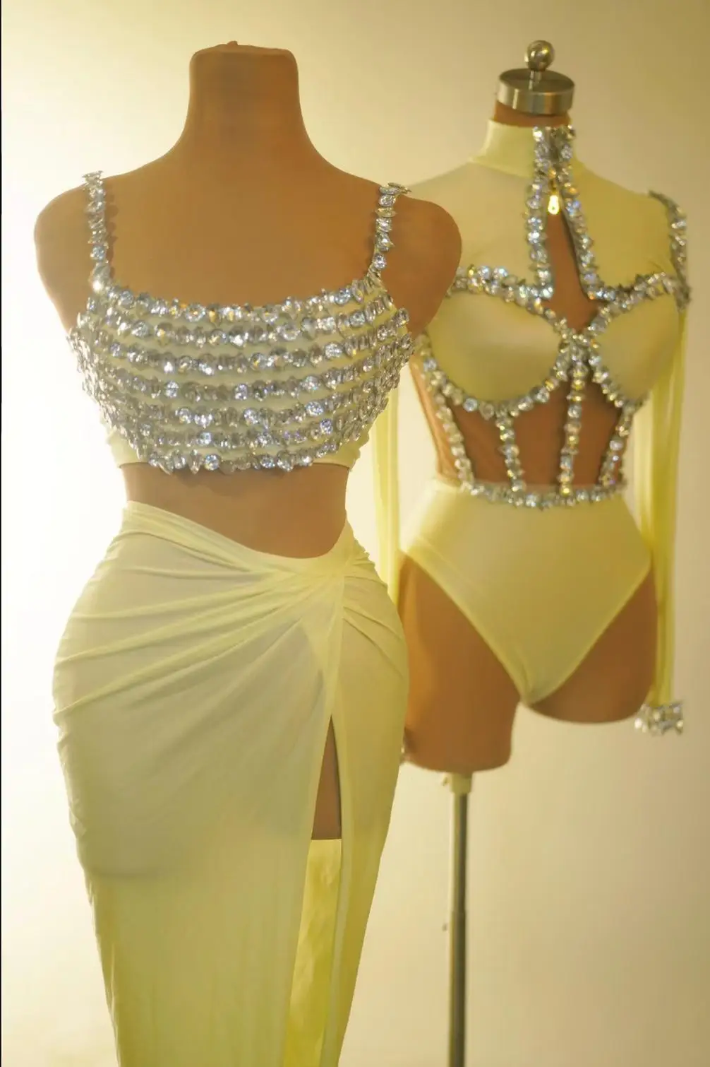 Fashion Sparkly Rhinestones Top Skirt 2-Pieces Set for Women Sexy Celebrate Evening Prom Birthday Photography Shoot Dress Beixin