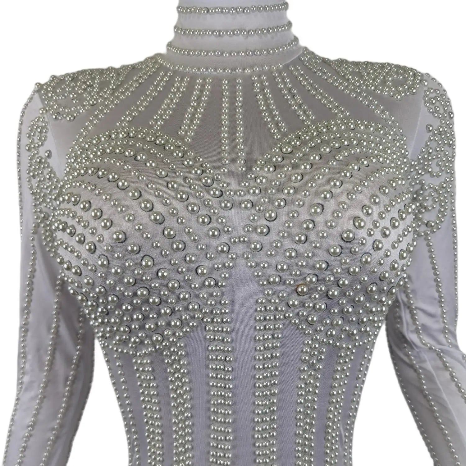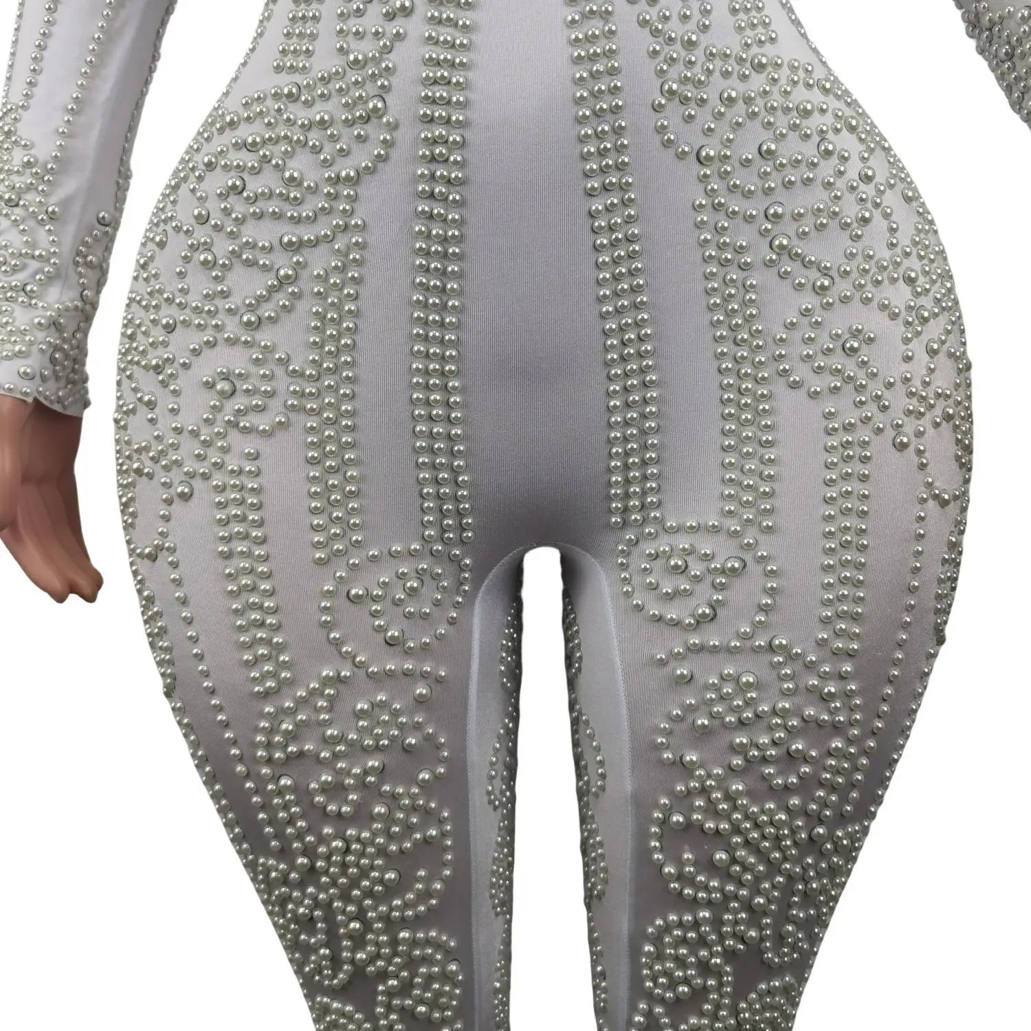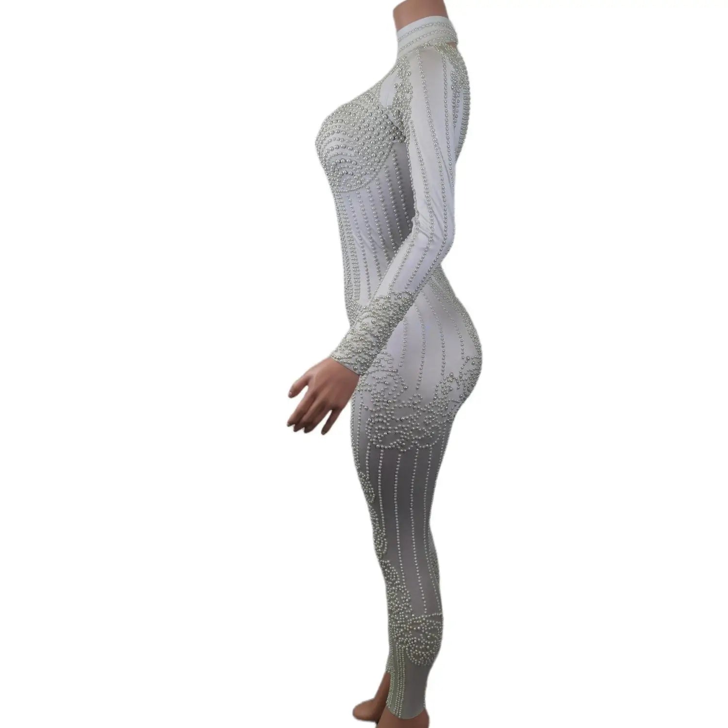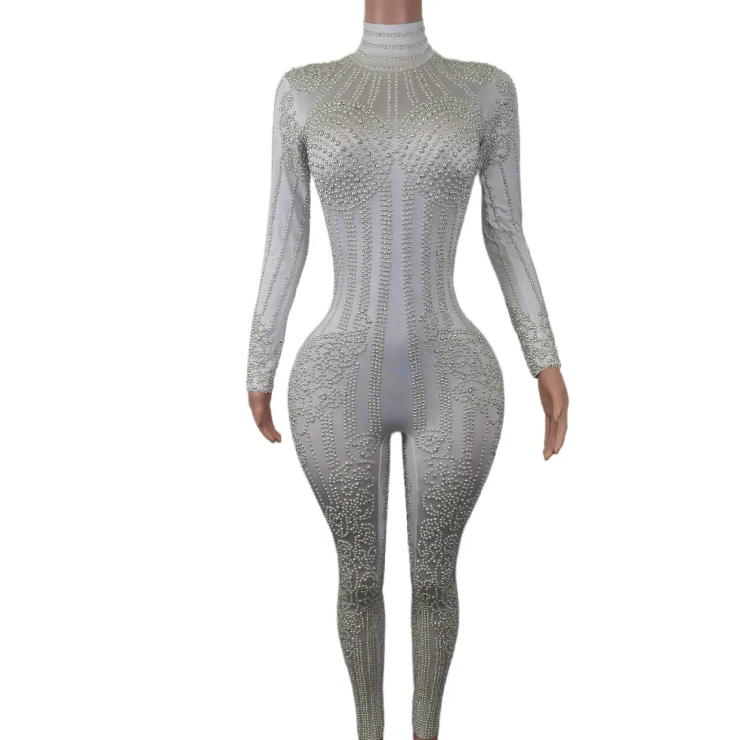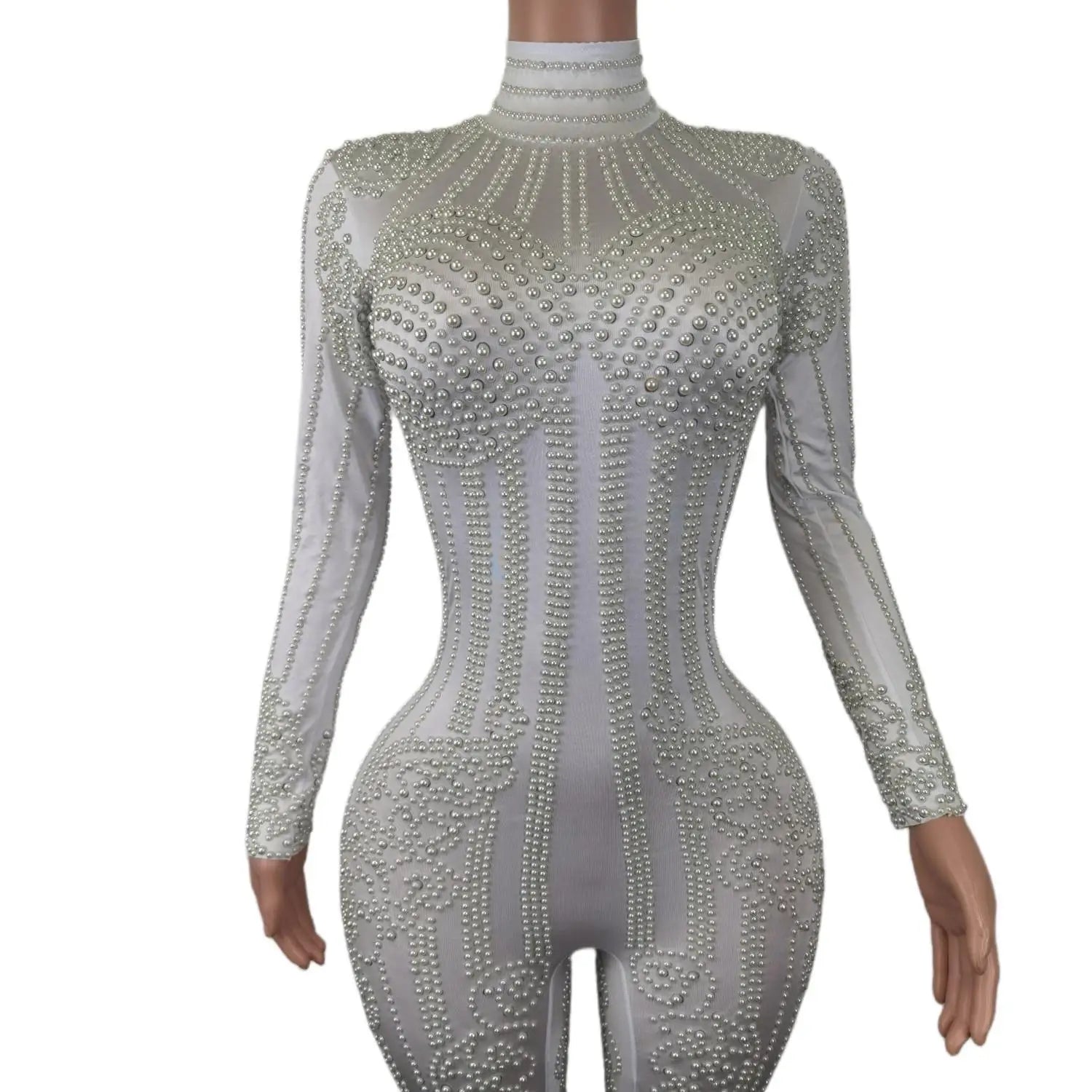 White Pearl Jumpsuit Women Sexy Bodysuit Women Pole Latin Dance Costume Stage Dancer DS Performance Show Wear