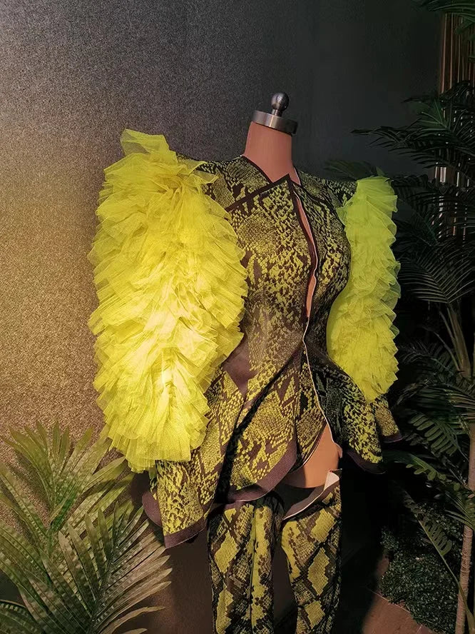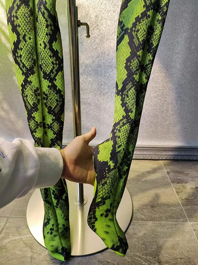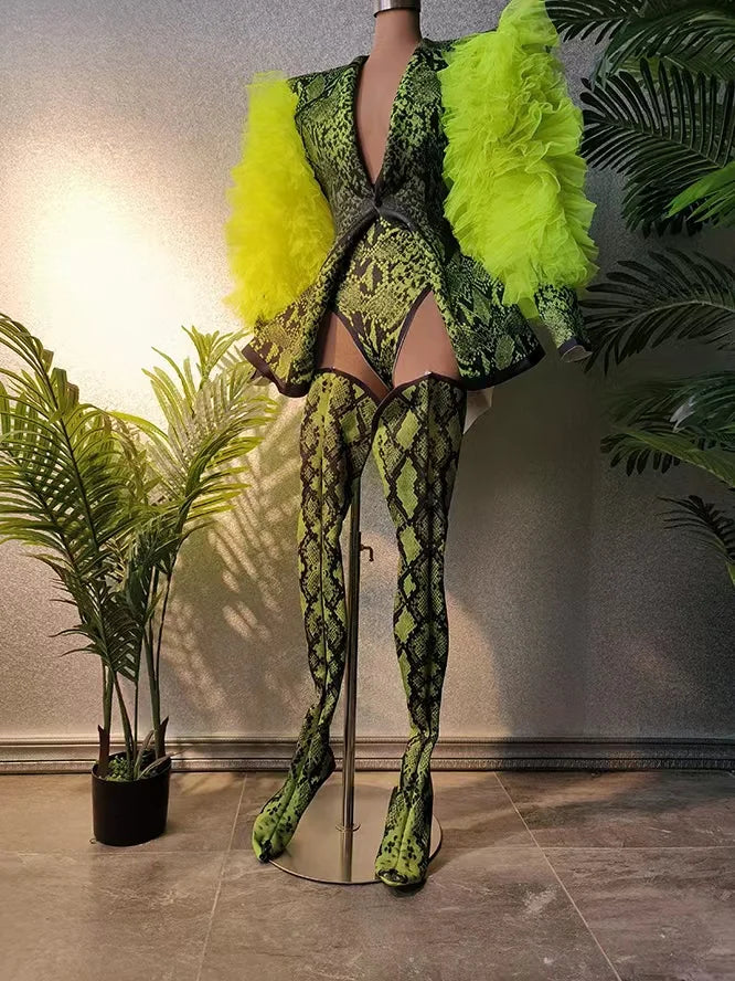 This women's snake print long sleeve bodysuit outfit set is a versatile and stylish choice for various occasions. Whether it's for a prom, a club night, a birthday celebration, or a performance as a singer or dancer, this outfit is designed to make a statement. The snake print adds a trendy and fashionable touch, making it a great option for those looking for a chic and eye-catching ensemble.