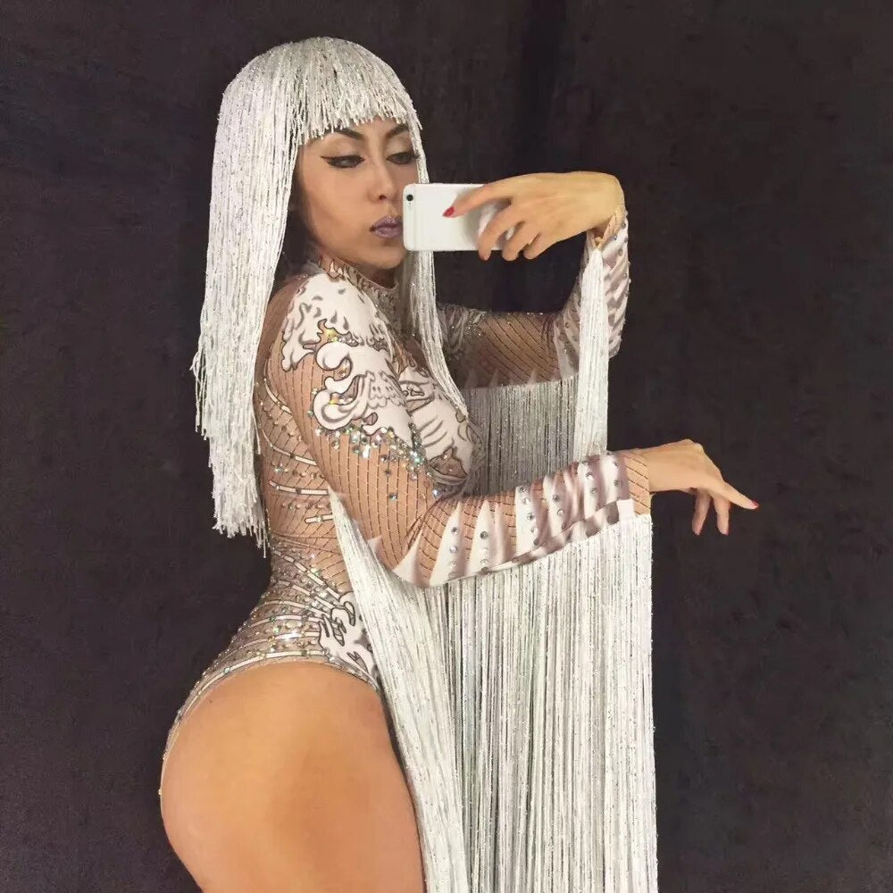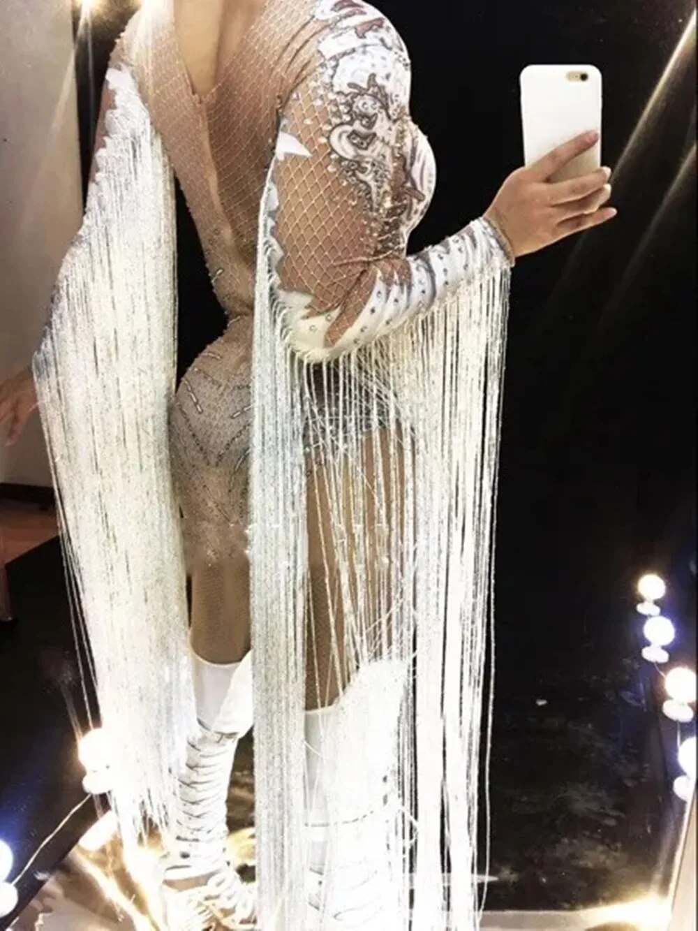 Female Jumpsuit Bodysuit Sexy Bright Crystals Fish Scale Sequins Stones for Singer Dancer Nightclub Stag Party Costumes