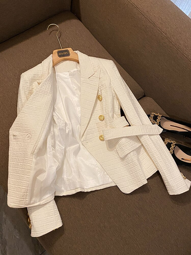 Fine Workmanship Notched Long Sleeve Women Solid Geometric Pattern Office Lady Blazer with Belt