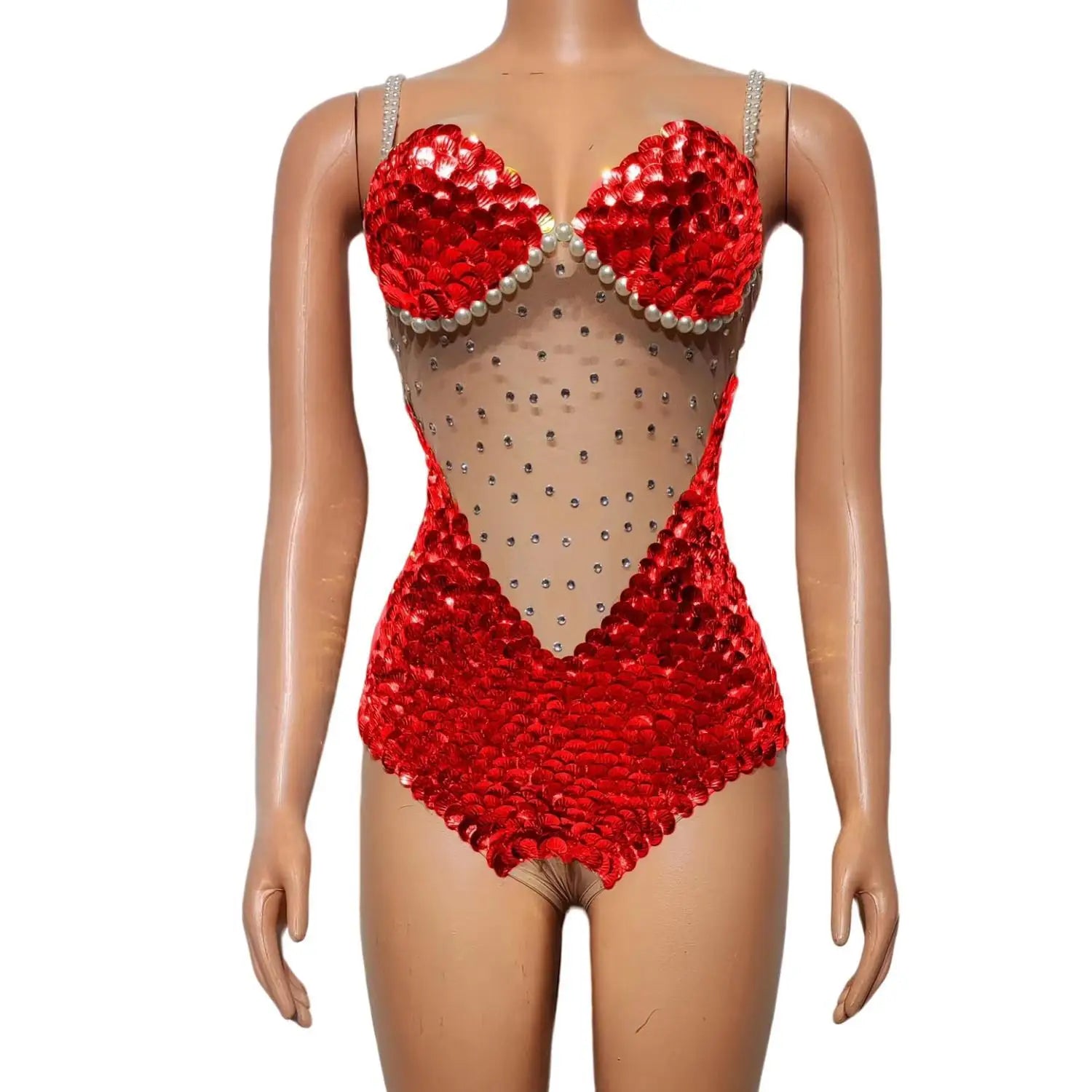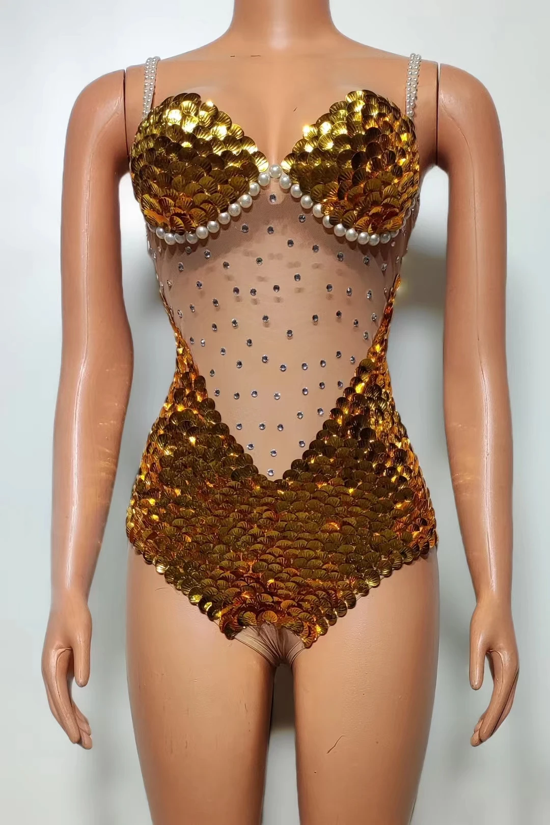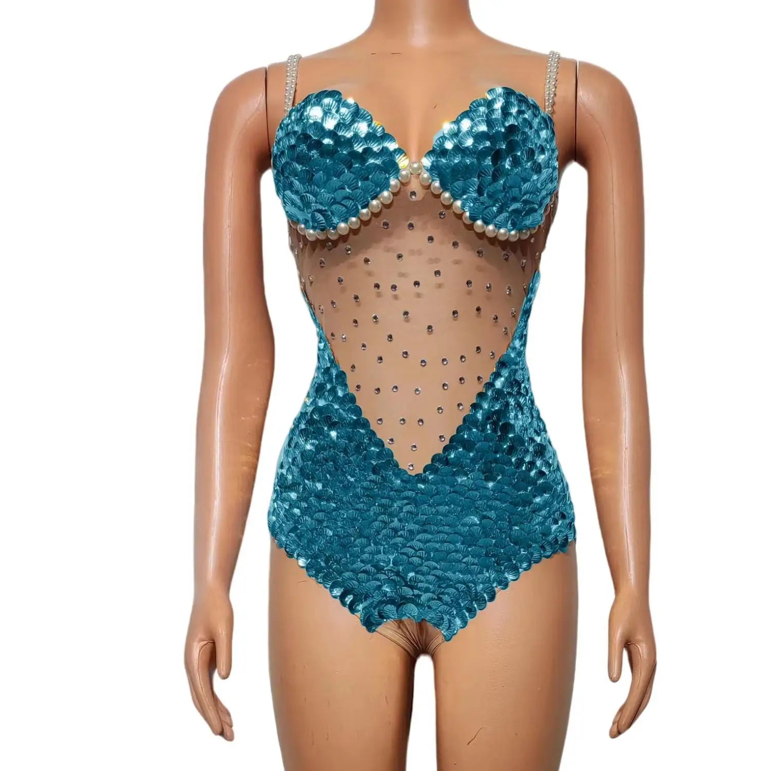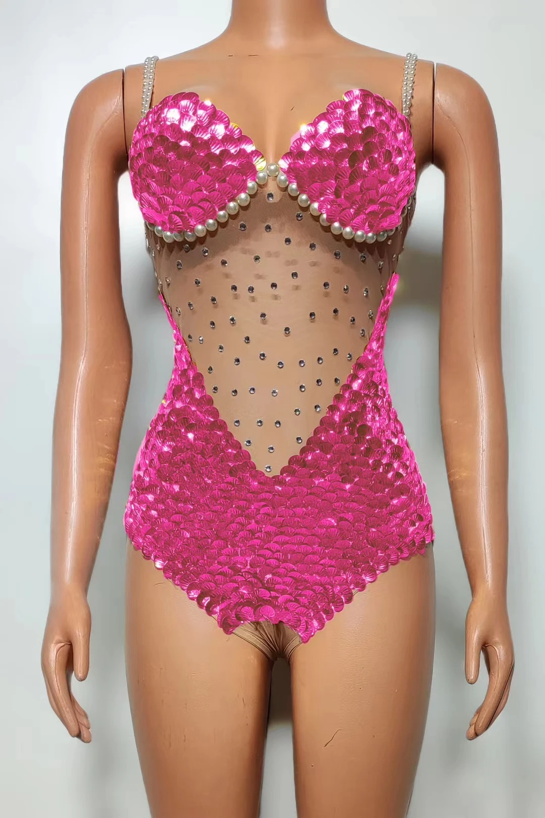Flashing Sequins Pearls Leotard Sexy See Through Bodysuit Evening Party Celebrate Costume Dancer Prom Photoshoot Wear Bingfeng
