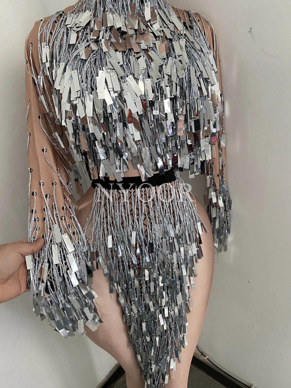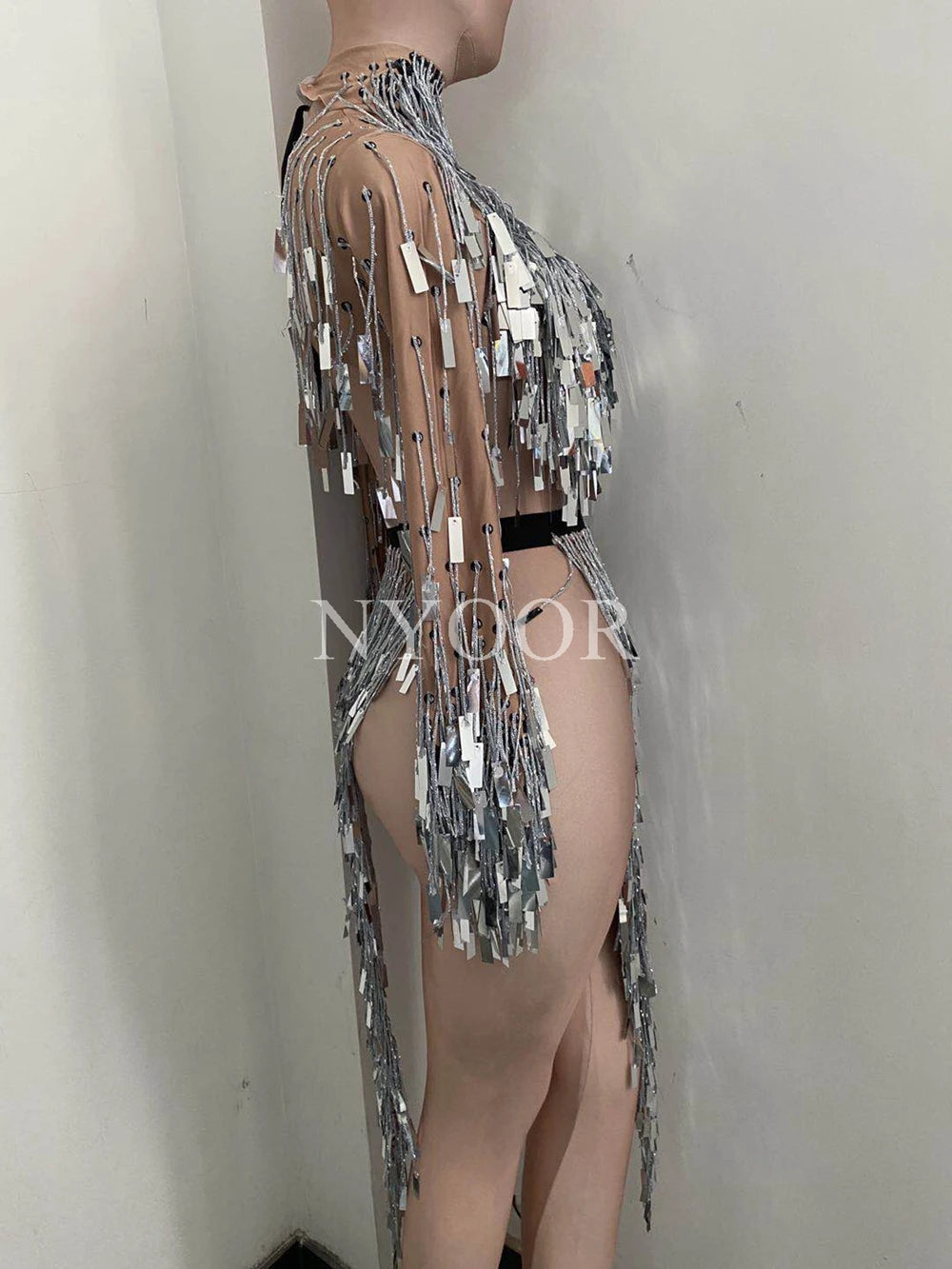 Make a statement in this eye-catching flashing silver sequins fringe split dress, designed for women who love to stand out! Perfect for nightclub dancing, performances, and birthday celebrations, this stunning outfit combines bold fringe accents with a daring split, ensuring you capture attention on stage. Lightweight and vibrant, it's the ideal rave outfit for those unforgettable nights out!