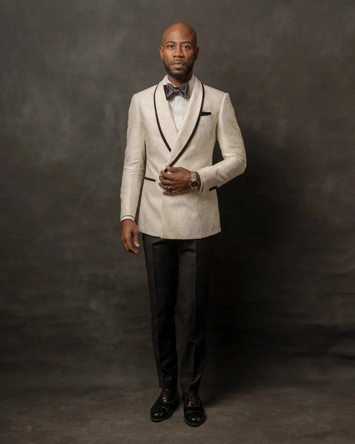 Floral Jacquard 2 Pieces Blazer Pants Men Suits Tuxedo Vent One Button Fashion Formal Prom Wedding Groom Plus Size Tailored