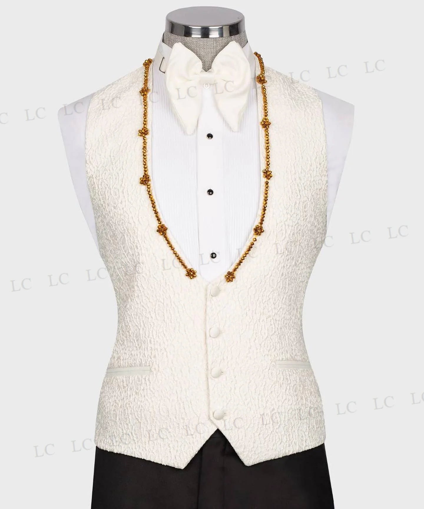 Floral Men Suits 3 Piece Blazer Vest Pants One Button Beaded Gold Appliques Tuxedo Pearls Wedding Groom Plus Size Costume Homme