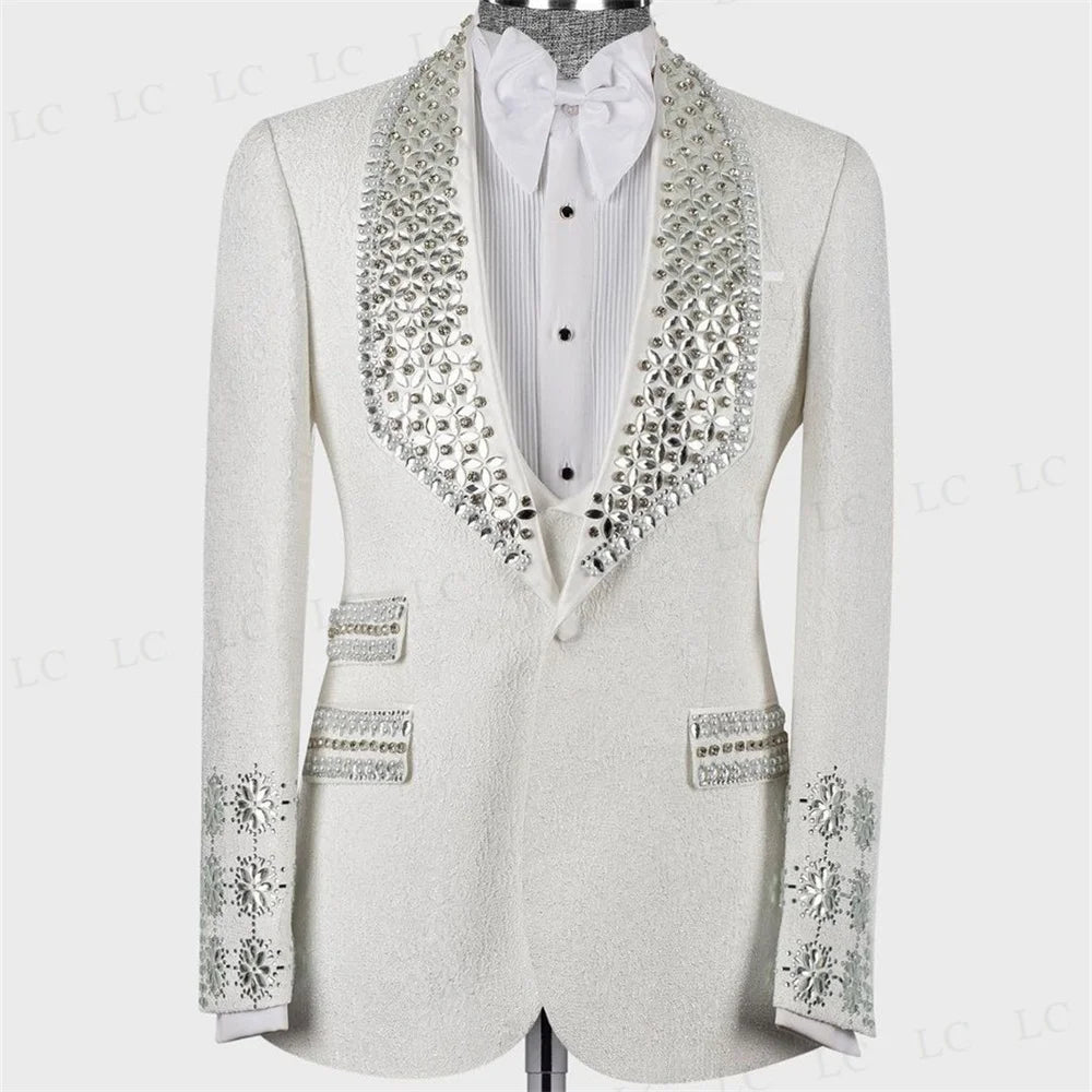 Floral Wedding Groom Diamonds Beading Crystals Men Suits 2 Pieces Blazer Vest One Button Formal Work Wear Plus Size Tailored