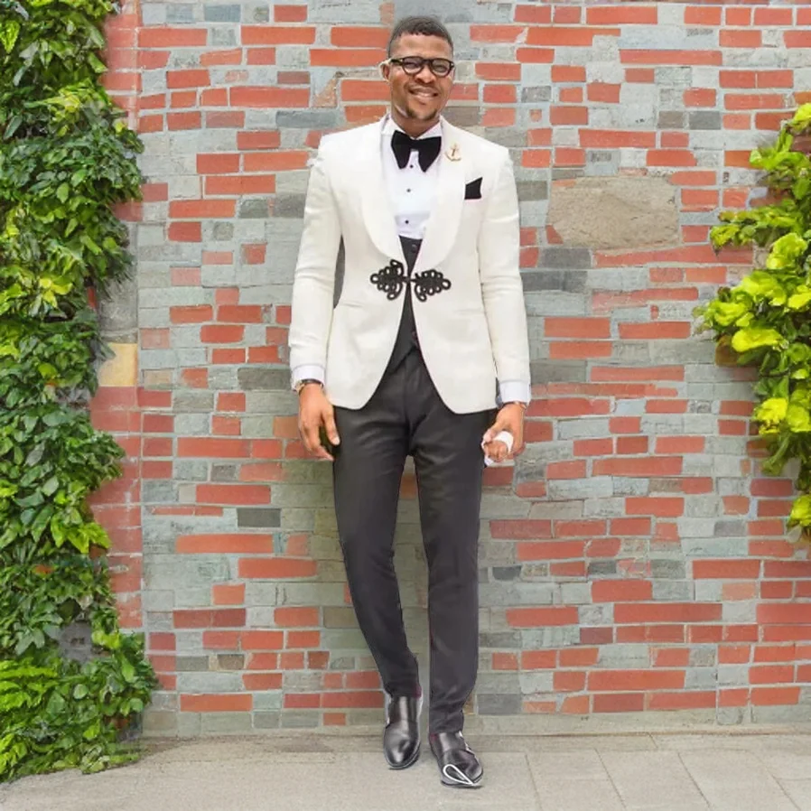 Floral Wedding Tuxedo Slim Fit Formal Suit with Chinese Buttons Shawl Lapel Custom Wedding Groom Tuxedo (Jacket + Vest + Pants)