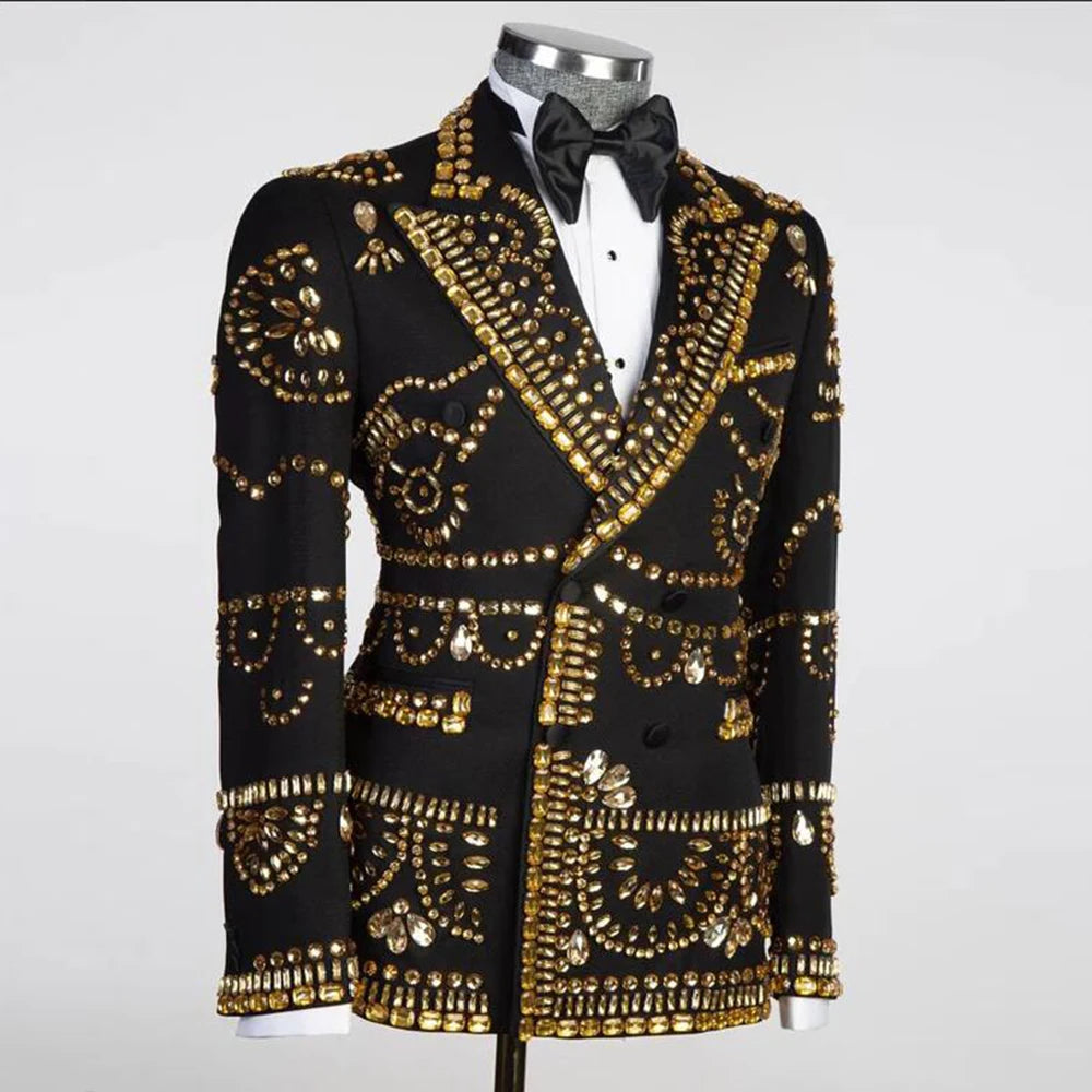 Elevate your style with this Gemstone Beaded Suits Men for Wedding. This double-breasted prom blazer and pants set is perfect for groom wear, tuxedos, and tailor-made costume. Make a statement with this elegant ensemble, tailored for any special occasion.