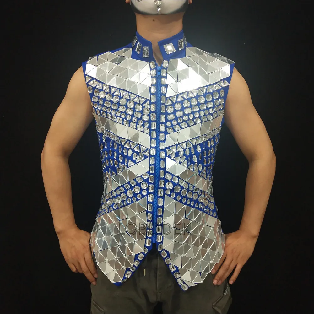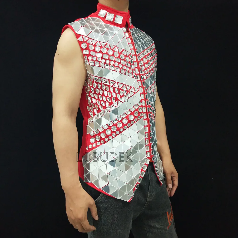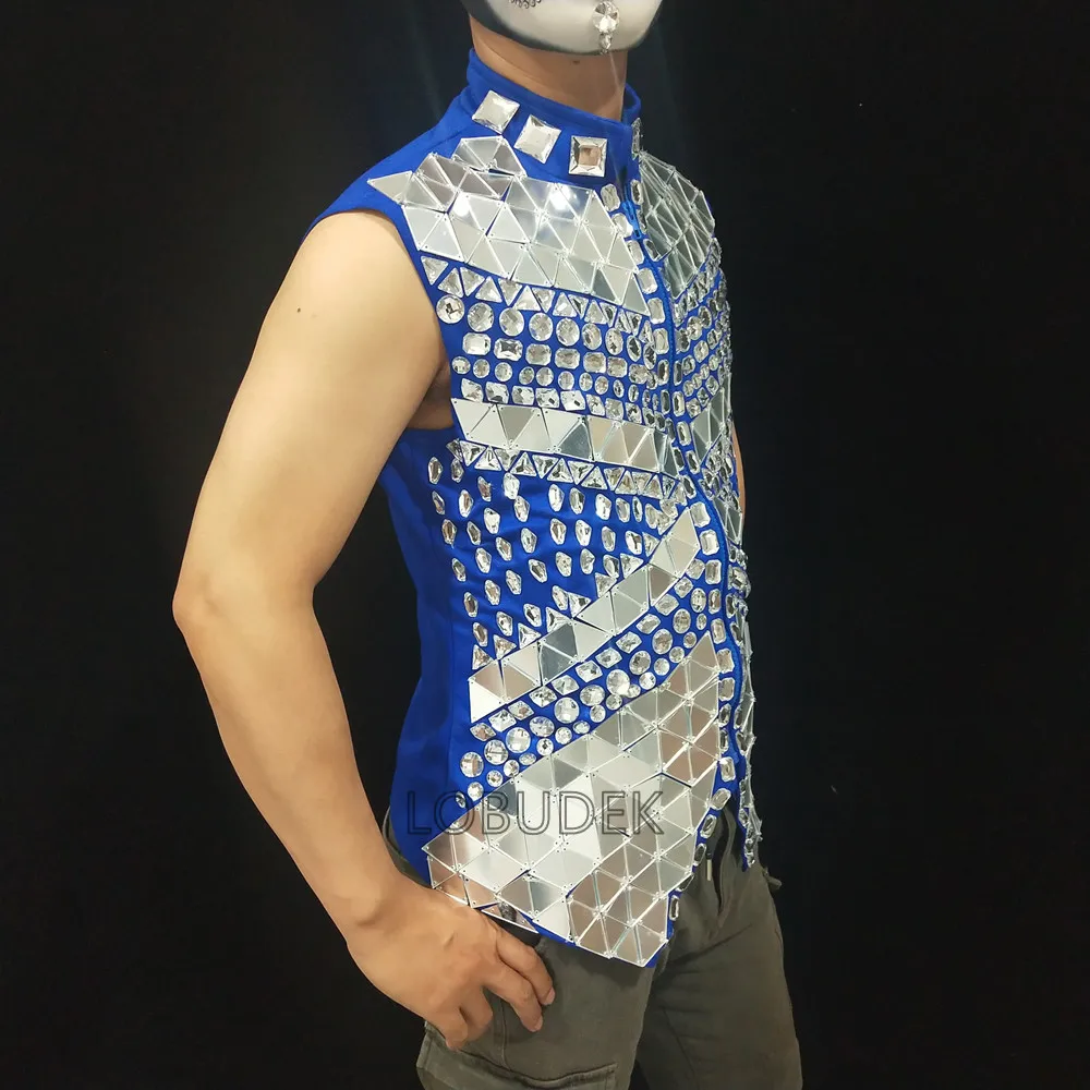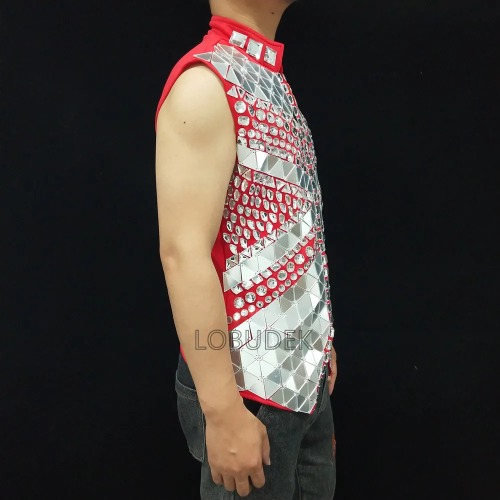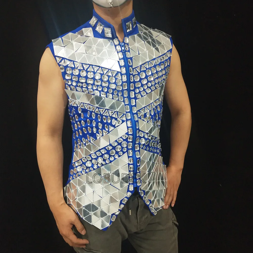 Glitter Mirror Rhinestone Waistcoat Sequin Crystal Vest Coat for Male Singer Bar Concert Stage Performance Drummer Dance Costume