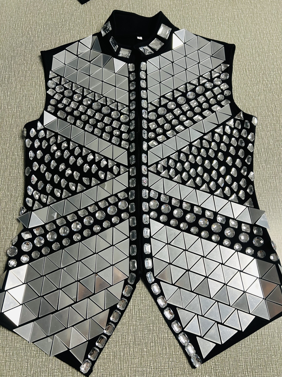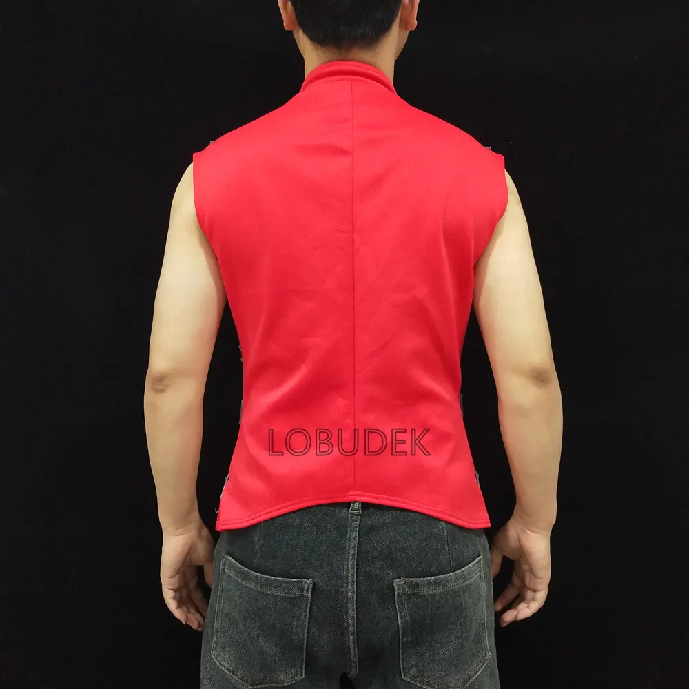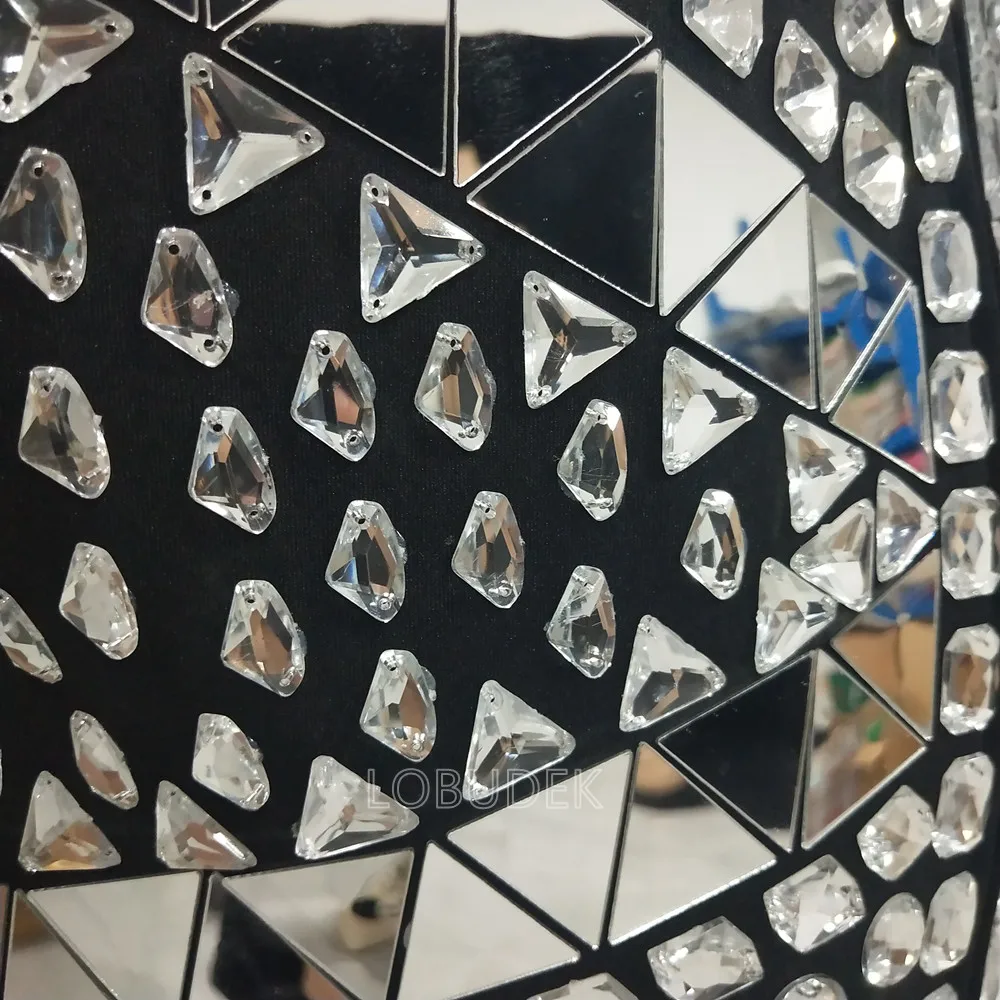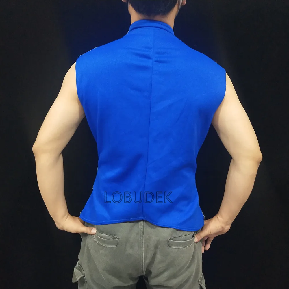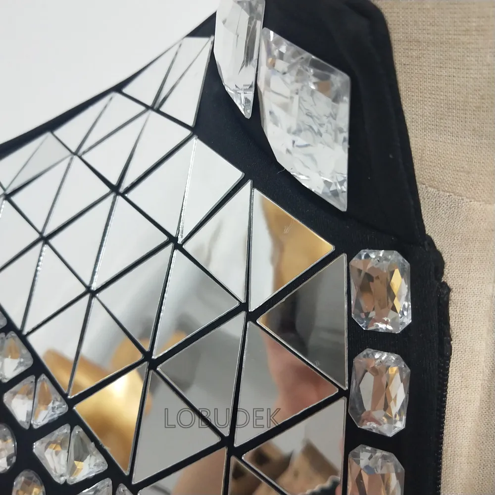 Glitter Mirror Rhinestone Waistcoat Sequin Crystal Vest Coat for Male Singer Bar Concert Stage Performance Drummer Dance Costume