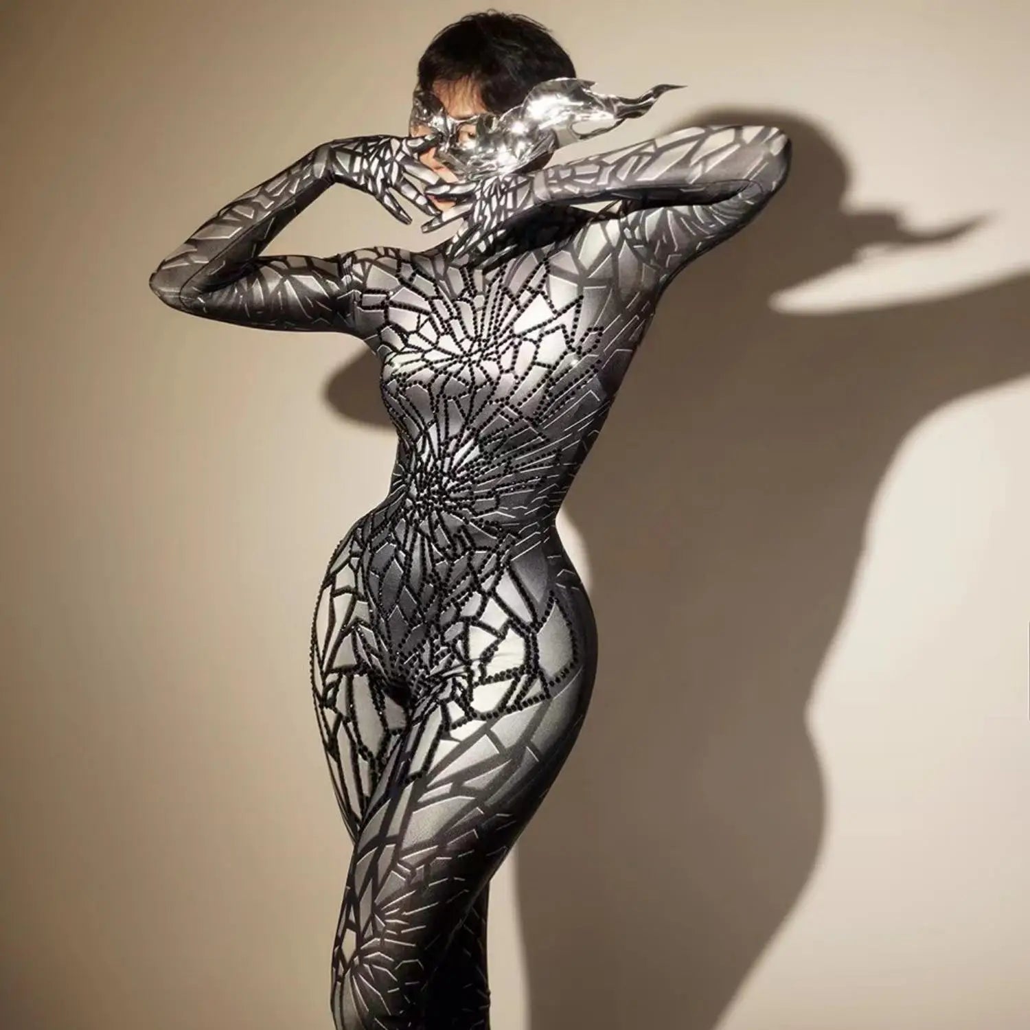 Glitter Rhinestones Jumpsuit for Women Sexy Stretch Dance Bodysuit Party Singer Stage Wear Birthday Drag 1ueen Costumes Posui