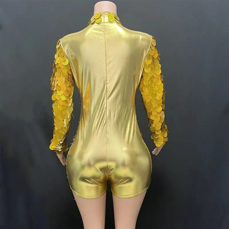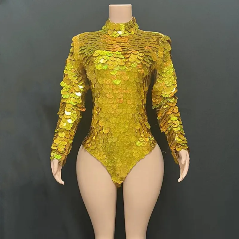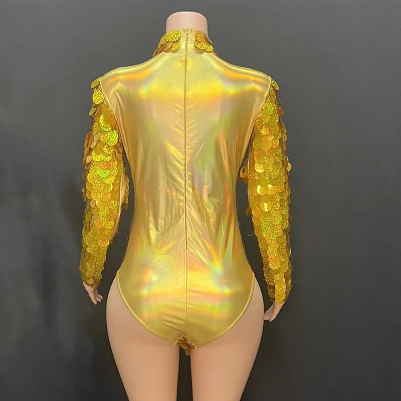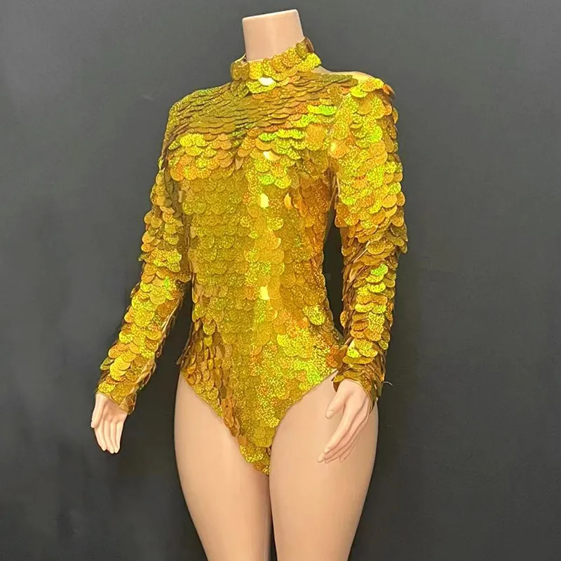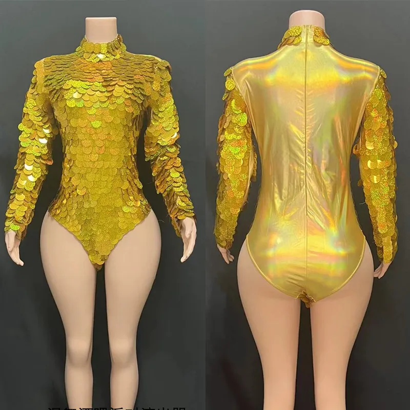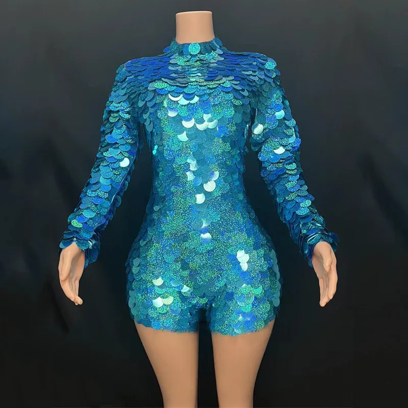 Gold Blue Sequins Bodysuit Women Party Festival Outfit Laser Gogo Dancer Costume Bar Nightclub Dj Ds Stage Rave Clothes