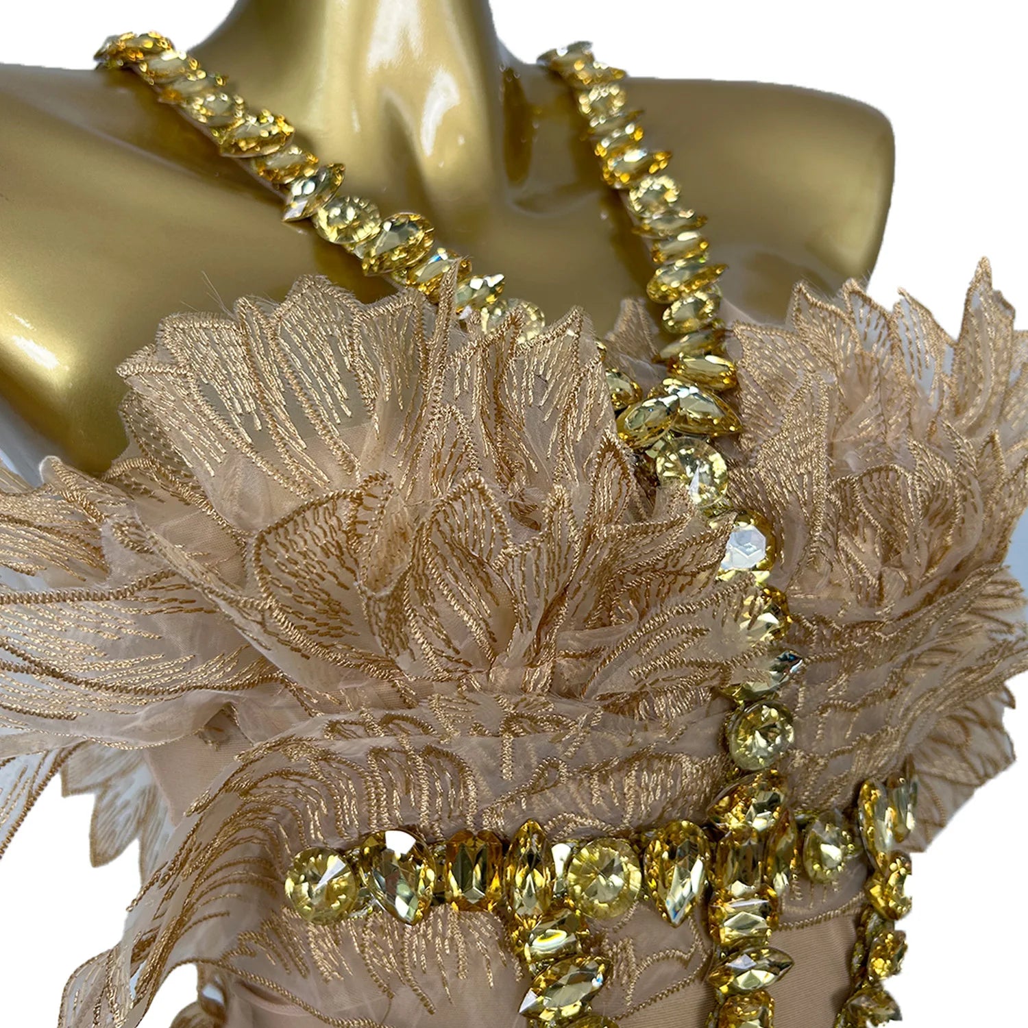 Sexy Rhinestones Halter Short White Wing Dresses for Women Celebrate Birthday Dress Performance Dance Costume Baichan