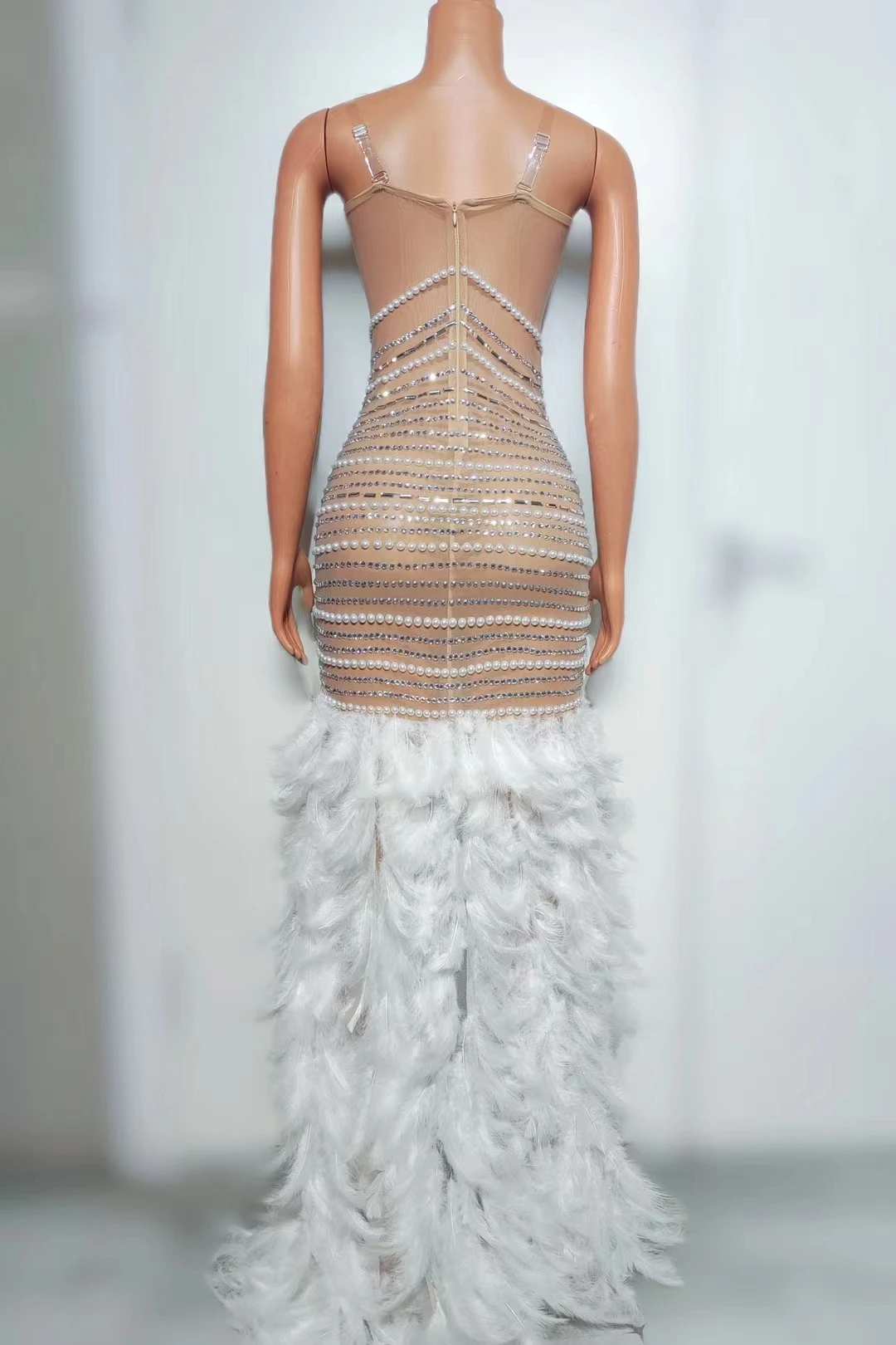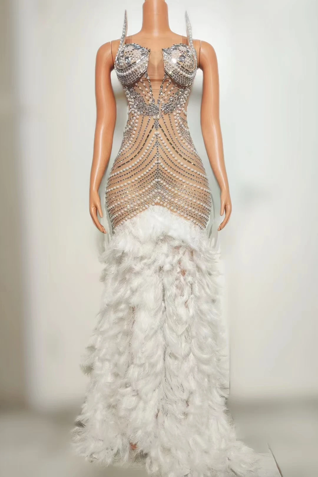 Gorgeous Off Shoulder Sparkly Handmade Crystals Mermaid Bridal Wedding Gowns White Feather Ruffles Wedding Dresses Renrenwang