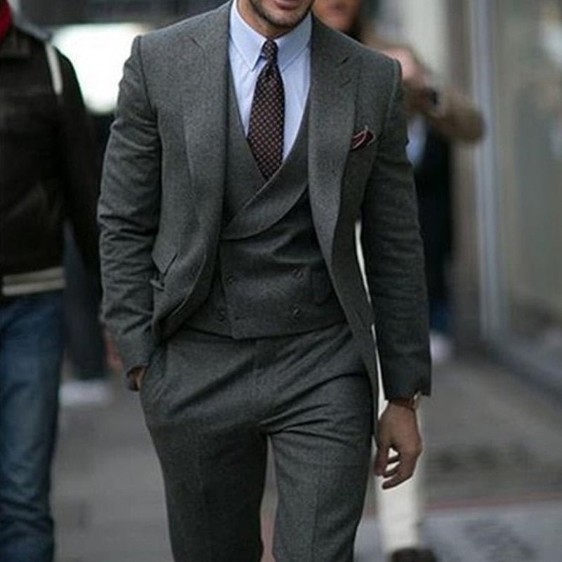 Step into timeless elegance with our Gray Woolen Tweed Casual Suit, designed for weddings and special occasions. This 3-piece groom tuxedo ensemble includes a jacket, vest, and pants, exuding sophistication and refined style. Crafted from high-quality woolen tweed, this ensemble is perfect for the modern gentleman looking to make a lasting impression. Embrace classic charm with this distinguished and versatile suit