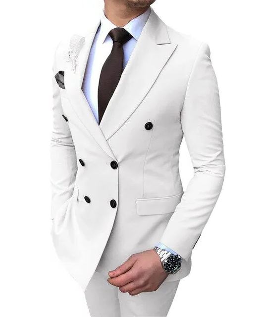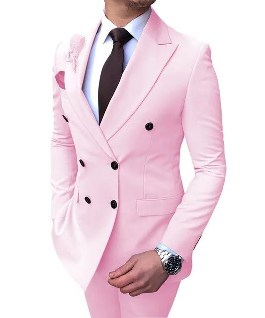 Groomsmen Groom Custom Made Tuxedos Pink Men Suits Set Double Breasted Peak Lapel Formal Wedding Suits For Men
