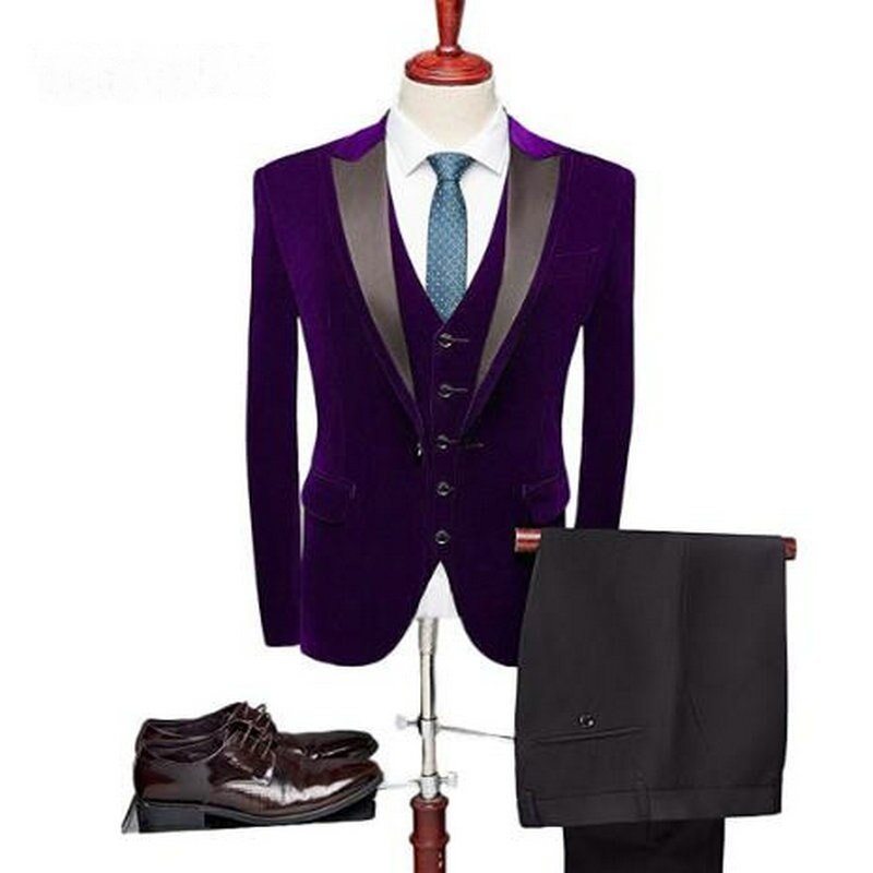 Groomsmen Groom Tuxedos Peaked Lapel Purple Velvet Jacket Wedding Prom Party Suits Blazer Masculino