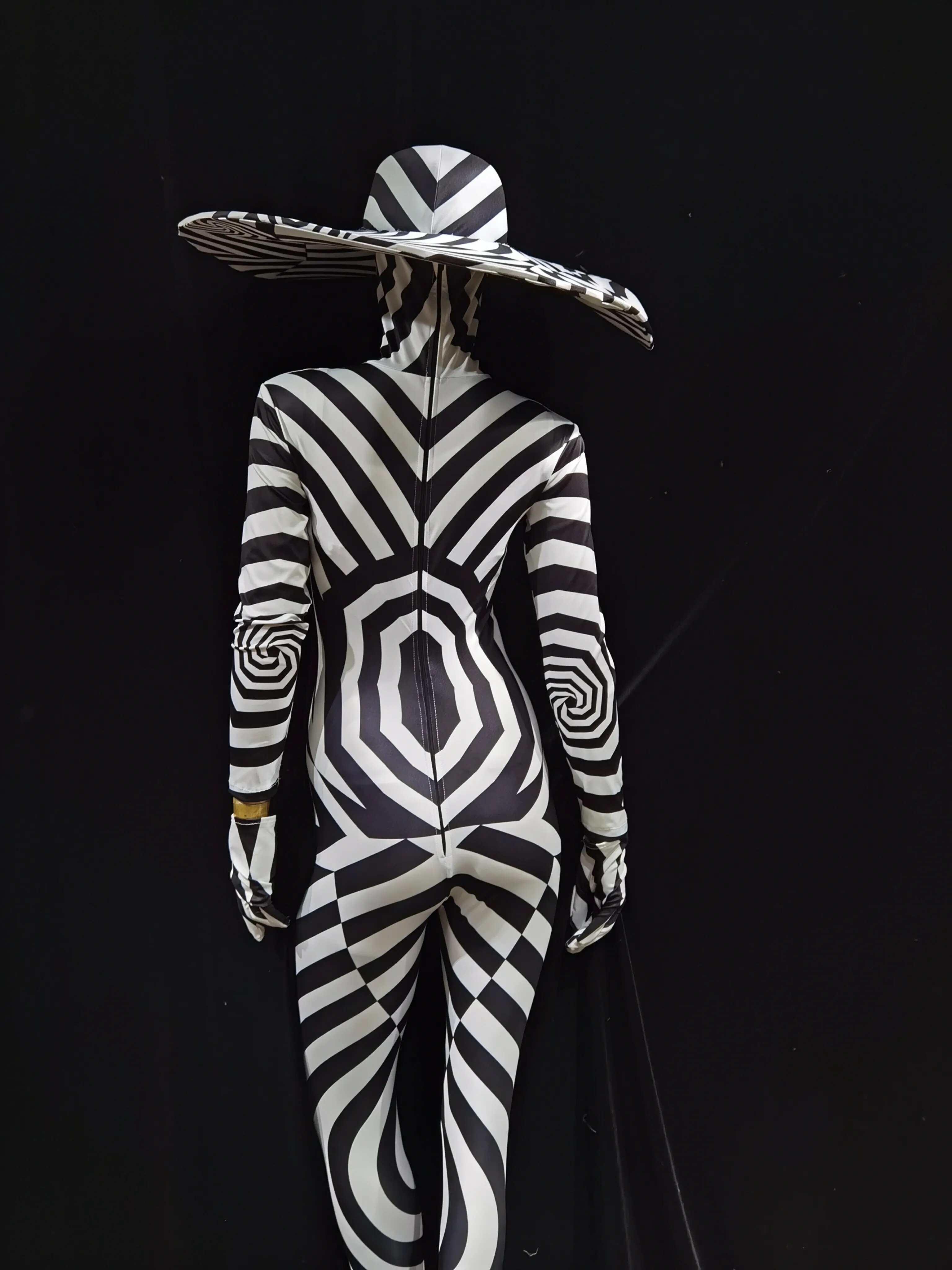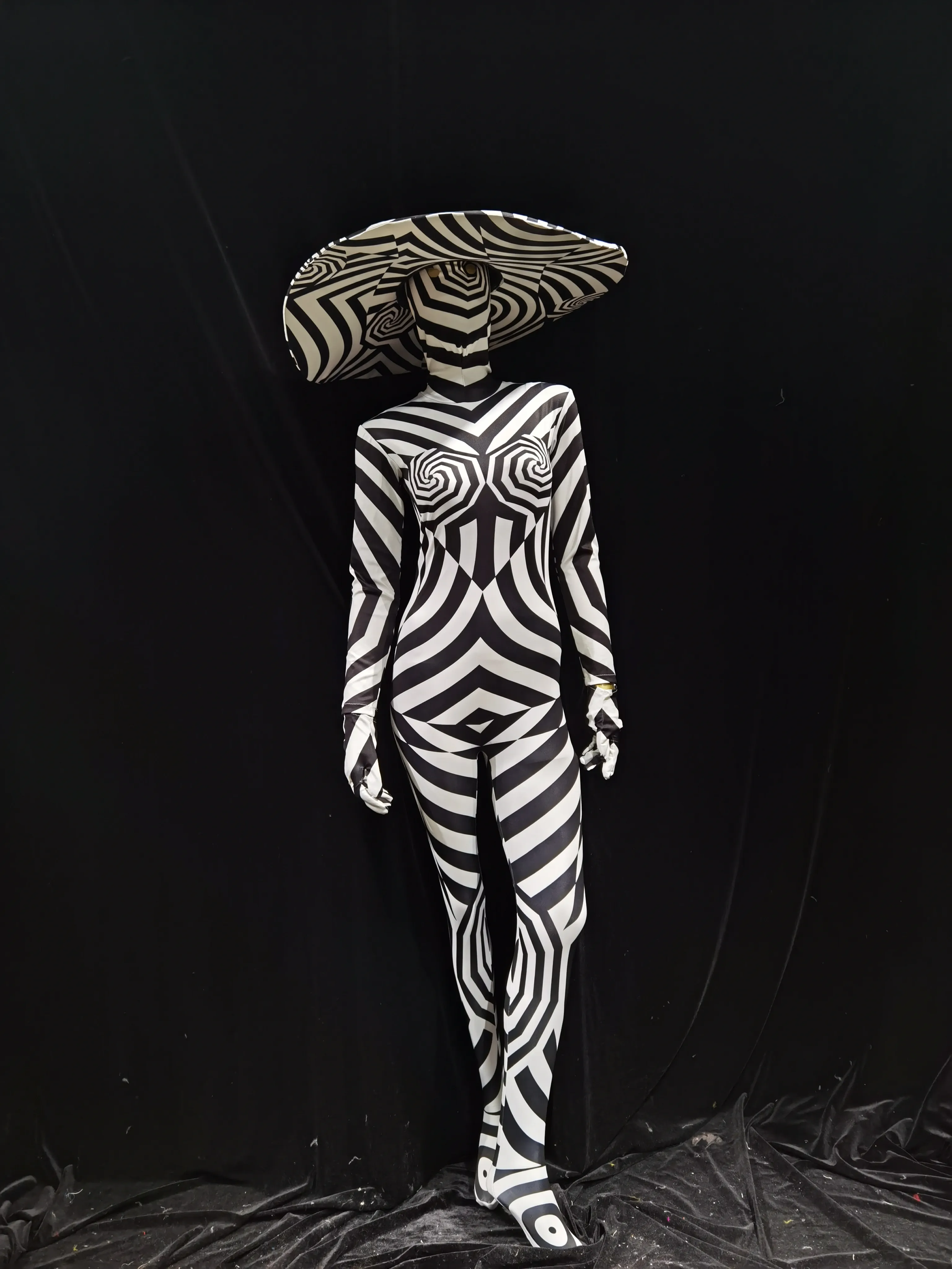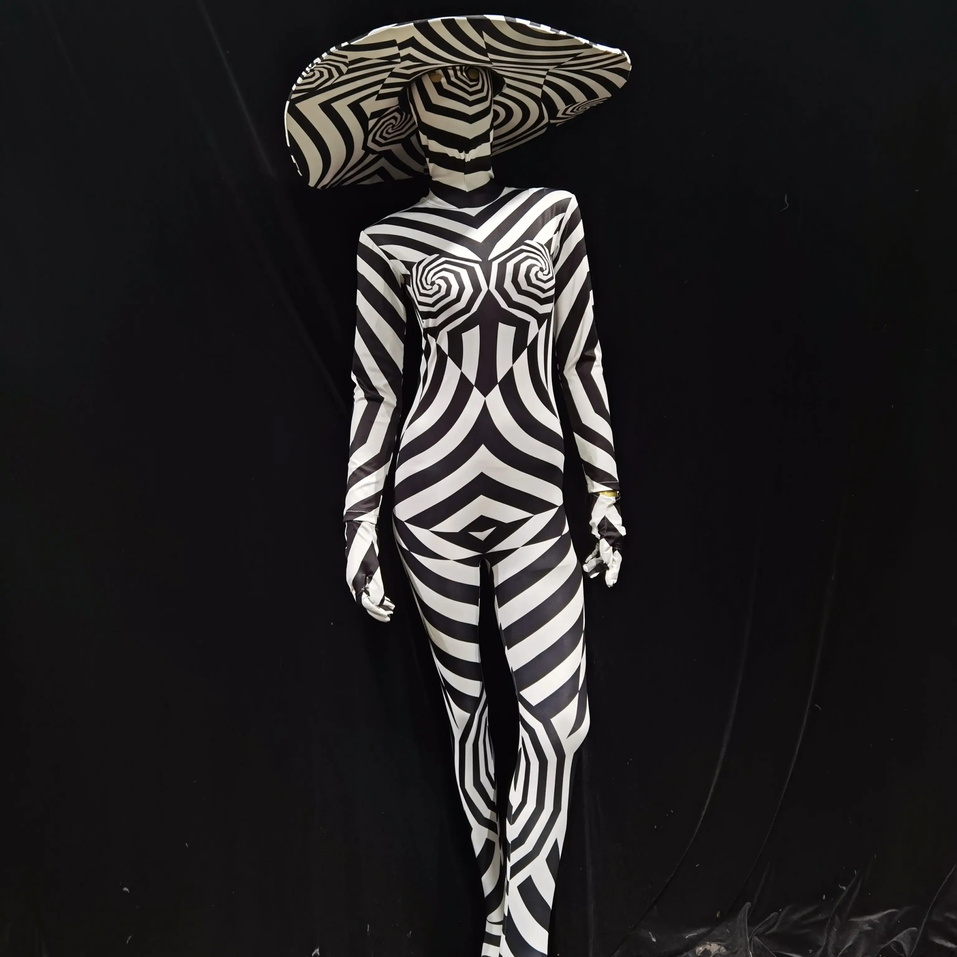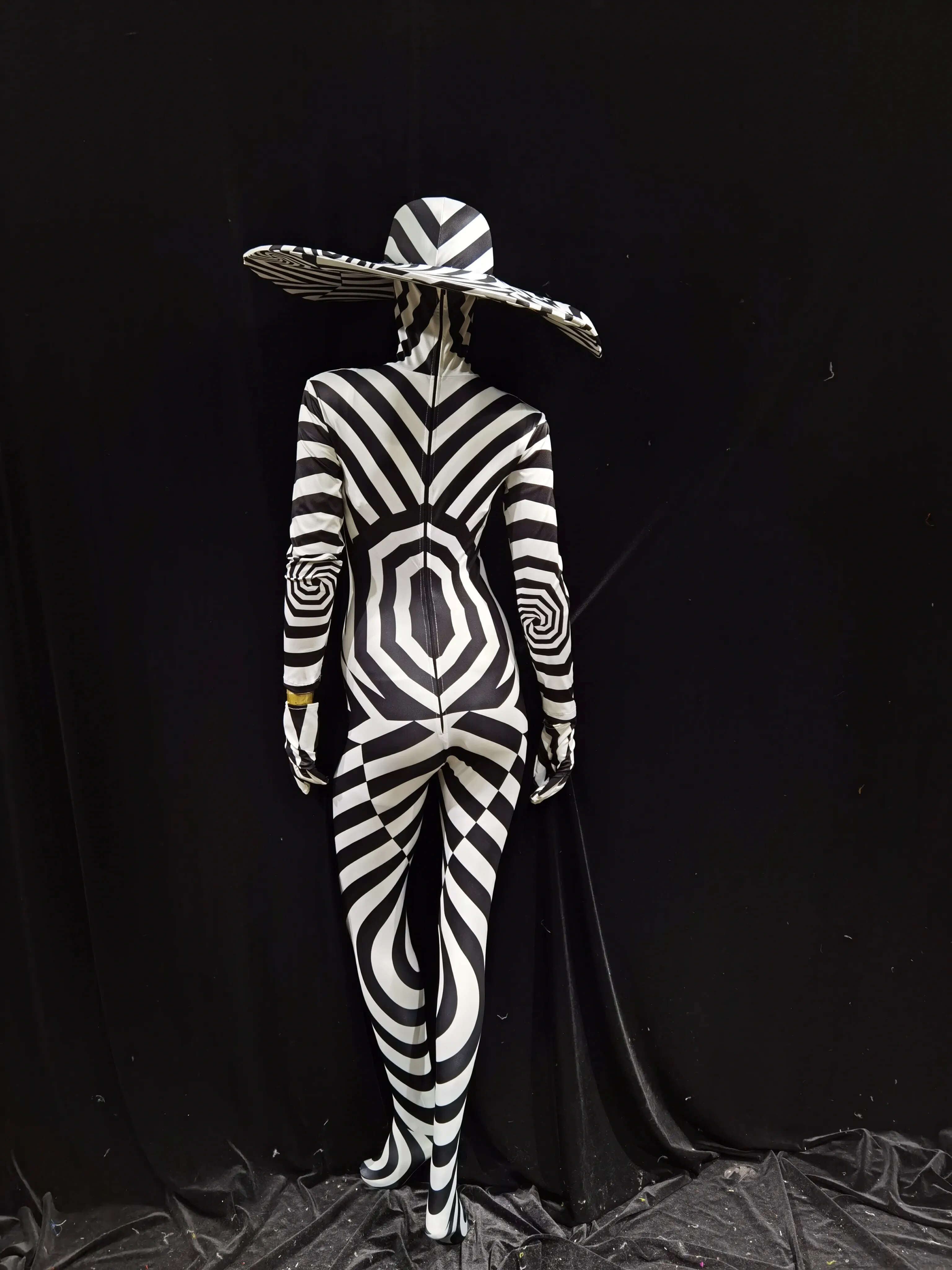 Halloween Bar Black and White Striped Zebra, Big Hat One Piece Pants Female Song and Dance Team Performance Dress