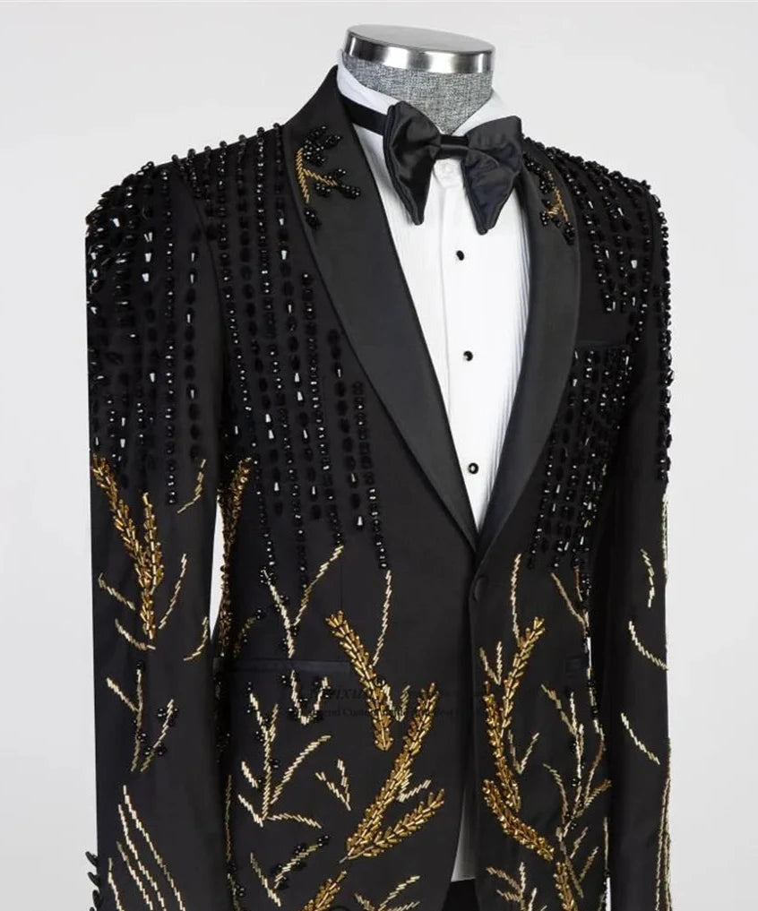 Handsome Metallic Beaded Tuxedos Suits for Men Wedding Prom Groom 2 Pieces ?Bridegroom Prom Blazers ?CustomizeMale Costume Homme