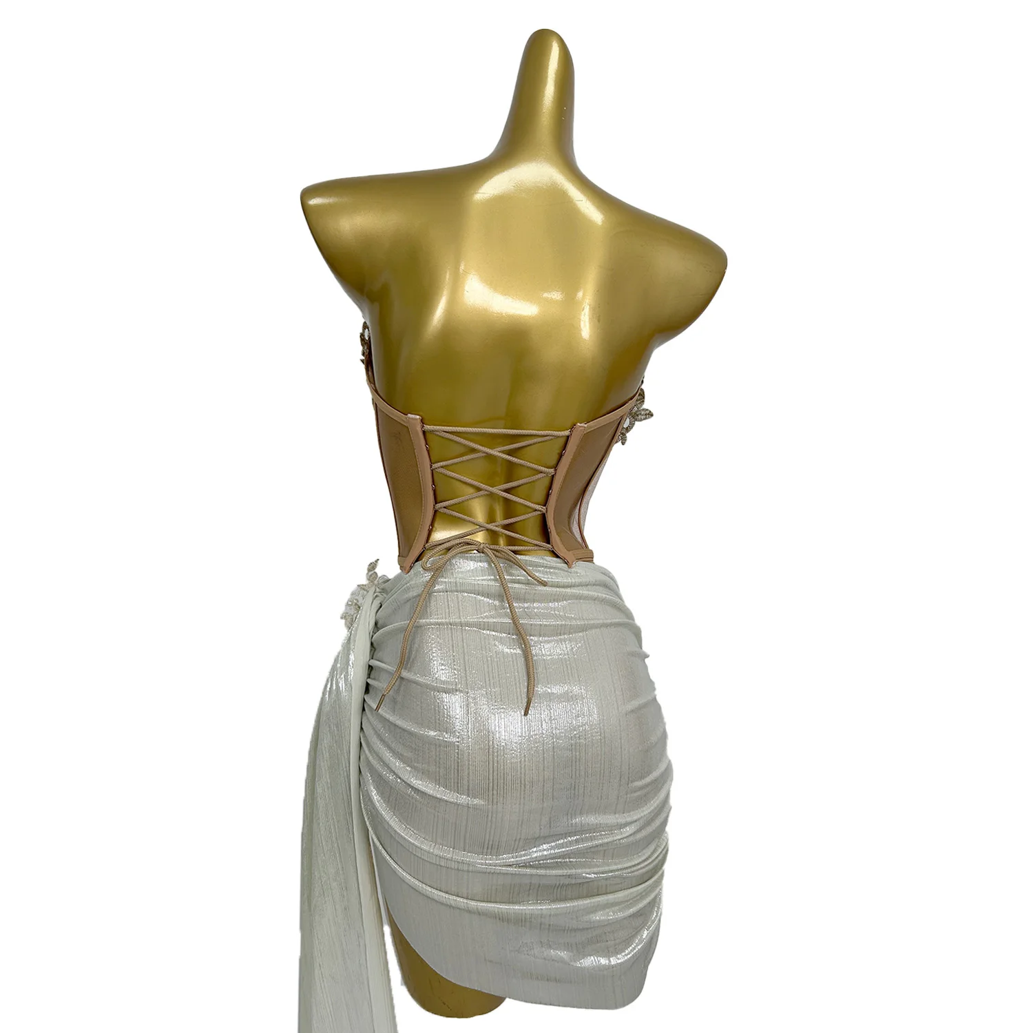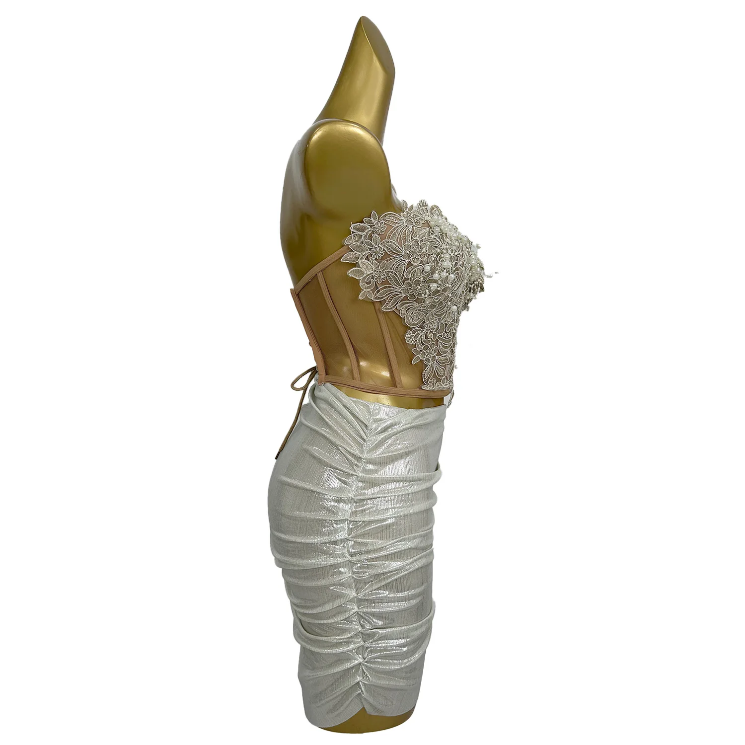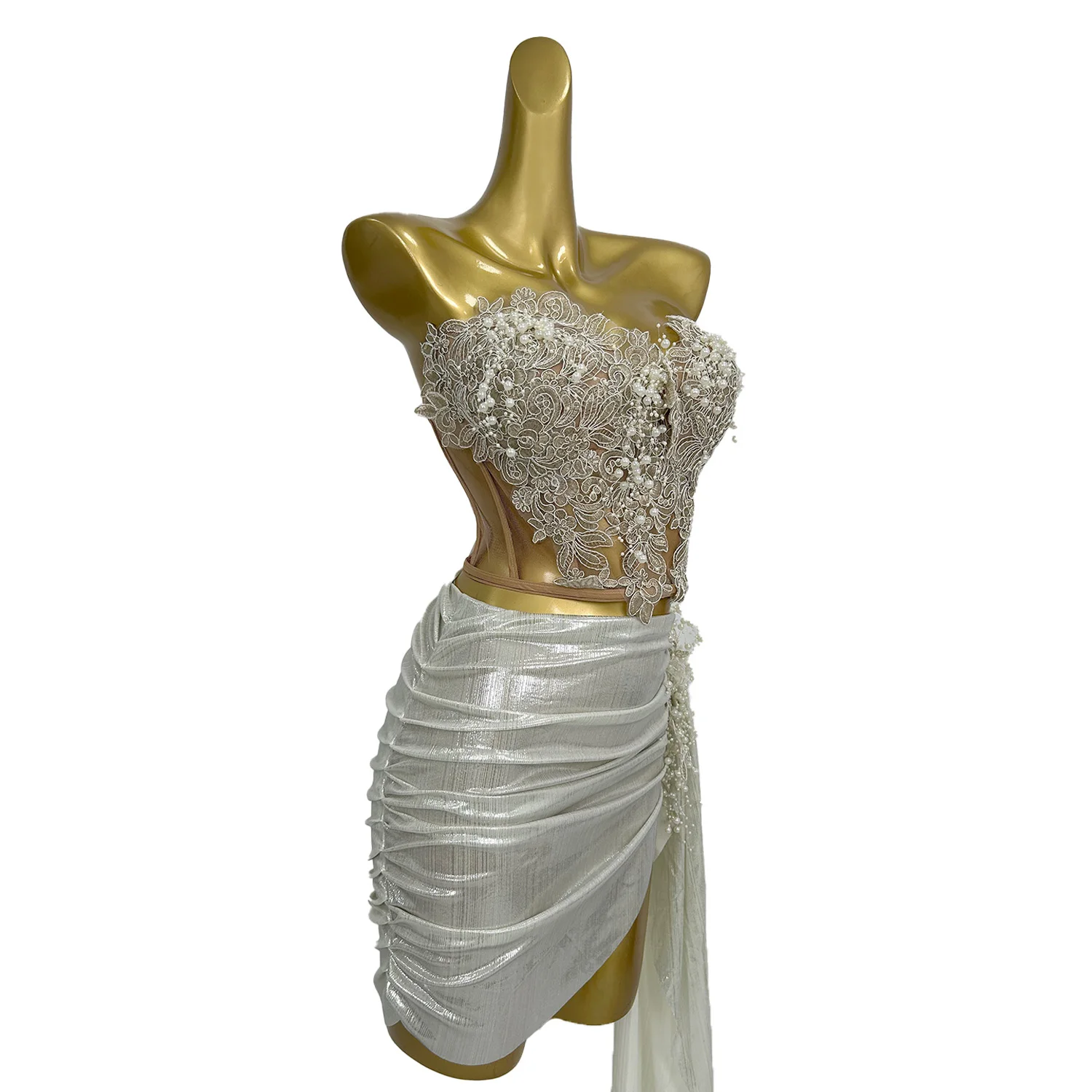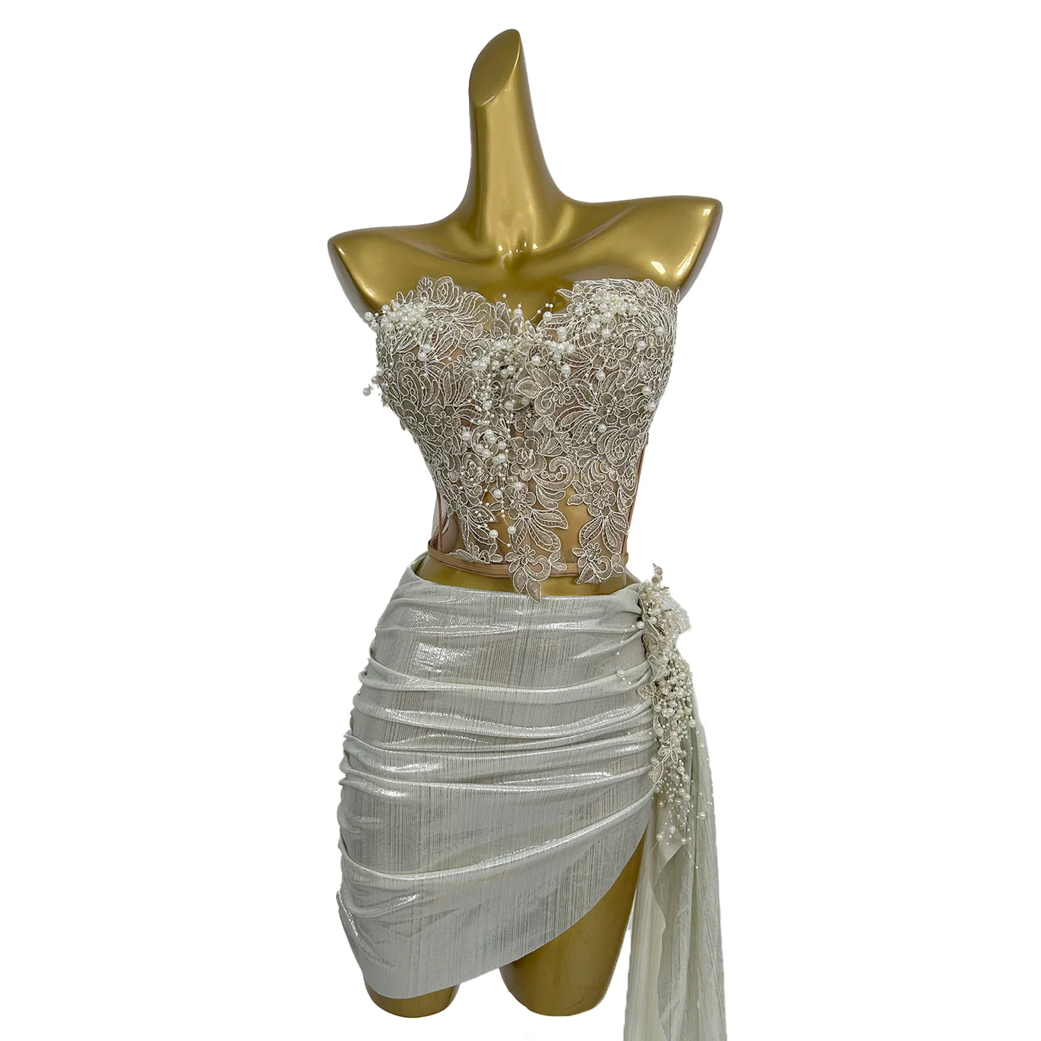 Heavy Embroidery Top Pleated Mini Skirt Wedding Banquet Bridesmaid Party Dress Tight Corset Hip Hugging Skirt 2PCS Set Huami