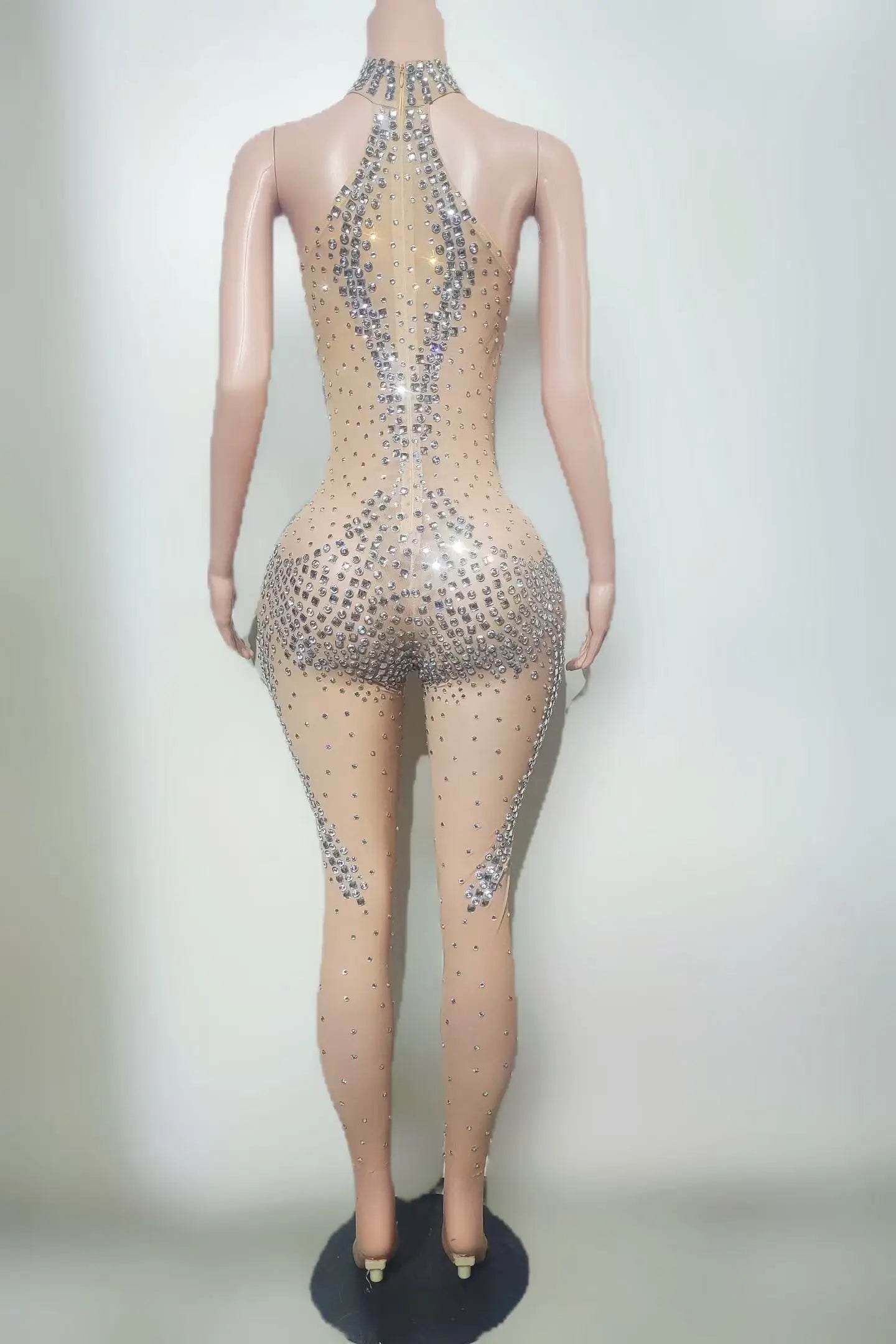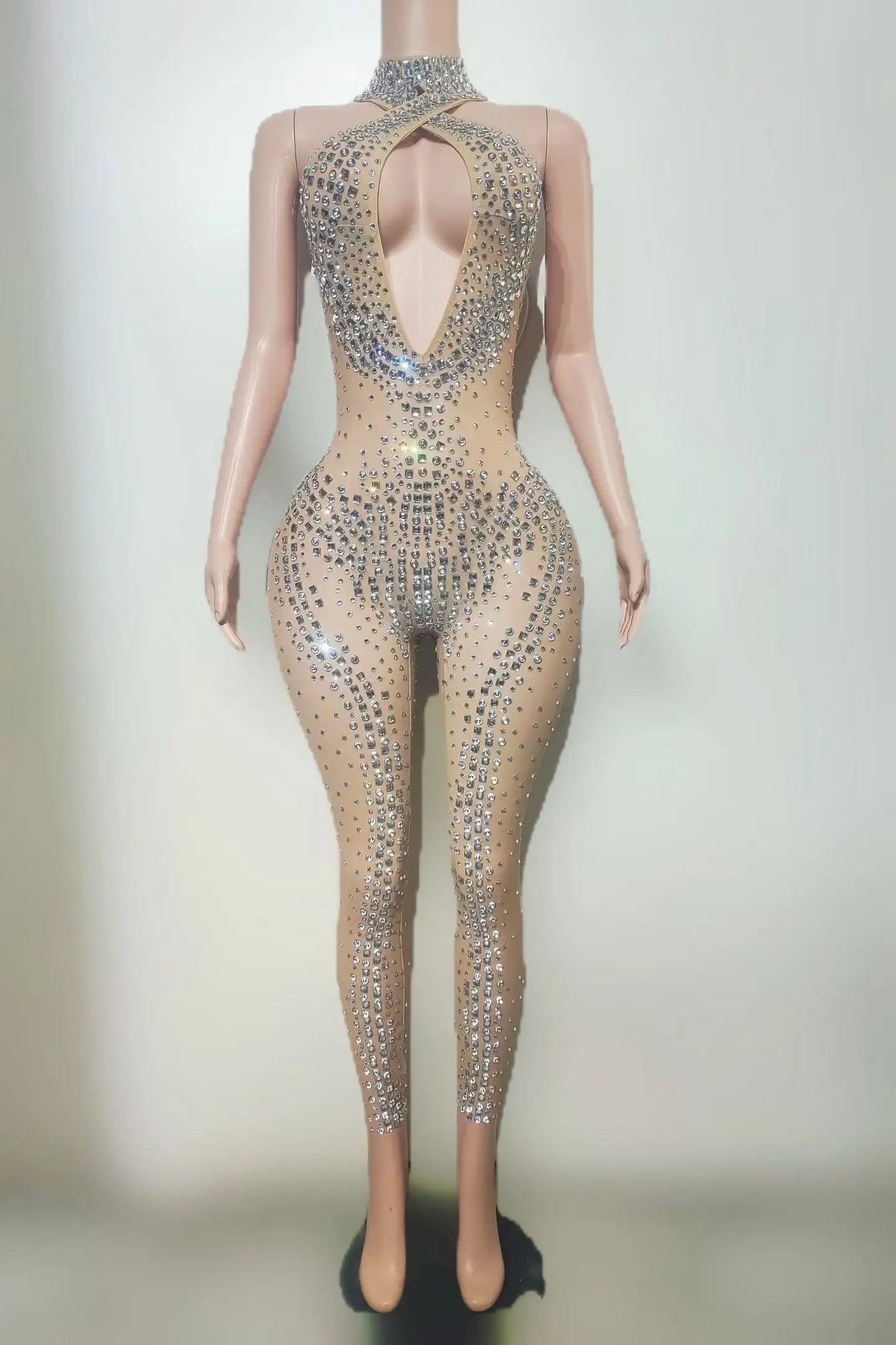 High-end Rhinestone Low-cut SparklyTight Fitting Jumpsuit Sexy Women Club Dance Show Party Wear Carnival Festival Outfit