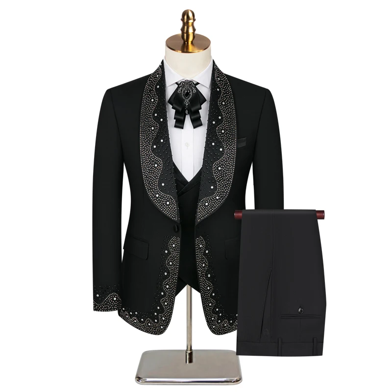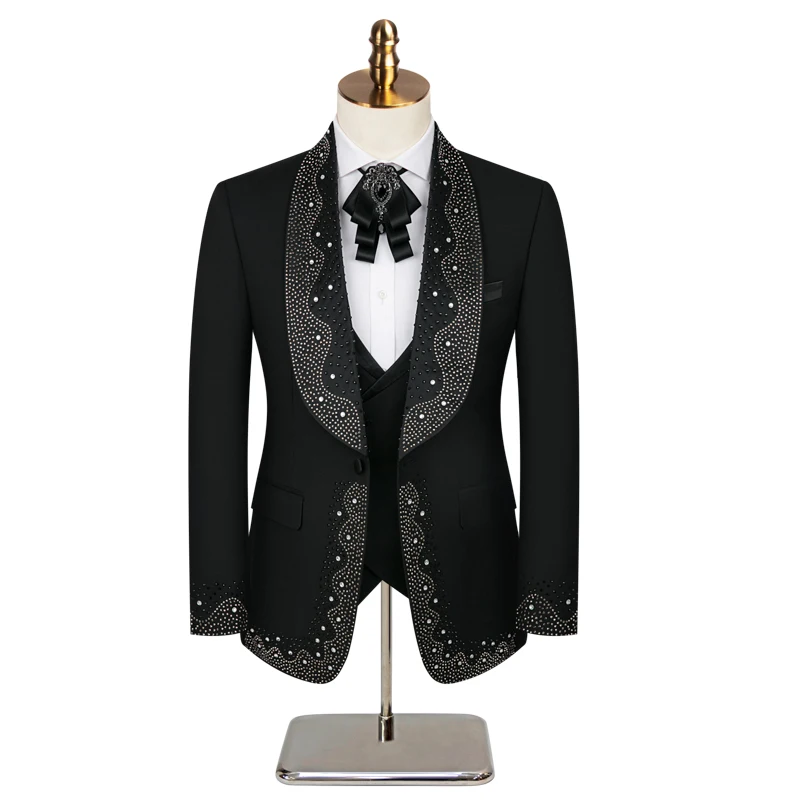 High-grade Light Luxury Mens Suits Set 3 Pieces, Wedding Host Banquet Performance Party Blazer Dress with Pants Vest