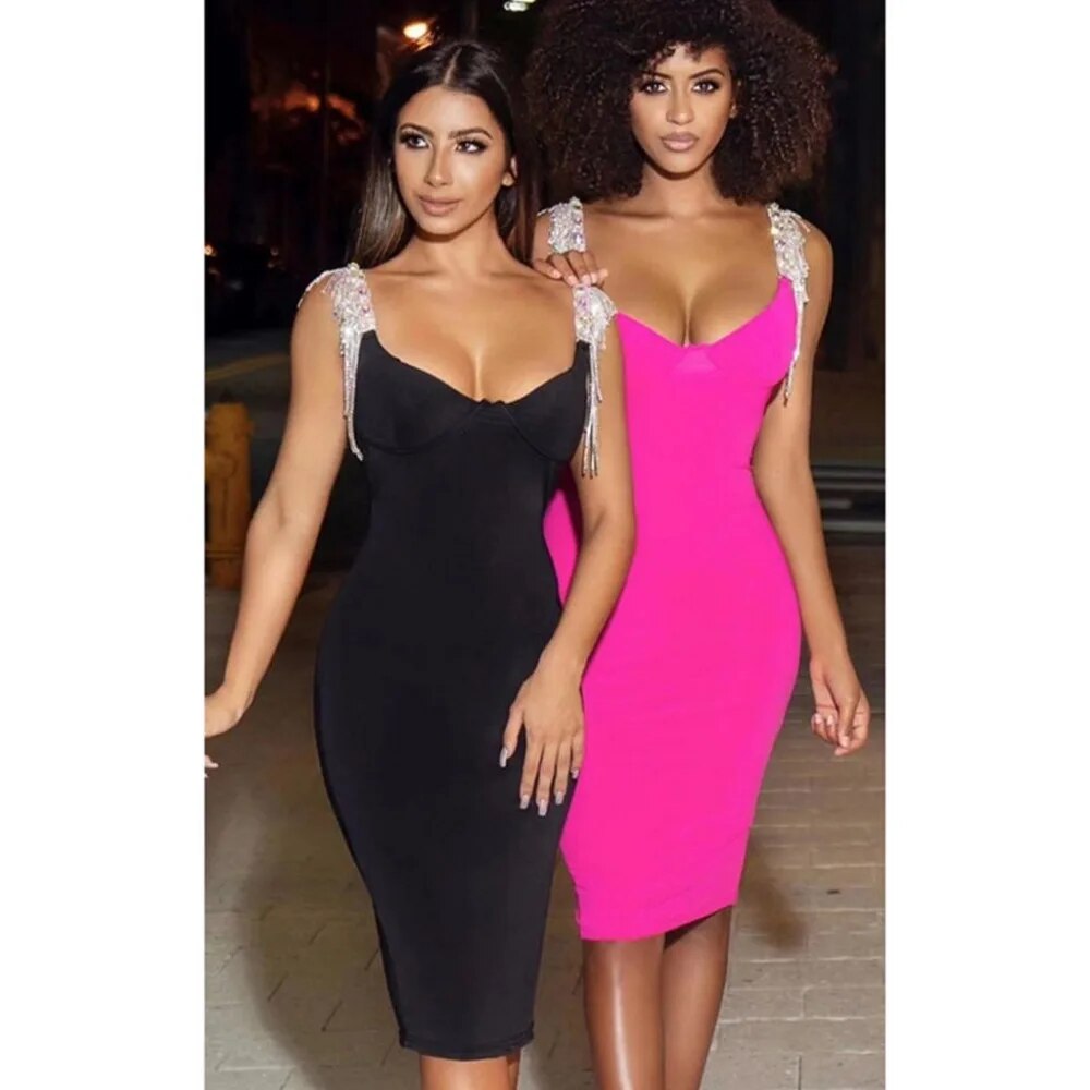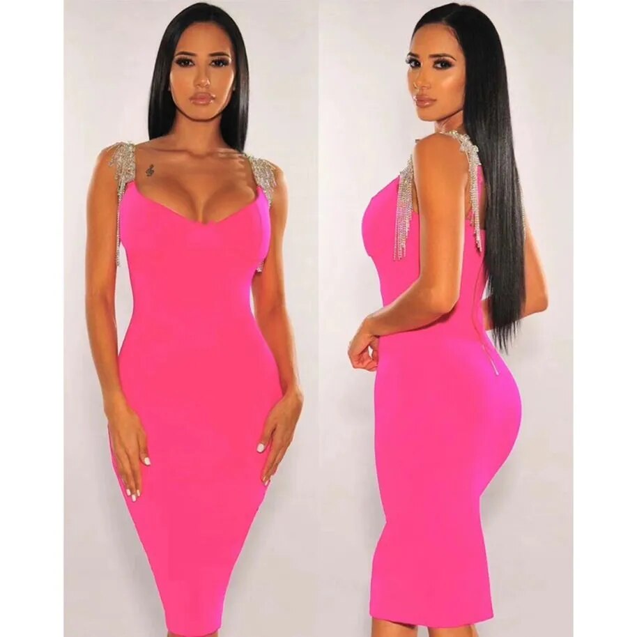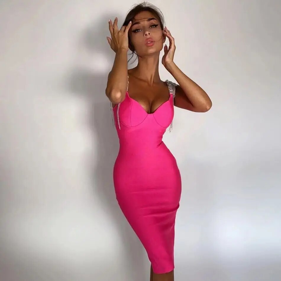 Sexy Women Rayon Bandage Dress Elegant Homecoming Crystal Strap Evening Party Dress