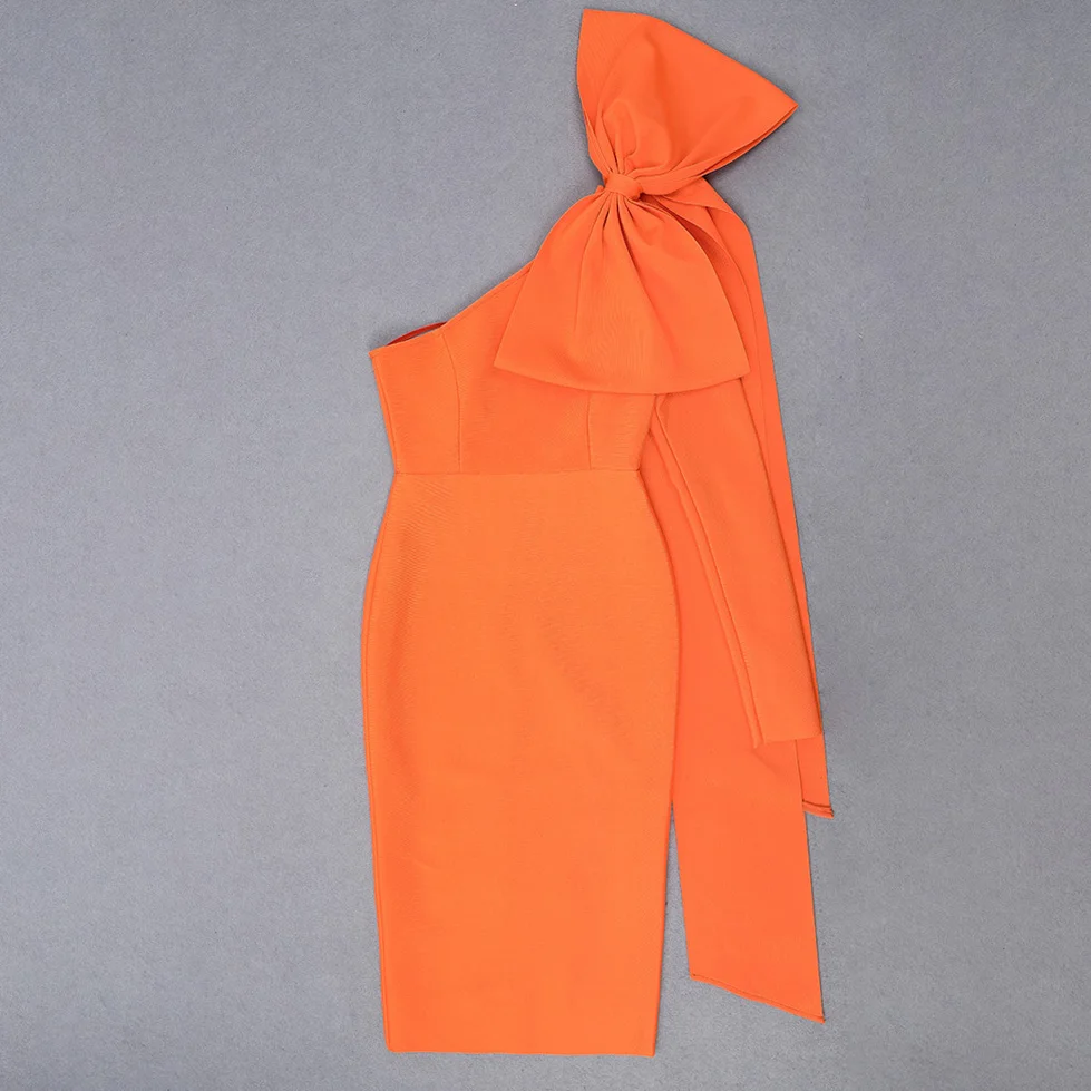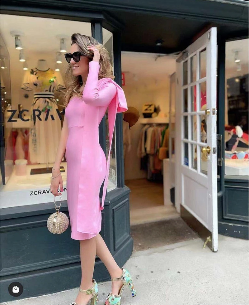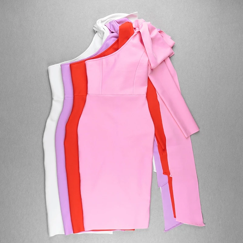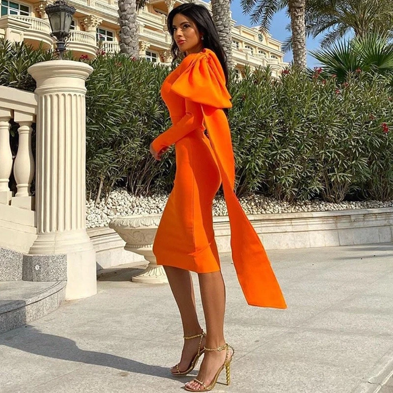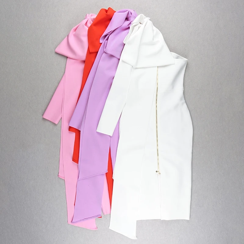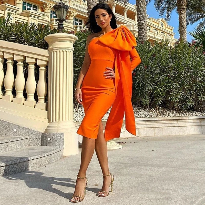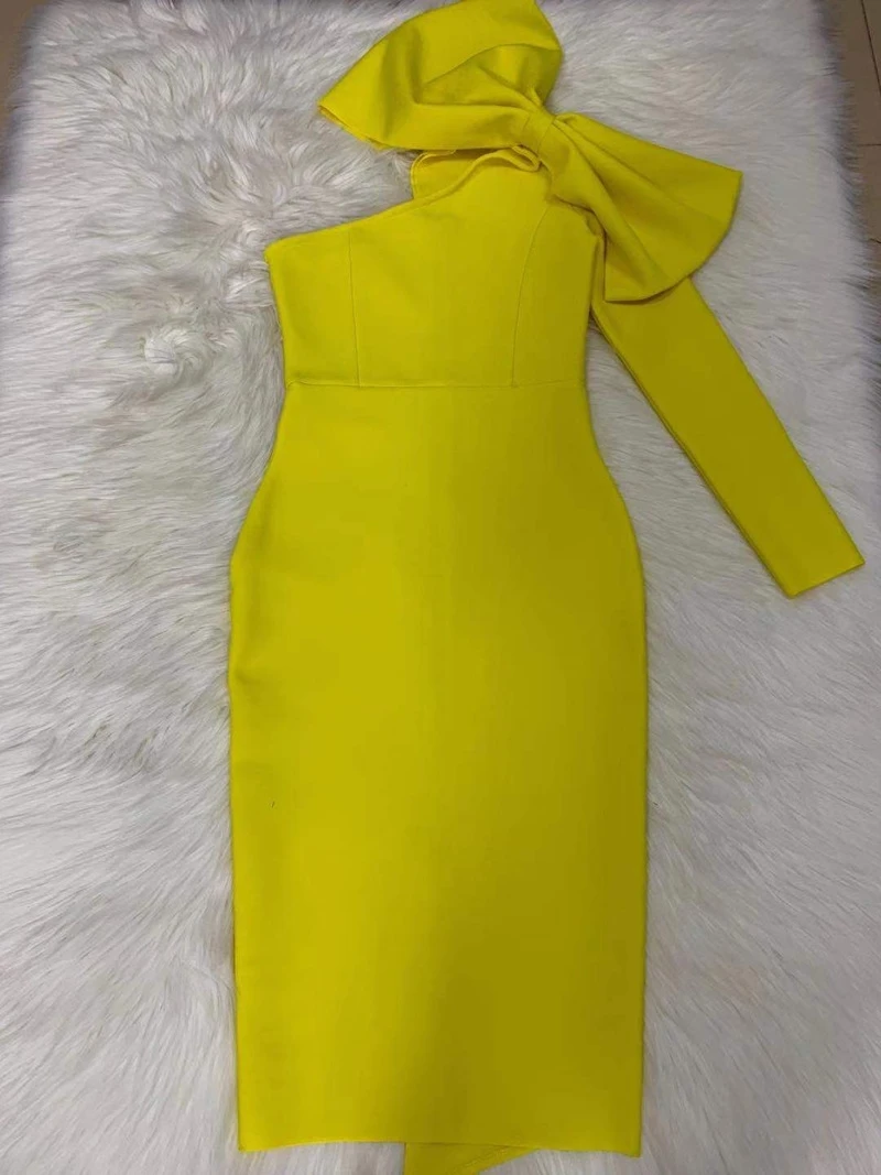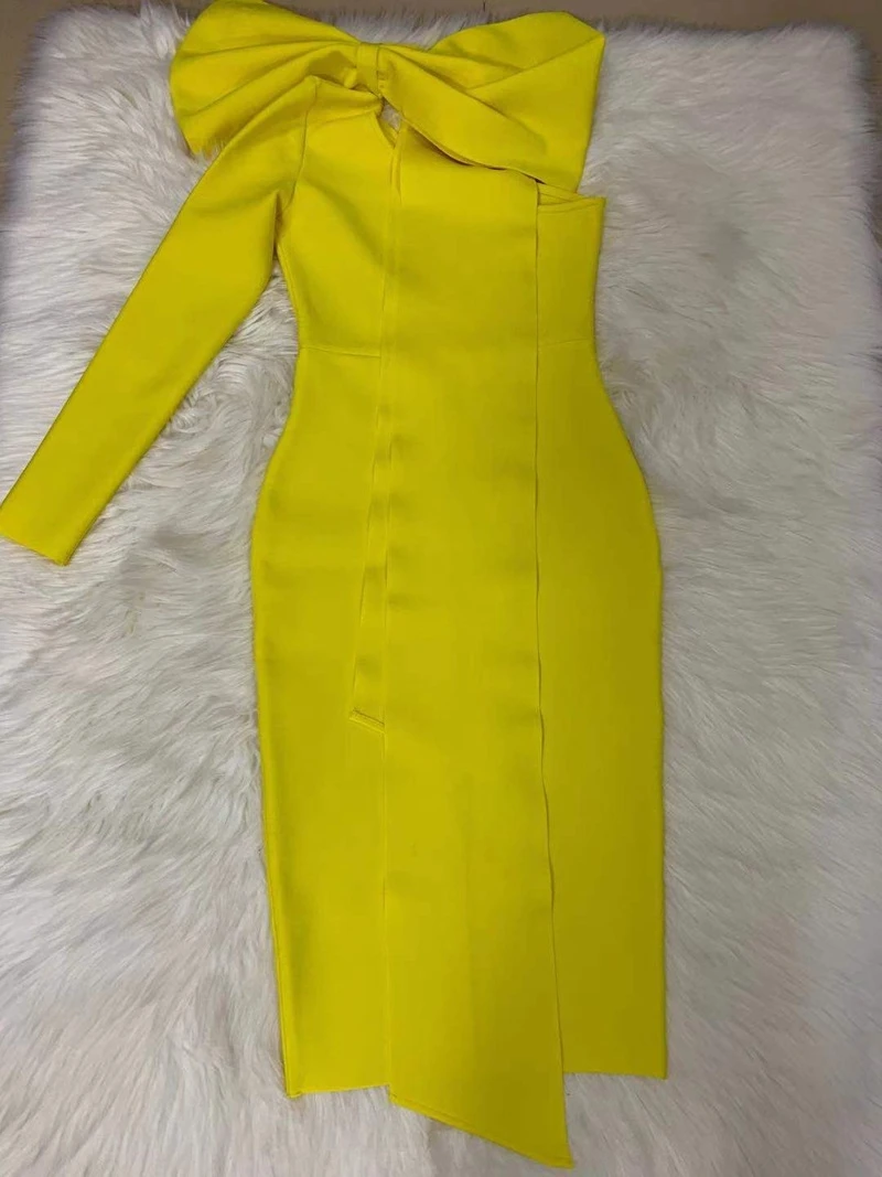 Yellow Blue Orange Runway Bownot One Long Sleeve Rayon Bandage Dress Cocktail Party Bodycon Dress Vestidos