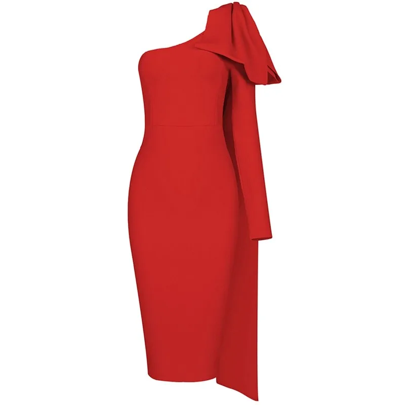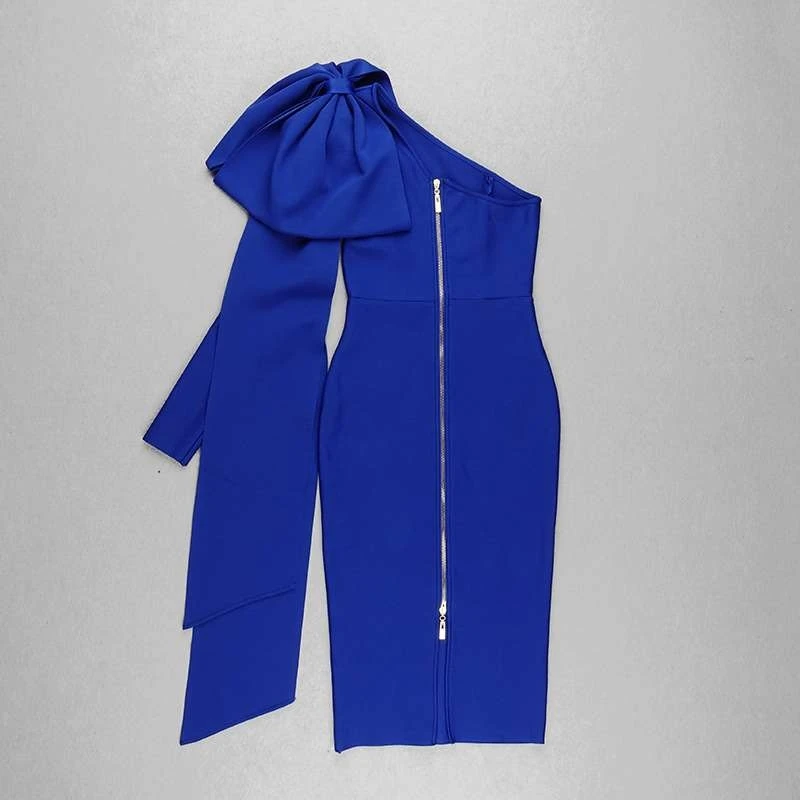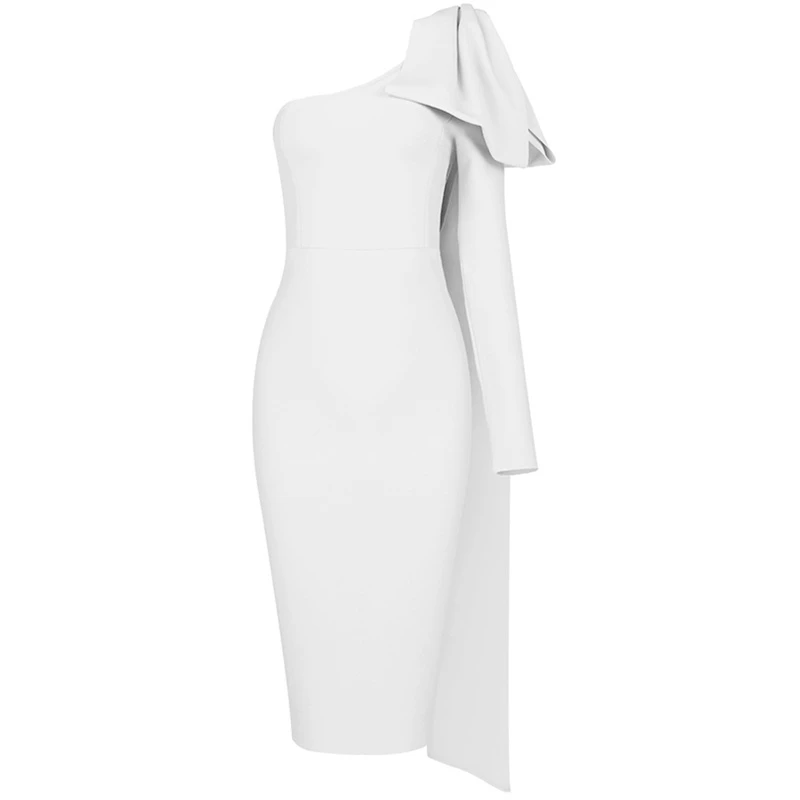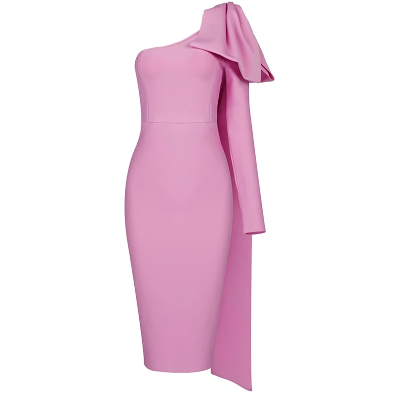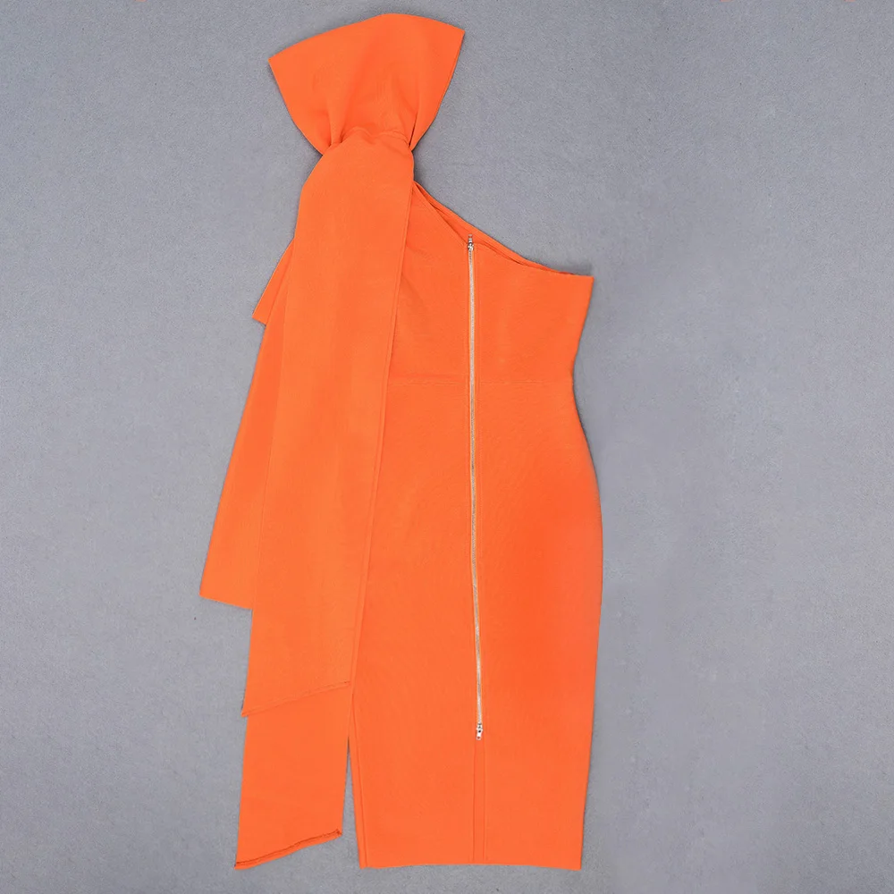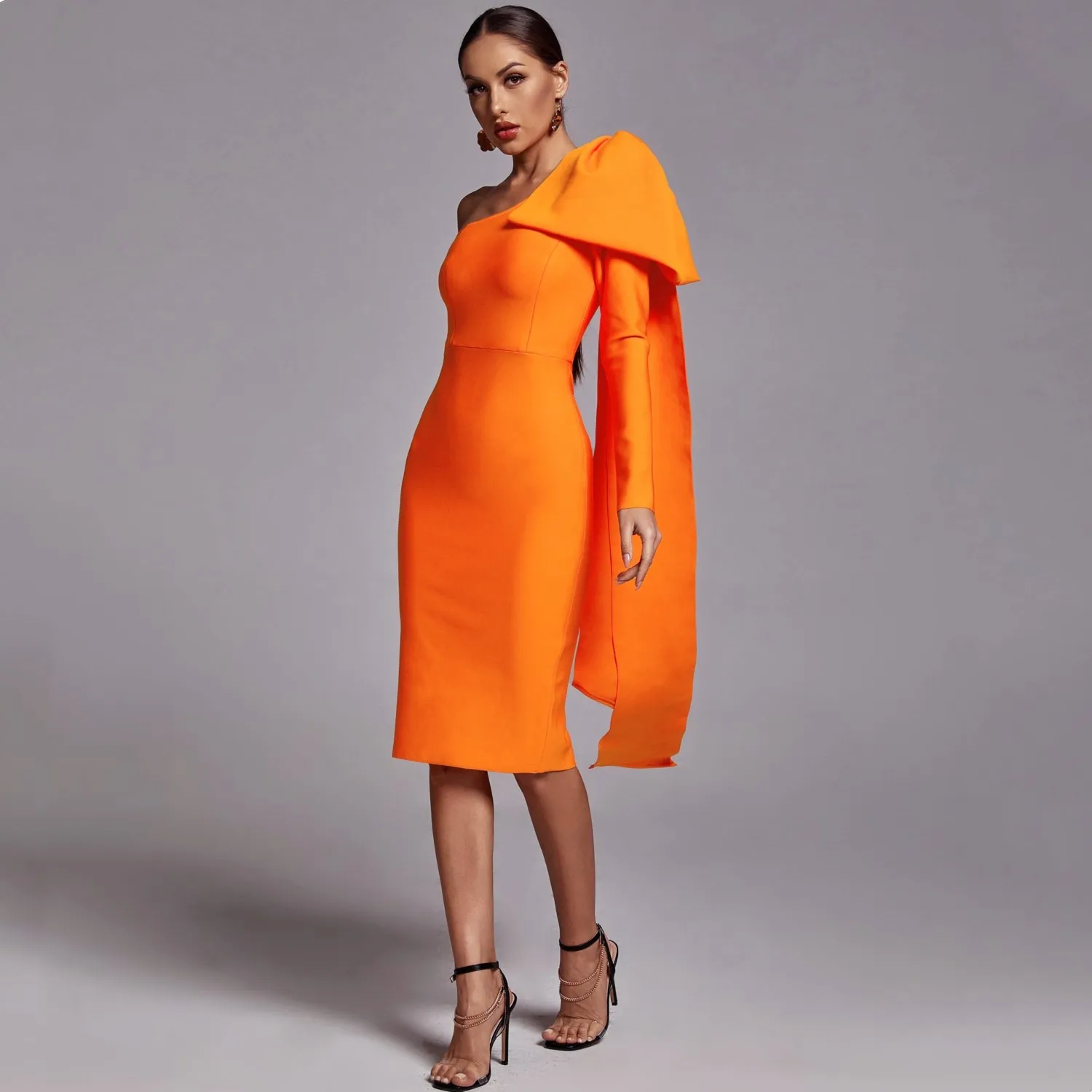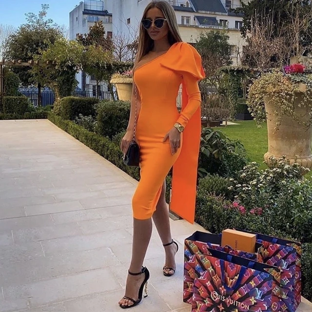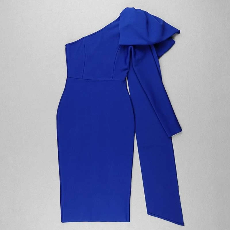 Yellow Blue Orange Runway Bownot One Long Sleeve Rayon Bandage Dress Cocktail Party Bodycon Dress Vestidos