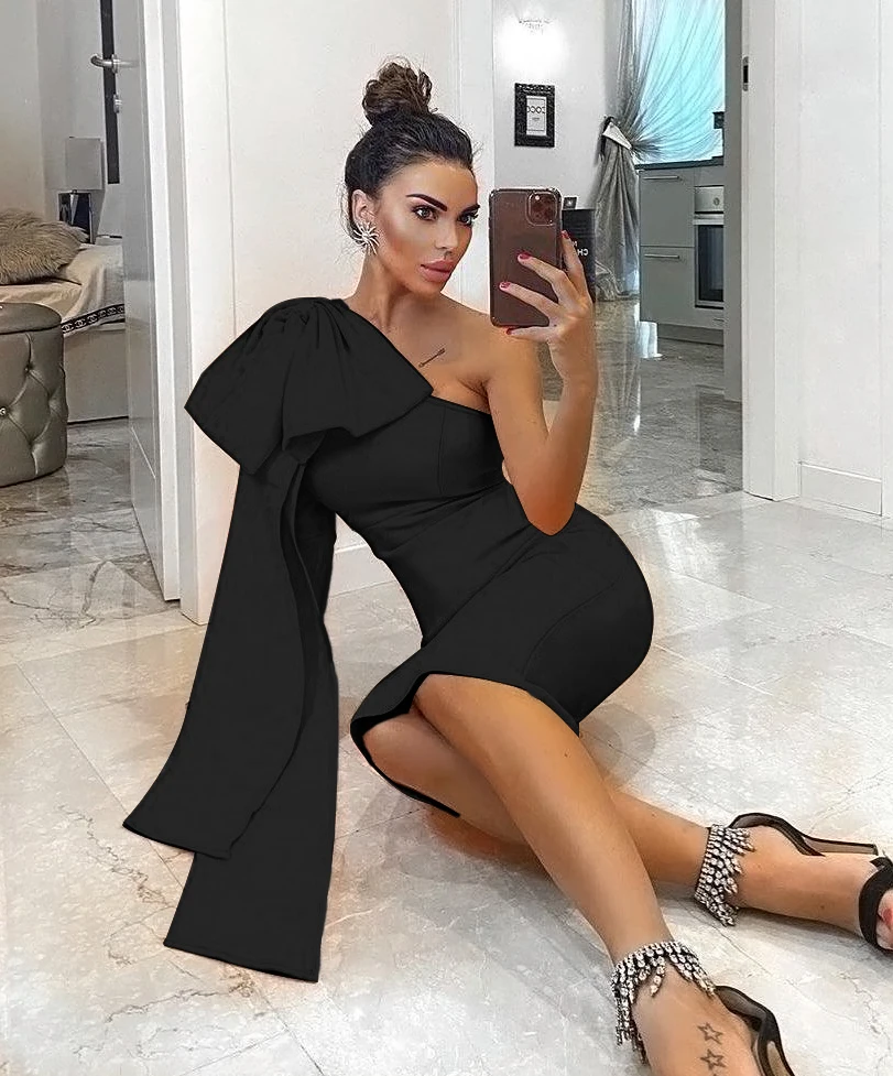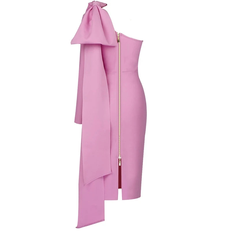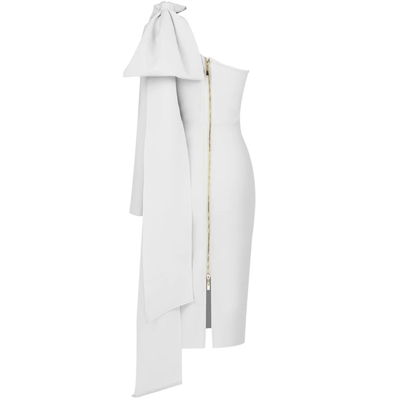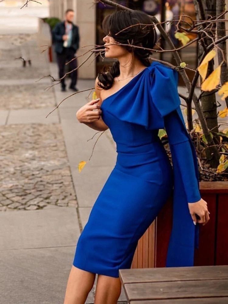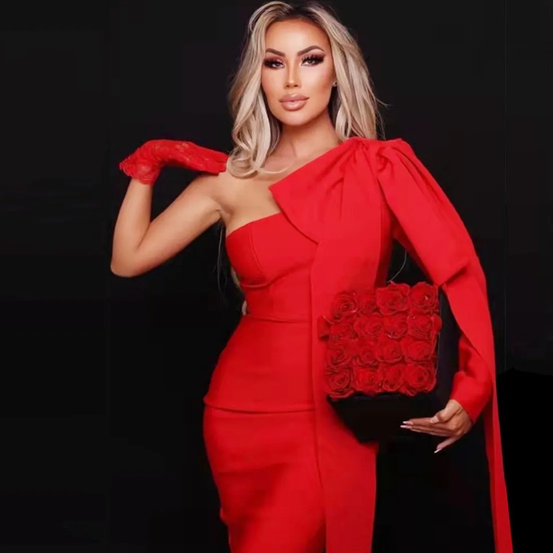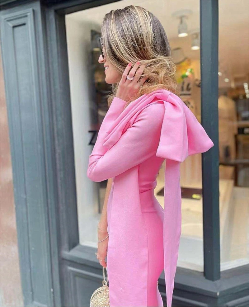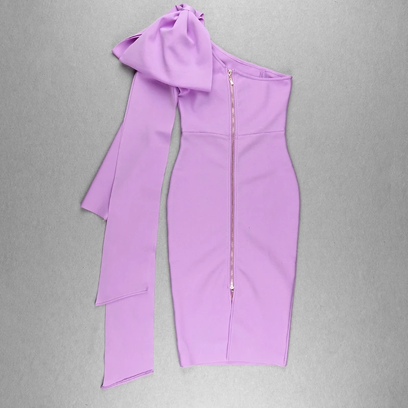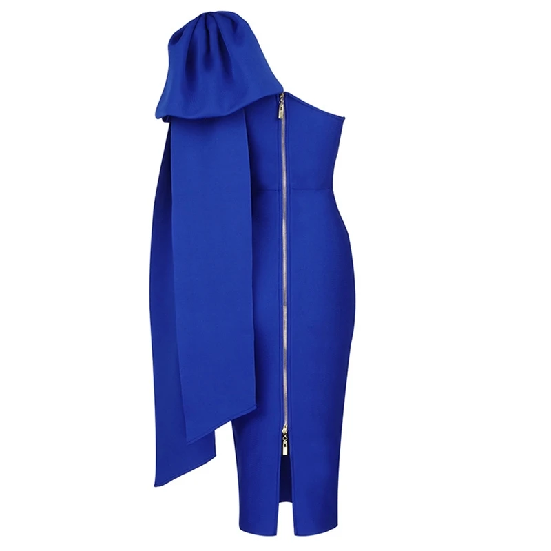 Yellow Blue Orange Runway Bownot One Long Sleeve Rayon Bandage Dress Cocktail Party Bodycon Dress Vestidos