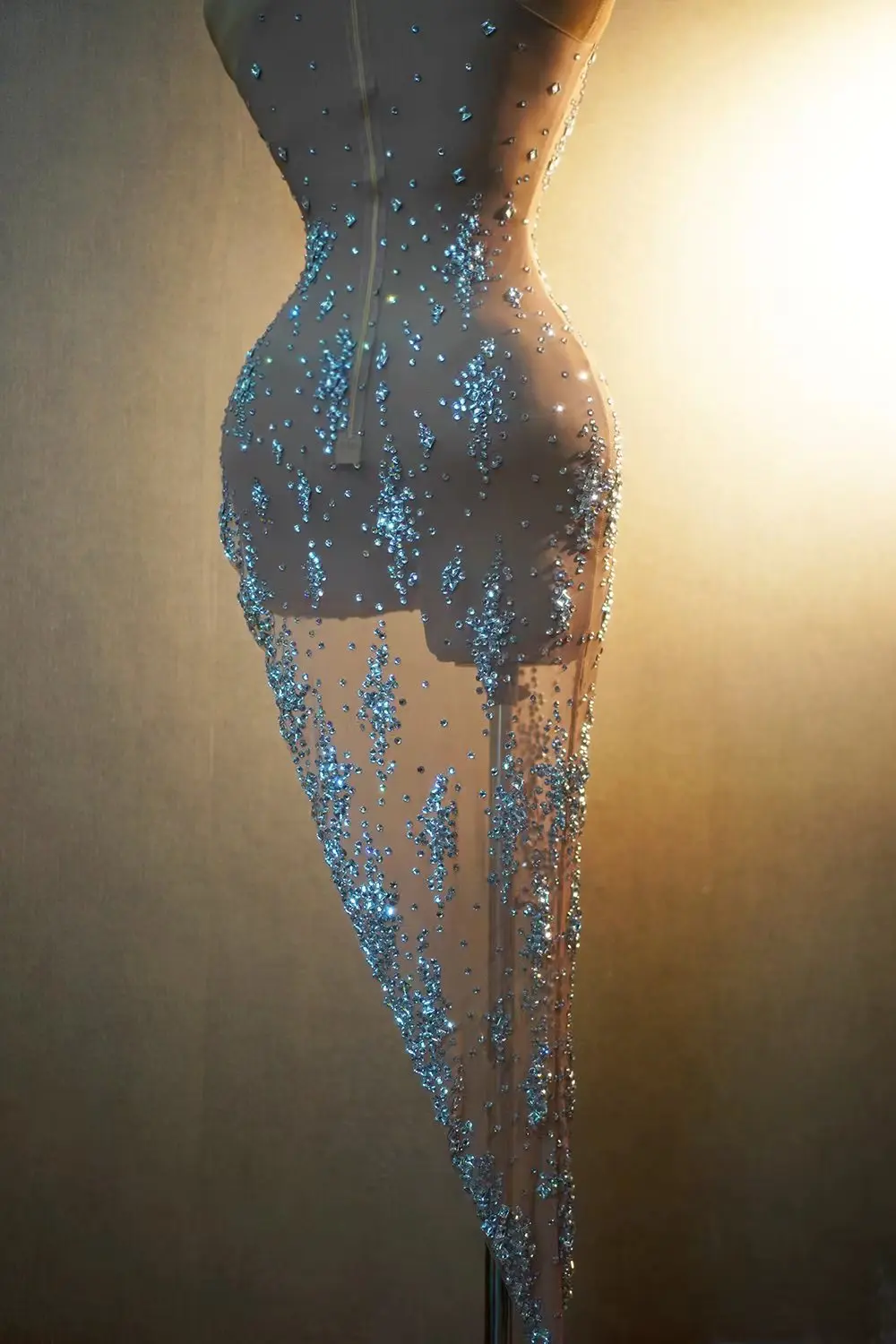 High Split Asymmetrical Dress for Women Sparkly Rhinestones Evening Celebrate Wedding Birthday Dress Photo Shoot Costume Xinghe
