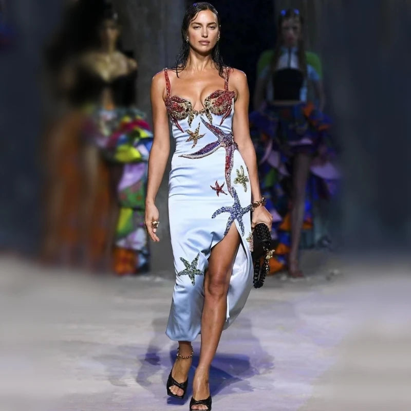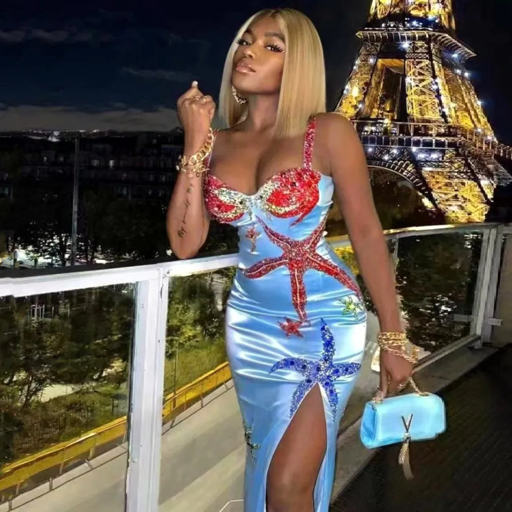 Blue Color Ladies Strap Sexy Bodycon Long Dress Elegant Evening Party Dress Celebrate Fashion Girls' Birthday Dress