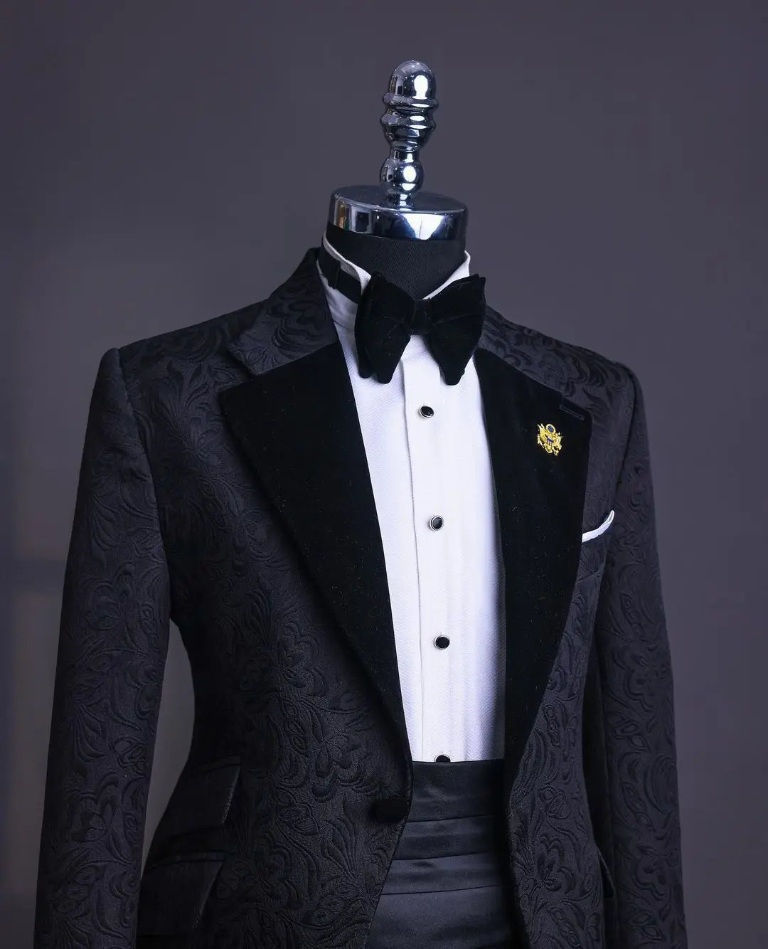 ??Elevate your formal attire with this jacquard 2-piece men's suit, featuring a blazer and pants. The one-button design adds a modern touch, while the velvet peaked lapel exudes sophistication. Perfect for proms, weddings, work wear, and as a groom's attire, this suit is available in plus sizes for a tailored fit.