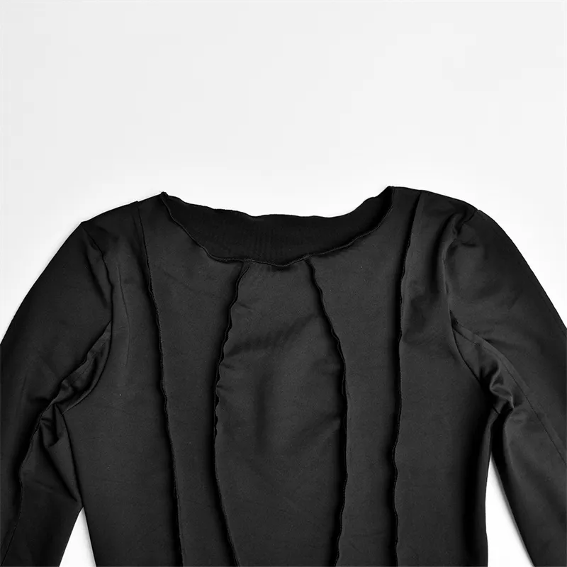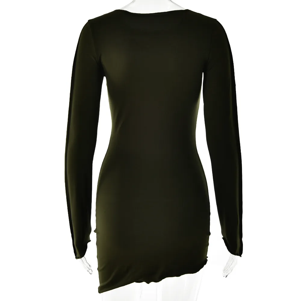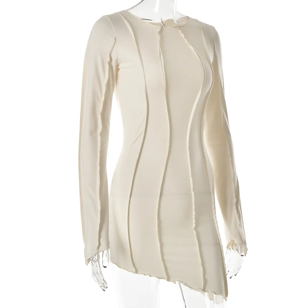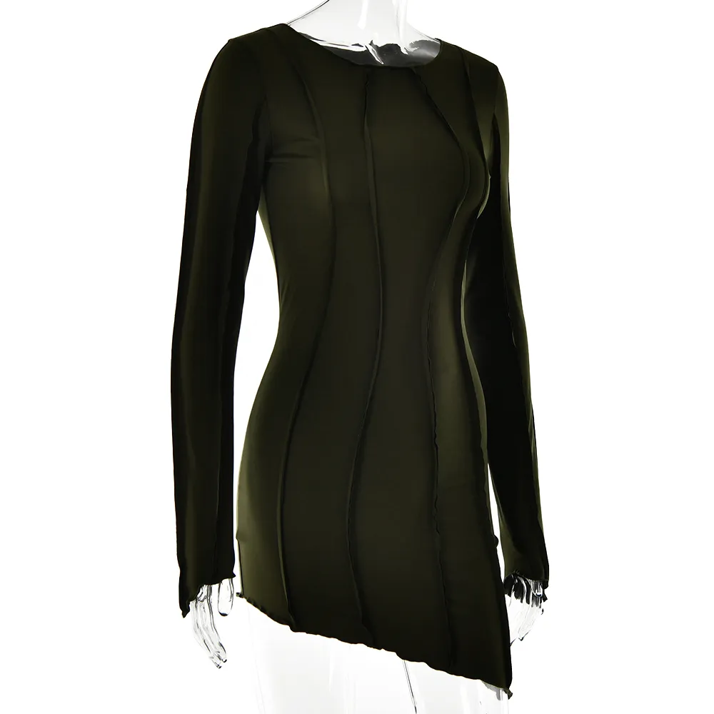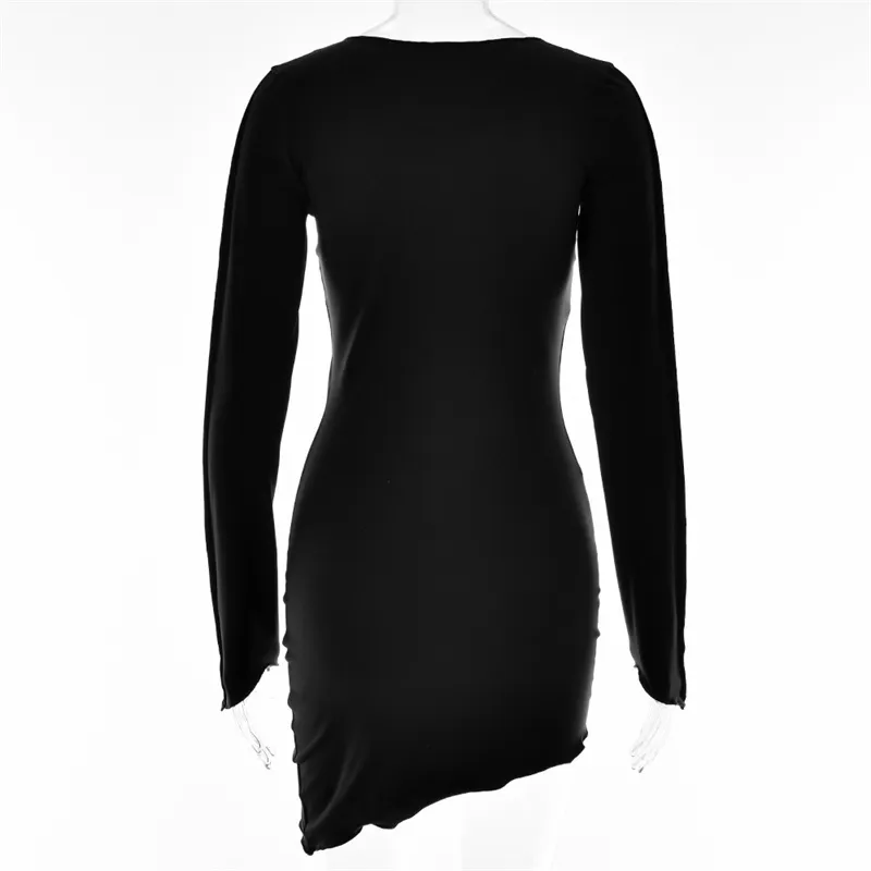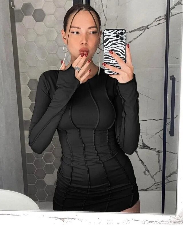 Sexy Solid Patchwork O Neck Mini Dress Women Autumn Bodycon Long Sleeve Slim Fit Elegant Party Club Vestido