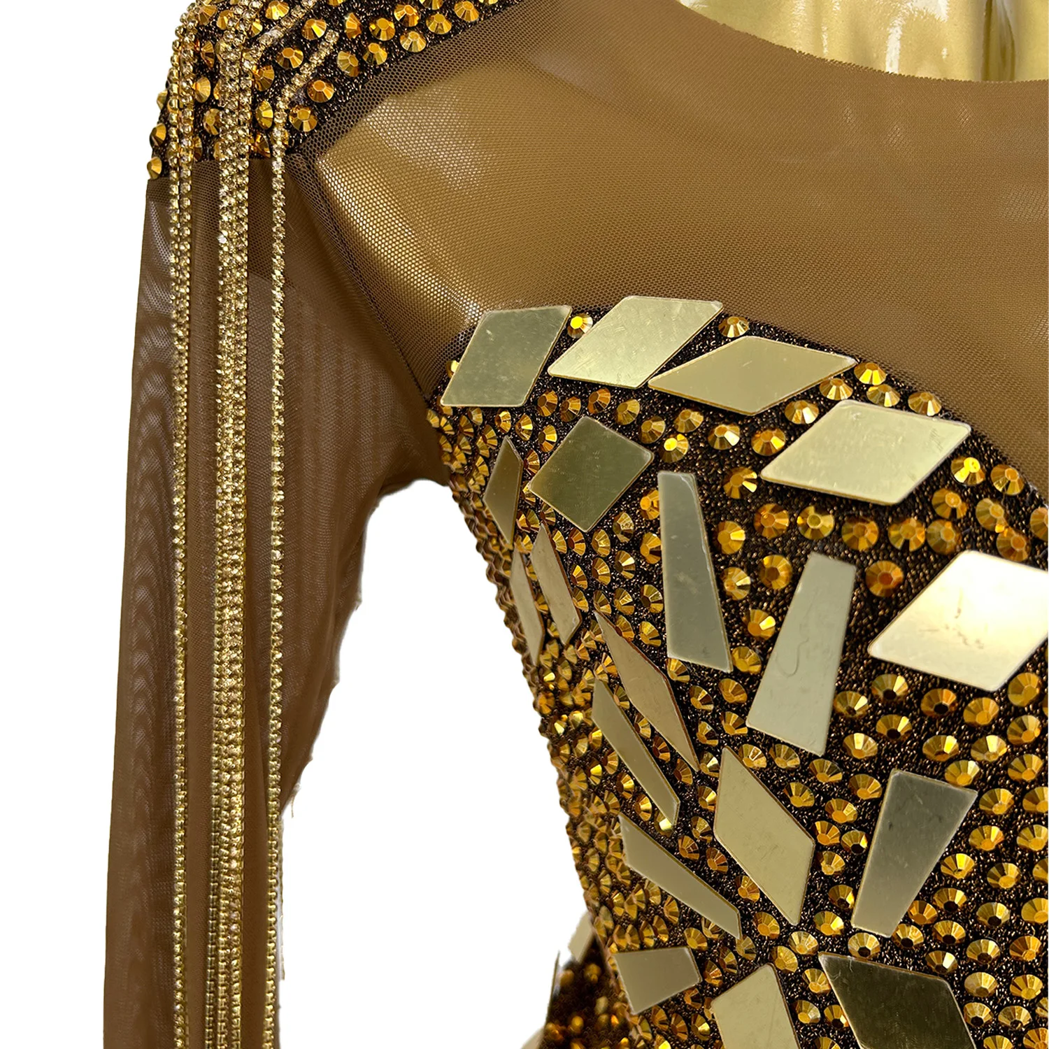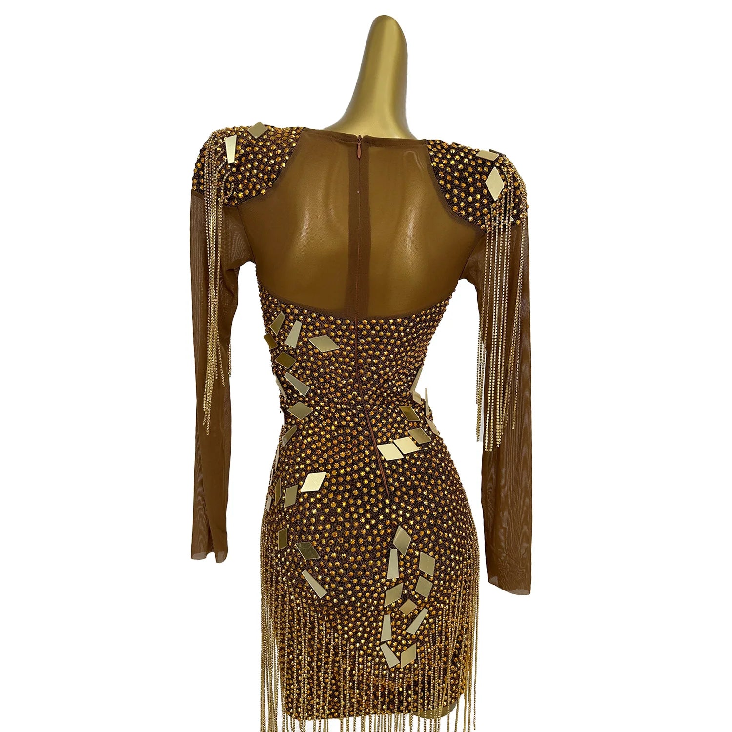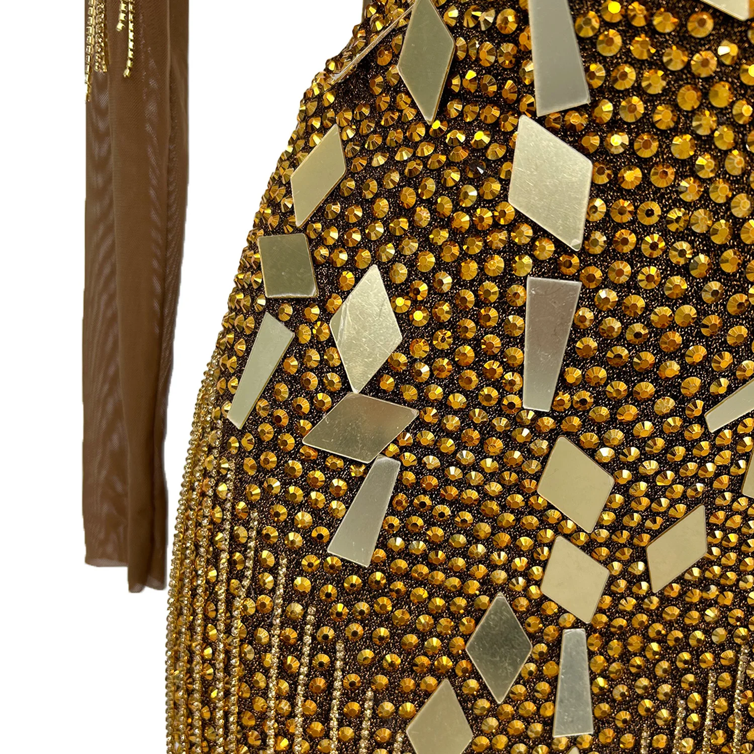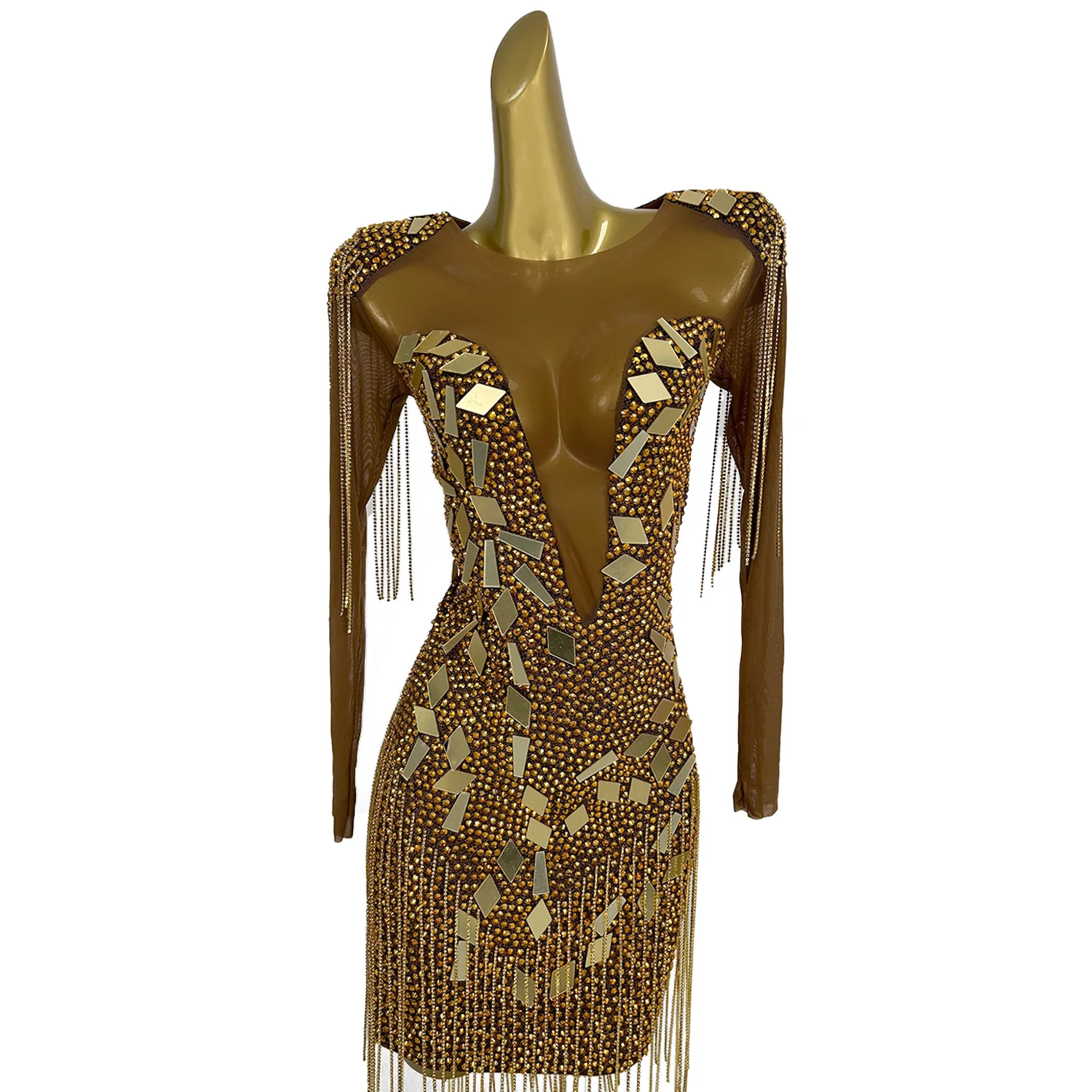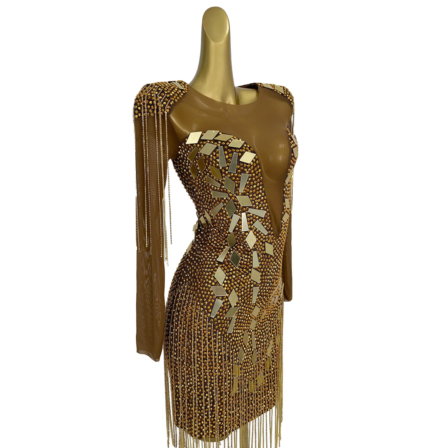 Ladies' Diamonds Long Sleeved Dress Geometric Lenses Willow Nail Wrapped Hip Skirt Shoulder Pads Crystal Tassel Dress Yintai