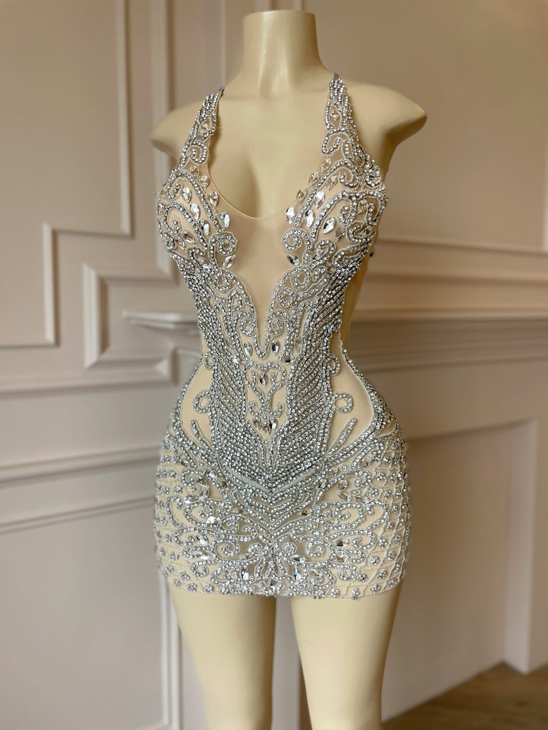 Featuring a feather detail that slowly captivates the crowd, this rhinestone-encrusted piece will bring you a newfound confidence you never thought you had. Custom-made for your pleasure, here’s a dress crafted from a solid stretch material for added comfort, paired with a zipper closure for a convenient design.