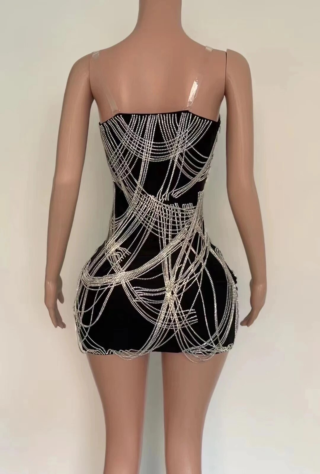 Summer Women Sexy StraplessCrvstalDiamonds Chain Black Midi BodyconBandage Dress Evening Club Party Dress