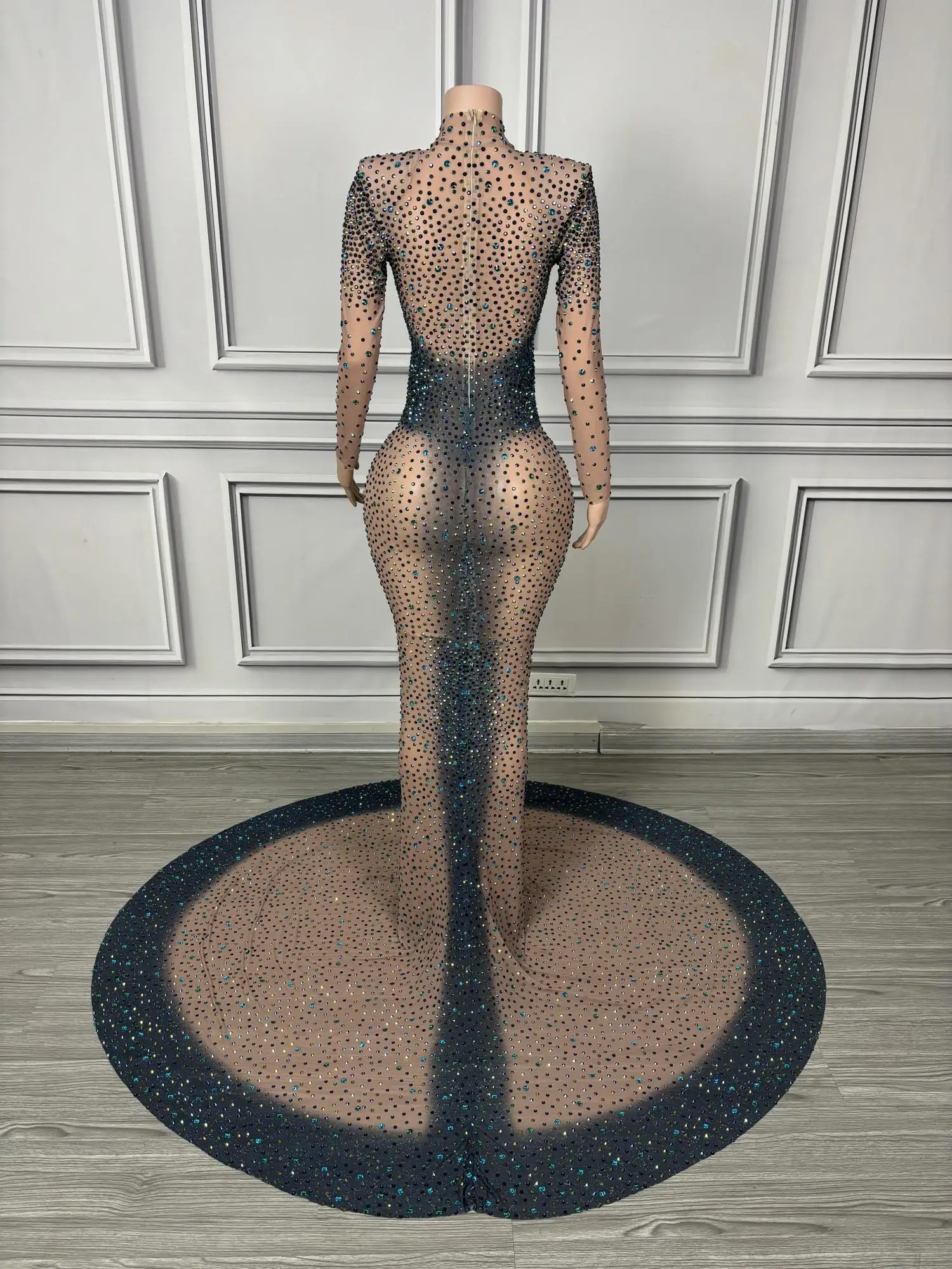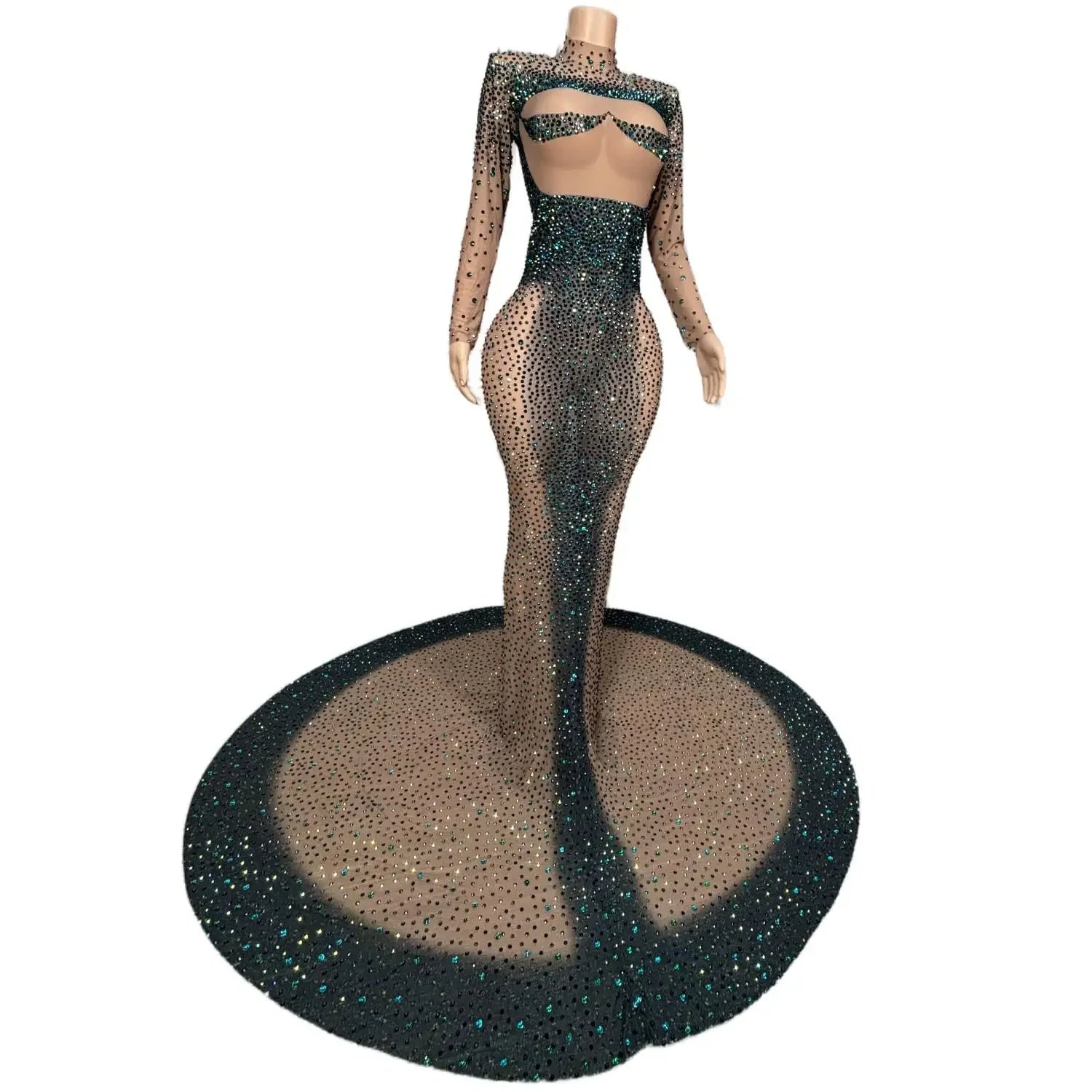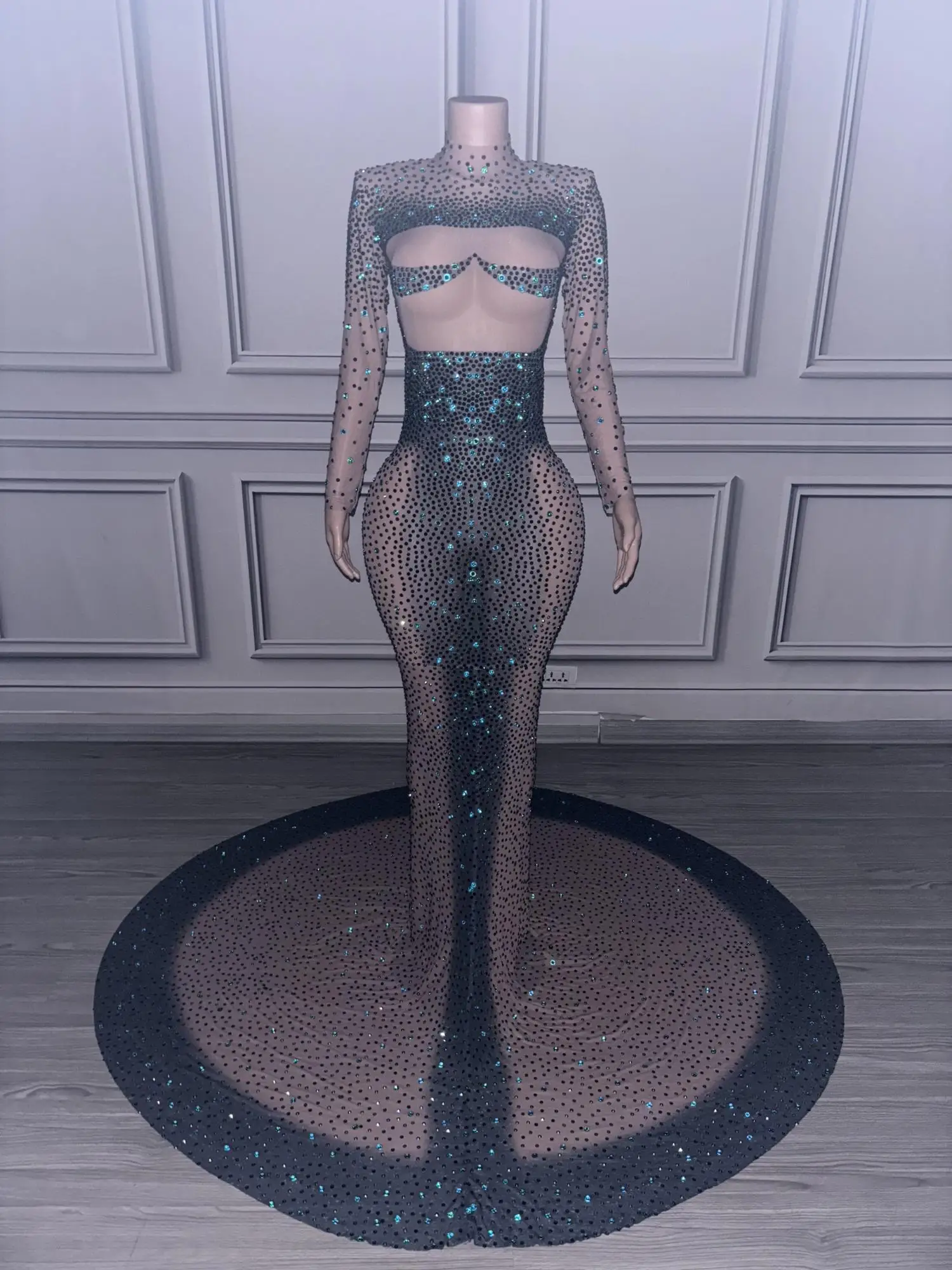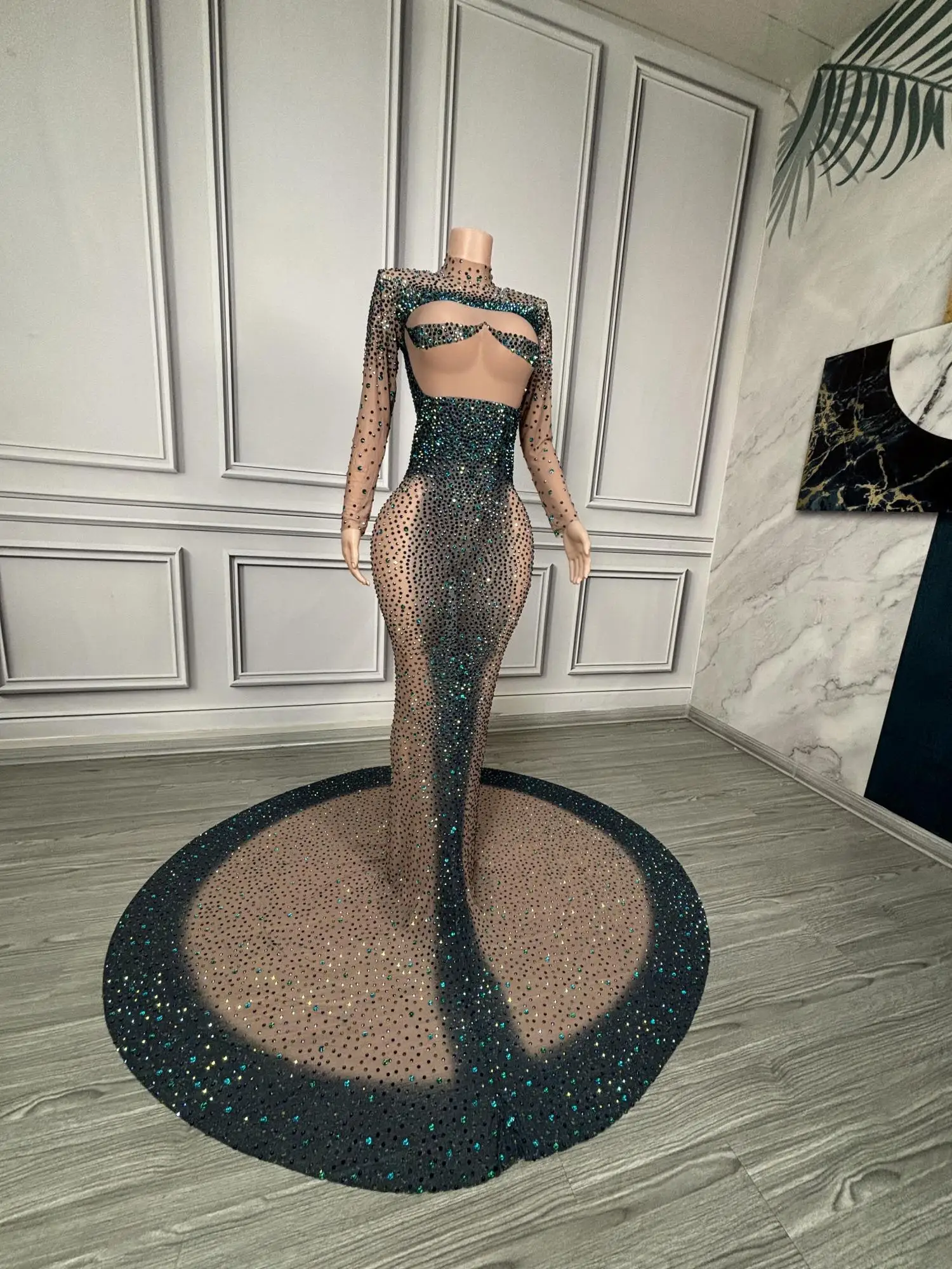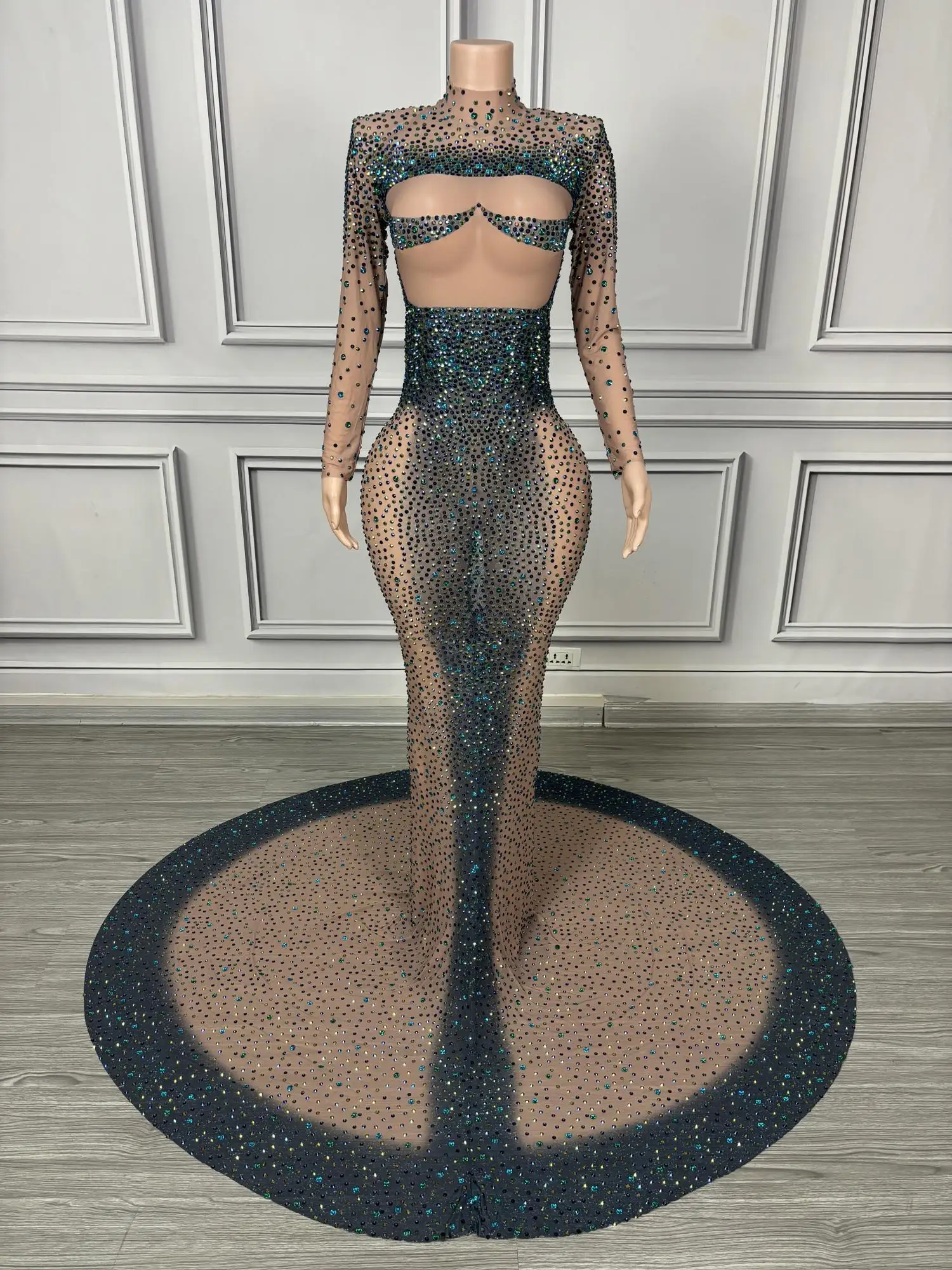 Long Sparkly Stones Prom Dresses 2024 Sexy Mermaid Style High Neck Sheer Mesh Royal Dresses Black Girls Prom Party Gowns Danqing