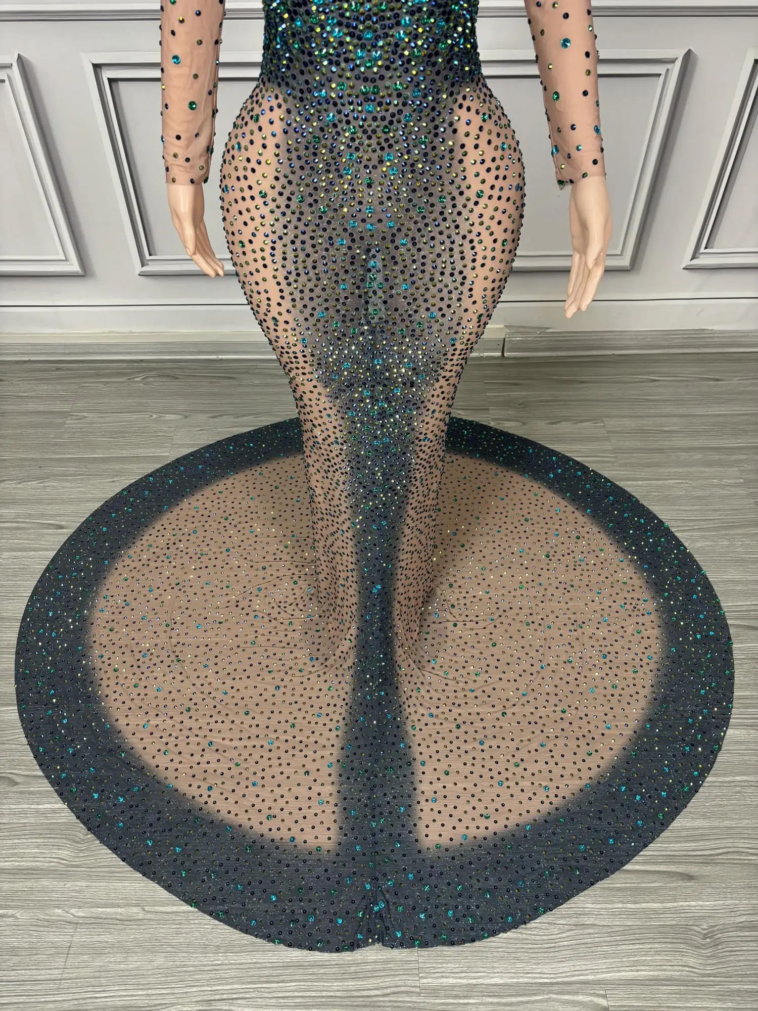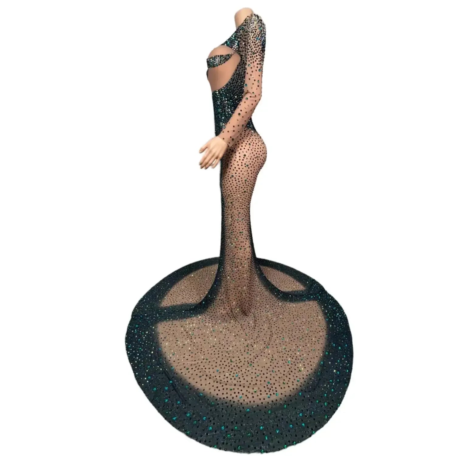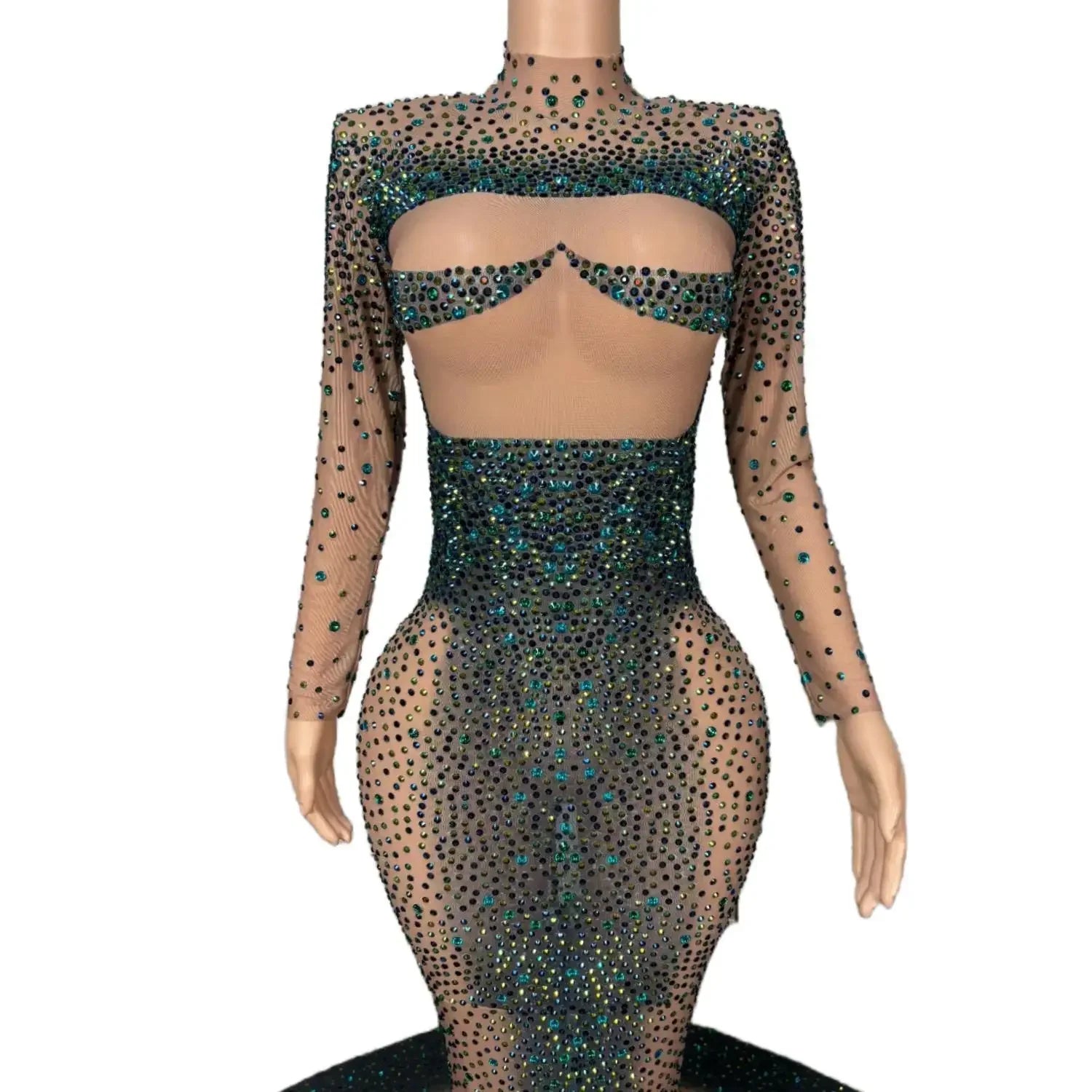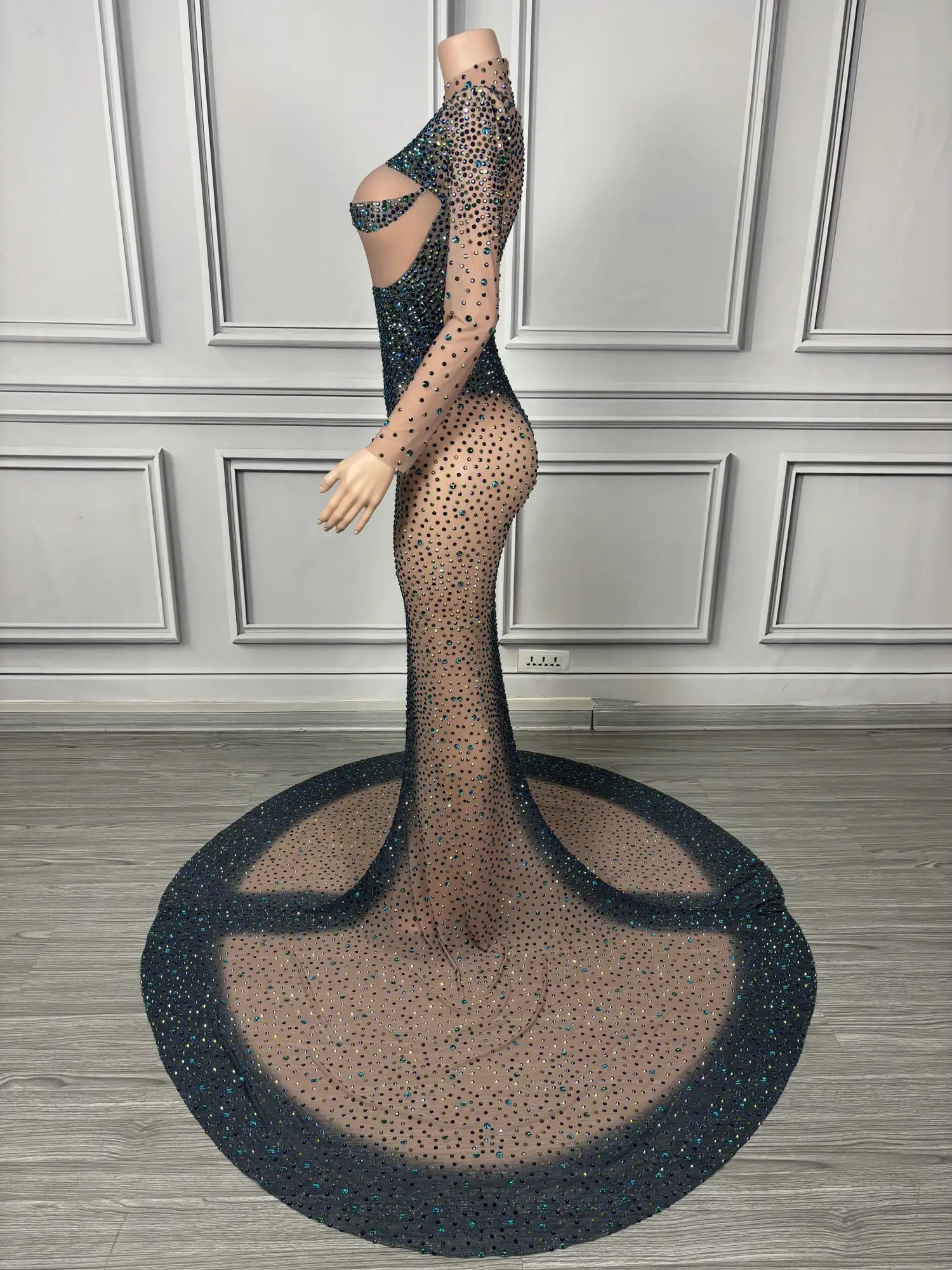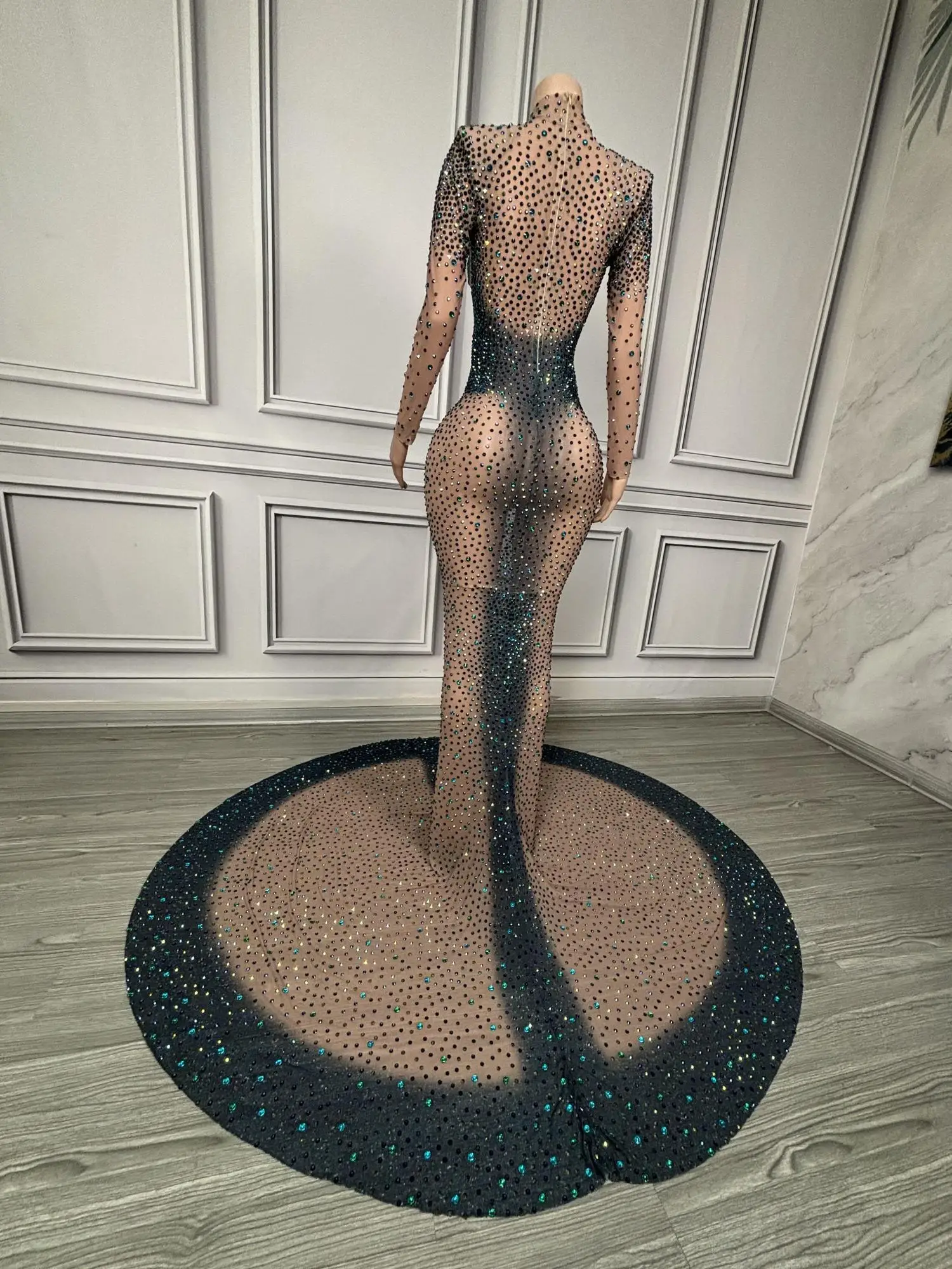 Long Sparkly Stones Prom Dresses 2024 Sexy Mermaid Style High Neck Sheer Mesh Royal Dresses Black Girls Prom Party Gowns Danqing