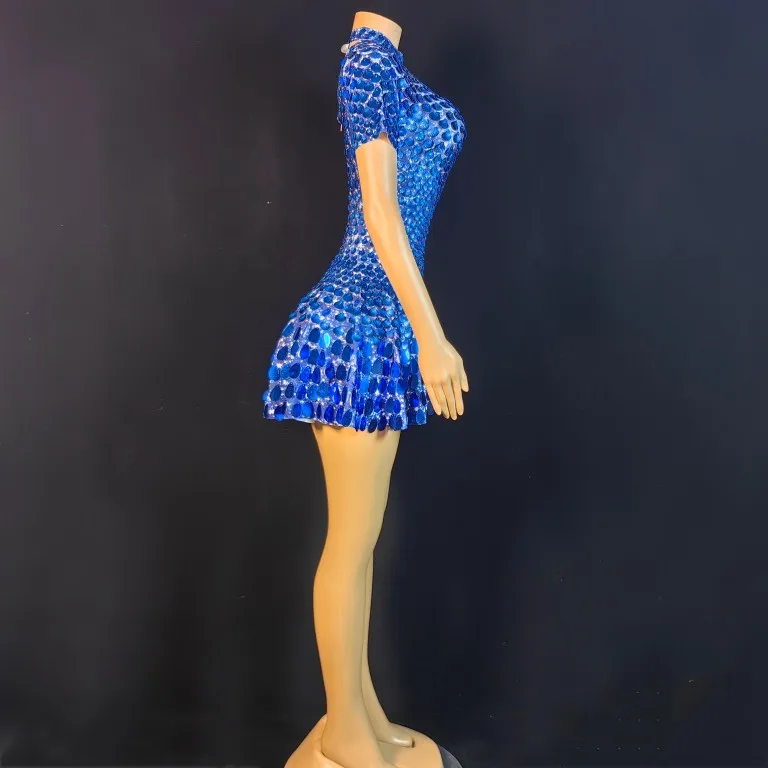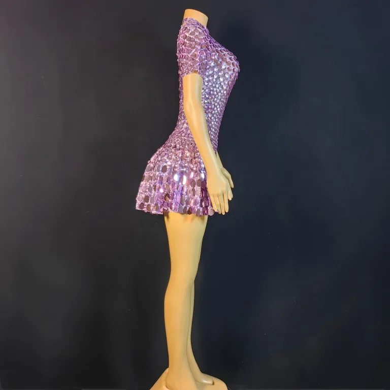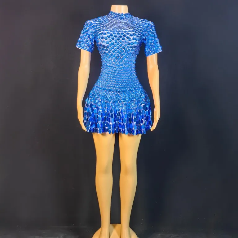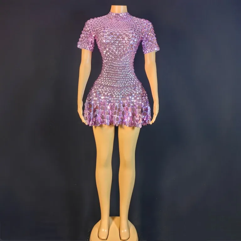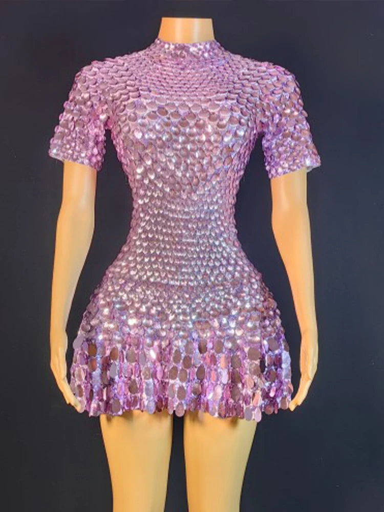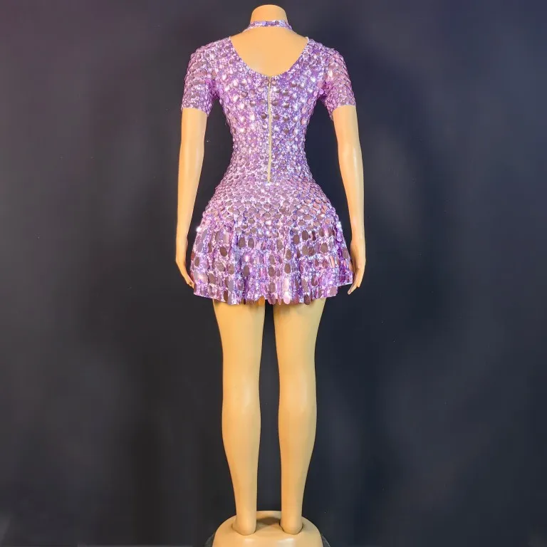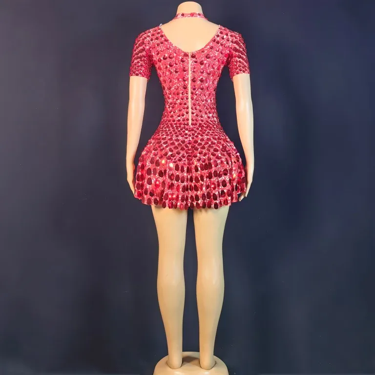 Lovely Sequins Mini Dress Sexy Nightclub Leotard Shining Costume Celebrate Rhinestone Bodysuit Birthday Silver Dresses