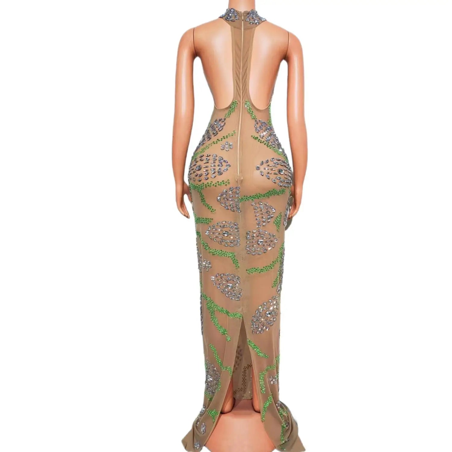 This Luxurious Rhinestone Mesh Transparent Backless Long Dress is a stunning and sexy choice for birthday celebrations, evening events, prom parties, and photo shoots. The dress features a mesh fabric adorned with intricate rhinestones, creating a glamorous and eye-catching look. With a transparent and backless design, this long dress exudes elegance and allure, perfect for making a statement at special occasions. Celebrate in style with this luxurious and stylish dress that is sure to turn heads and make you feel like a star.