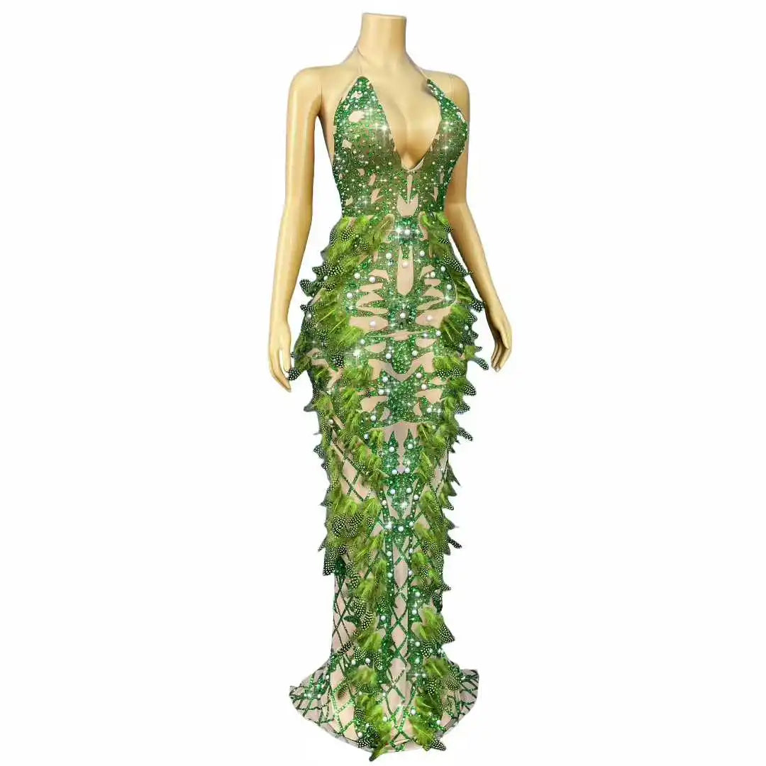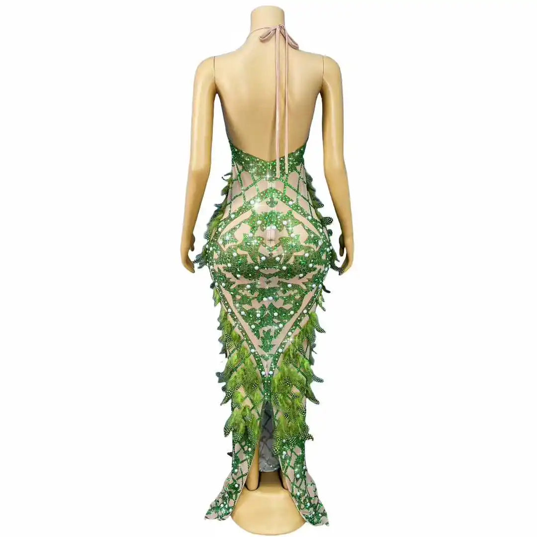 Elegant, dramatic, and built to be noticed — thisLuxurious Sparkly Heavy Rhinestones & Feathers V‑Neck Backless Dressis a statement gown for red carpets, stage performances, evening events, birthdays, and photoshoots. Combining densely set rhinestones, feather detailing, and a sculpting silhouette, the dress offers high-impact glamour with performance-ready construction.