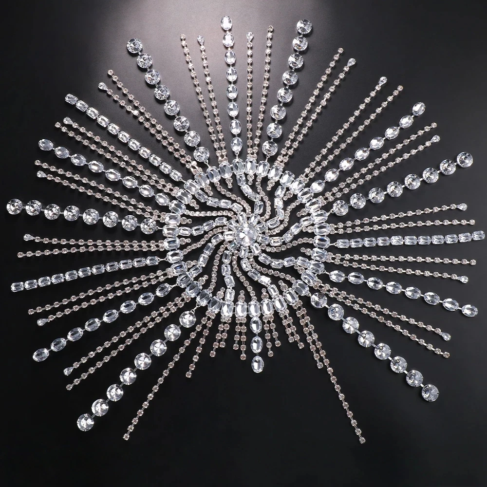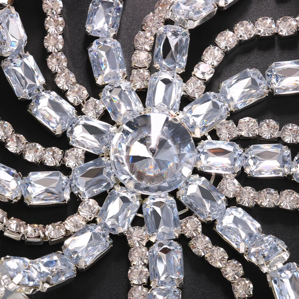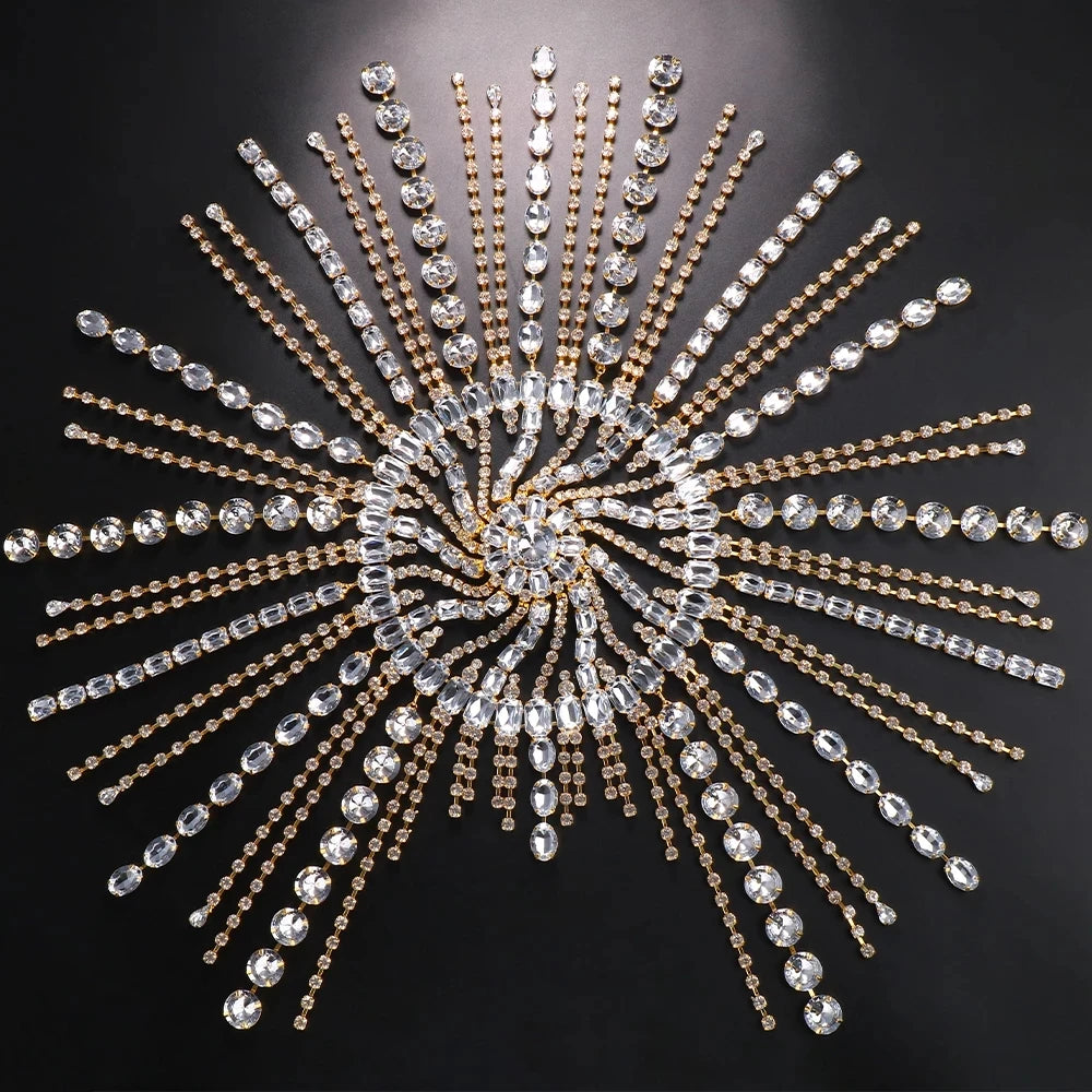 Luxury Crystal Square Tassel Hair Chain Bridal Headpiece for Women Rave Accessories Rhinestone Geometric Head Chain Hat Jewelry