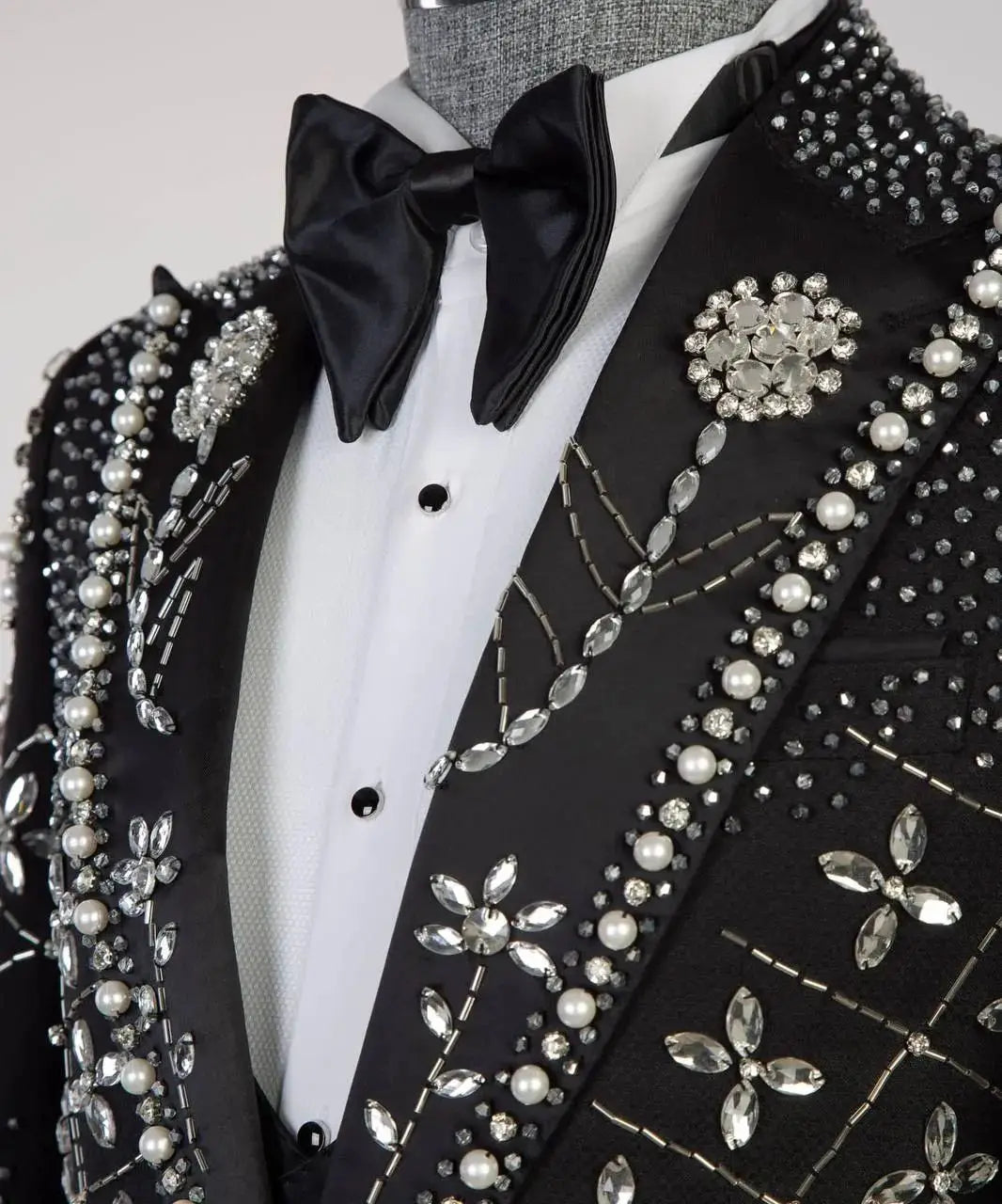Elevate your formal attire with this luxury crystals men's suit set. This 2-piece ensemble includes a blazer and pants, perfect for proms, weddings, or formal events. Custom made to fit you perfectly, this tuxedo exudes sophistication and style. Whether you're the groom, best man, or attending a special occasion, this outfit is sure to make a statement.